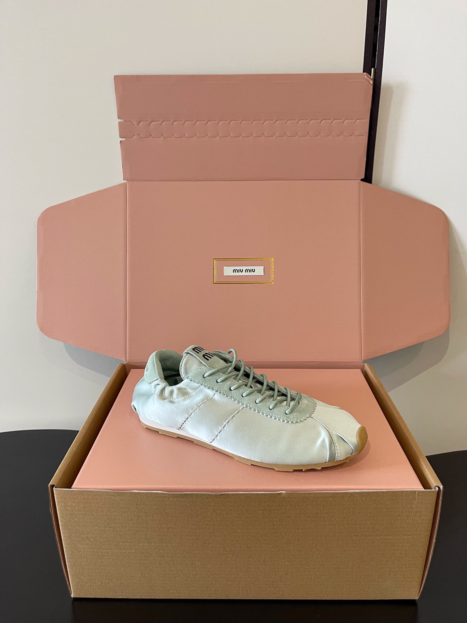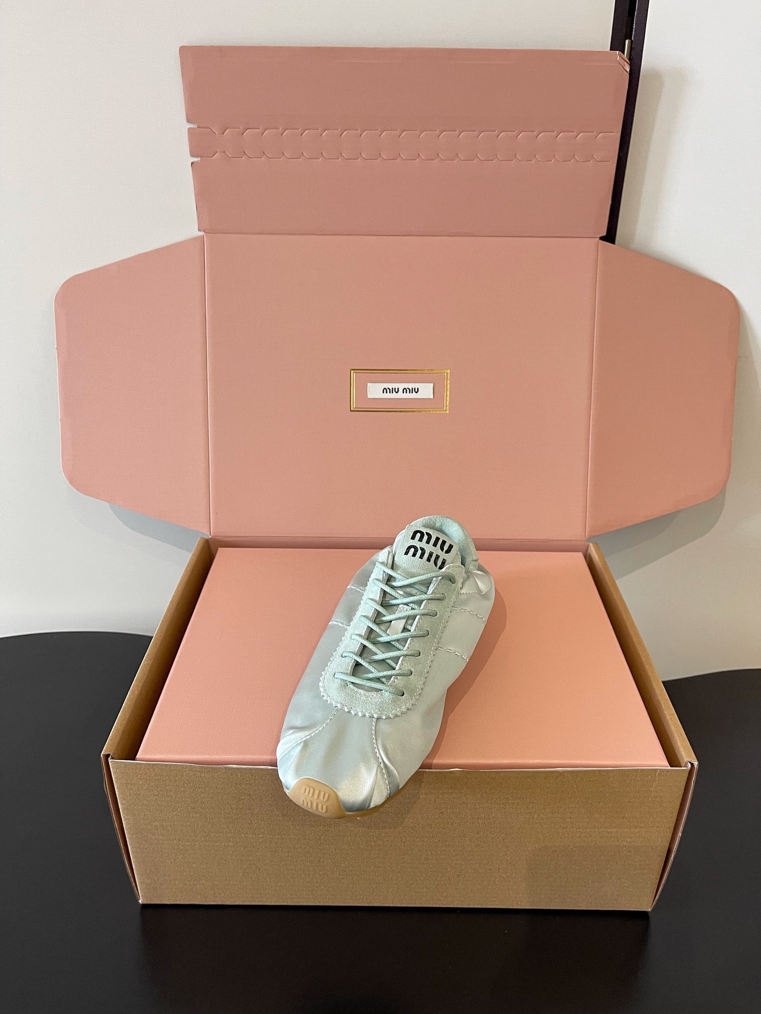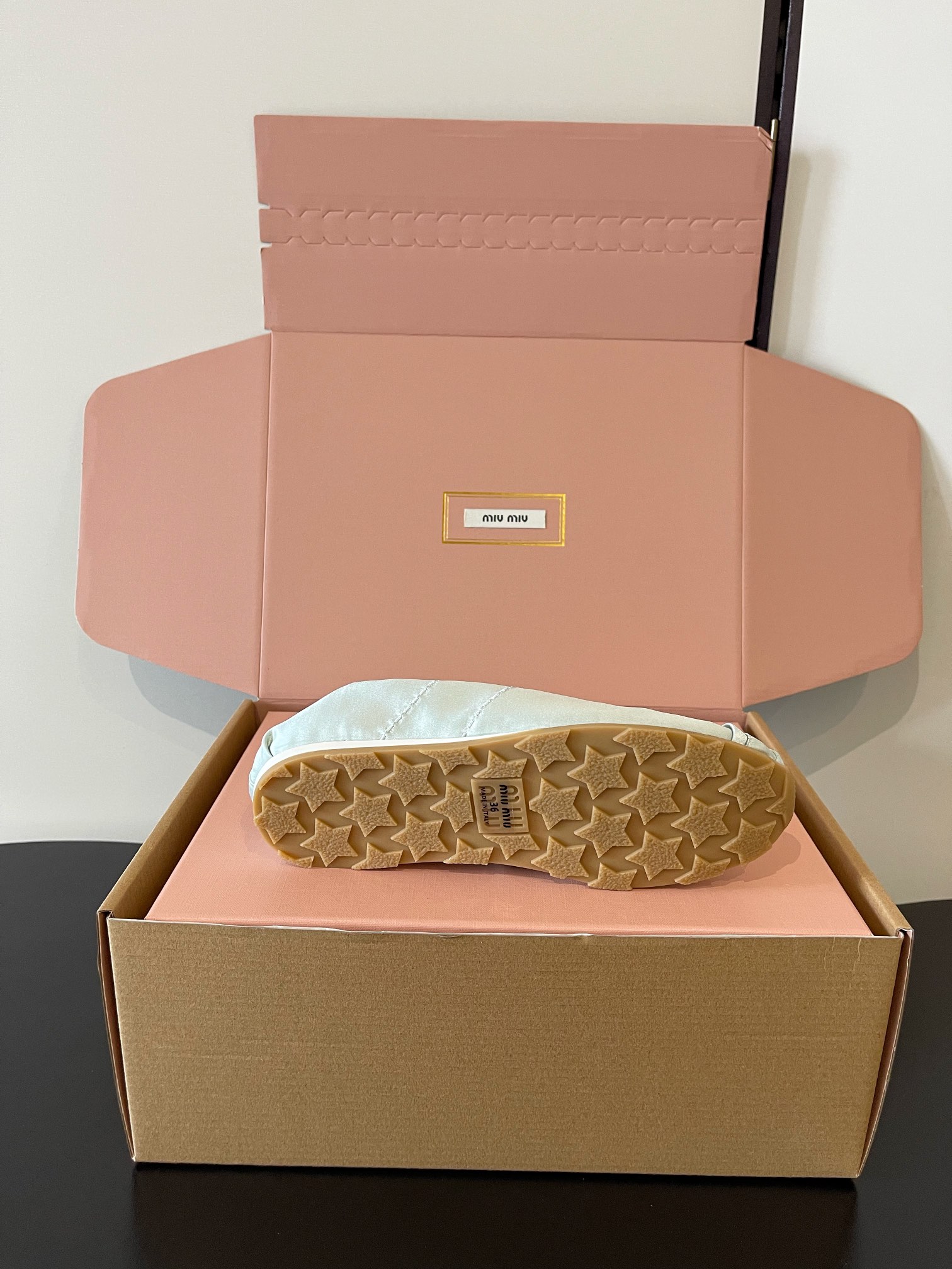 這款鞋子是AAAAA 1:1 質量(非常棒). 使用了和原版一模一樣的材料. 商標部分也保持了和繆繆/Miu Miu一樣. 圖片拍攝是實物鞋子拍攝, 您所收到的實物保證和我們圖片一模一樣.