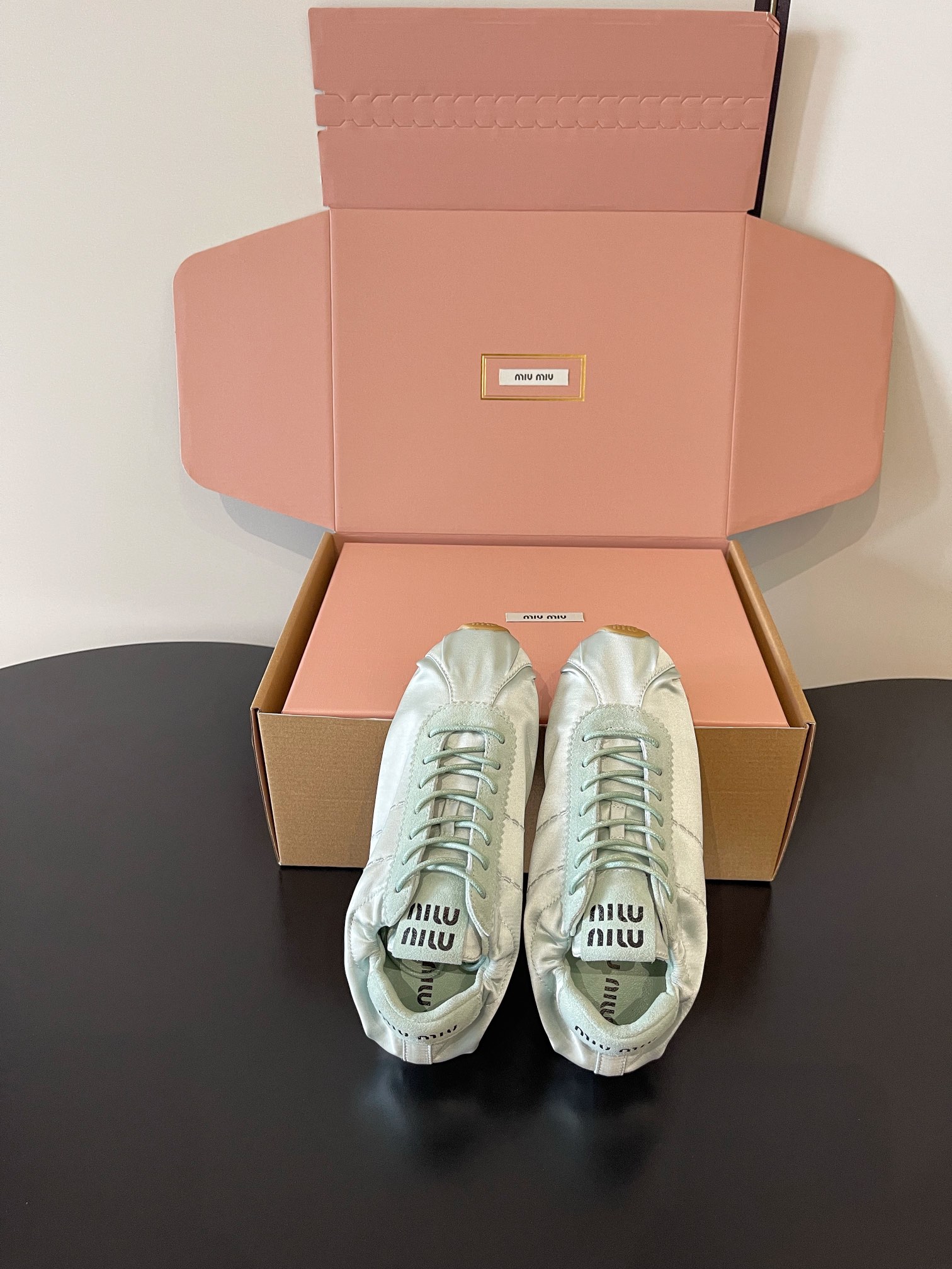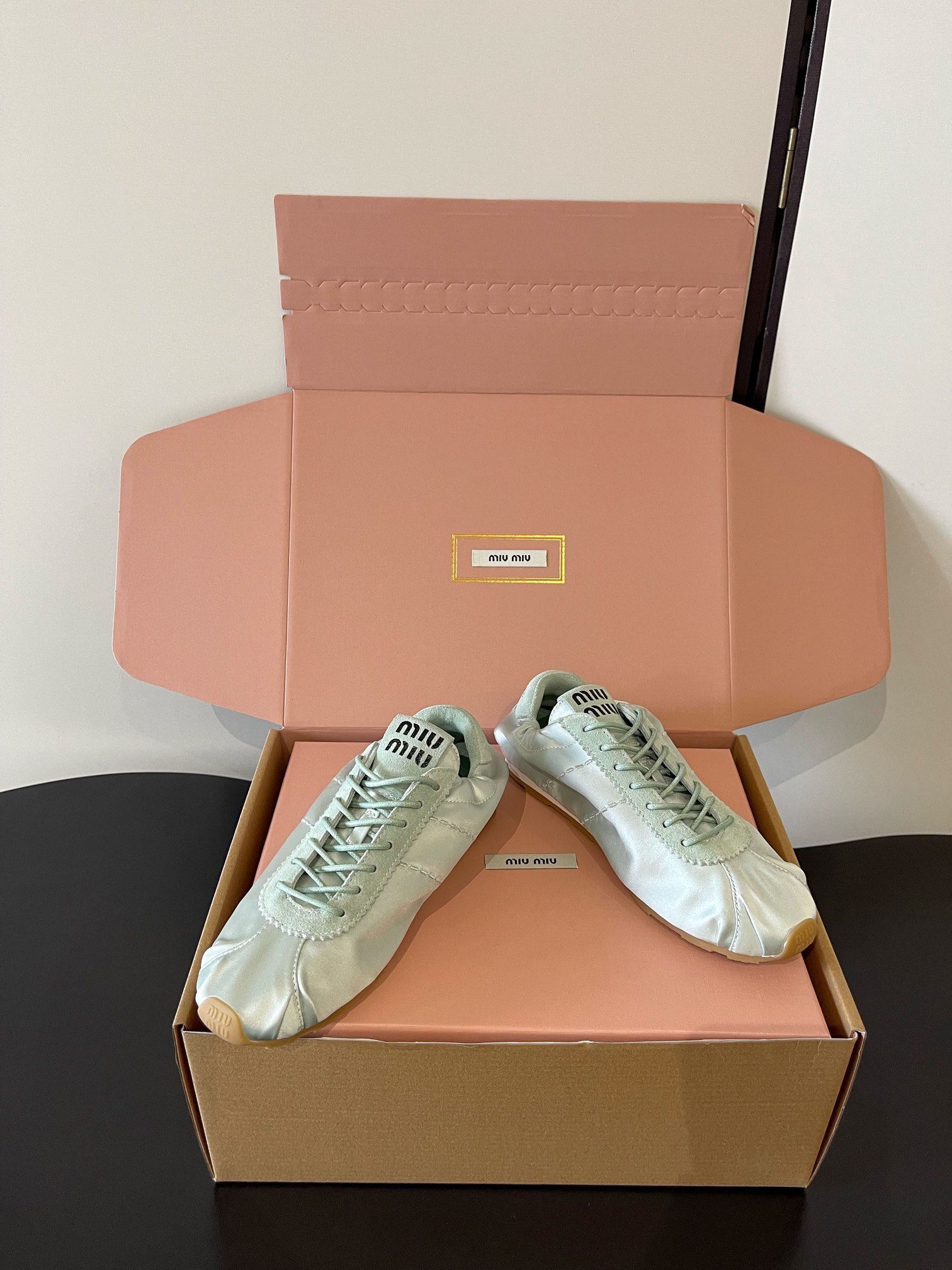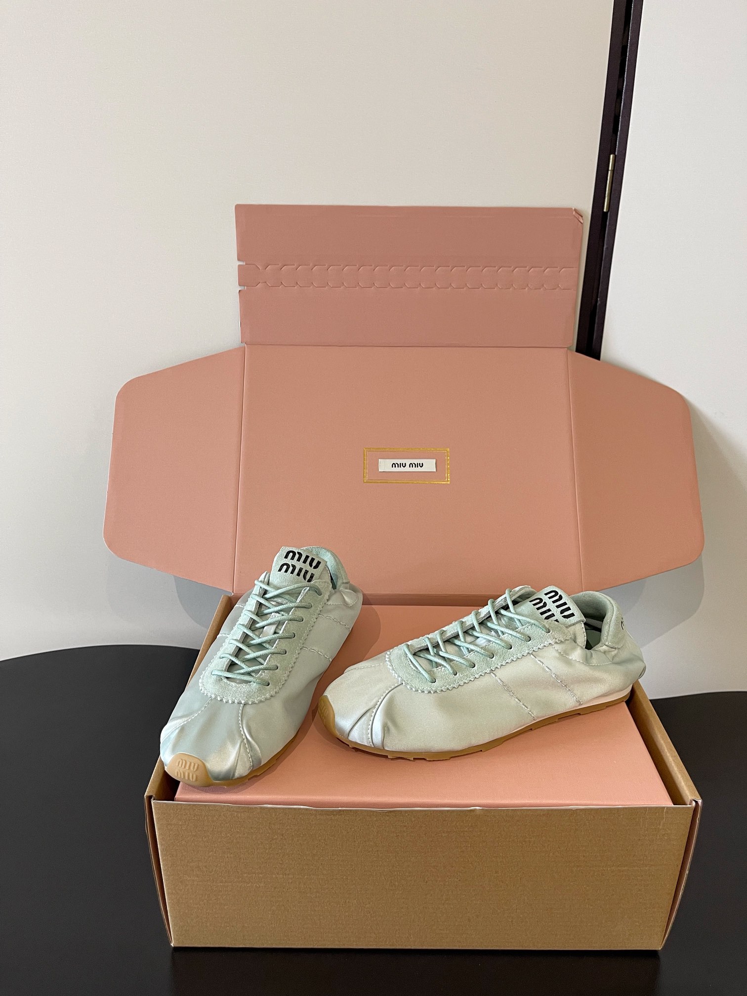 這款鞋子是AAAAA 1:1 質量(非常棒). 使用了和原版一模一樣的材料. 商標部分也保持了和繆繆/Miu Miu一樣. 圖片拍攝是實物鞋子拍攝, 您所收到的實物保證和我們圖片一模一樣.