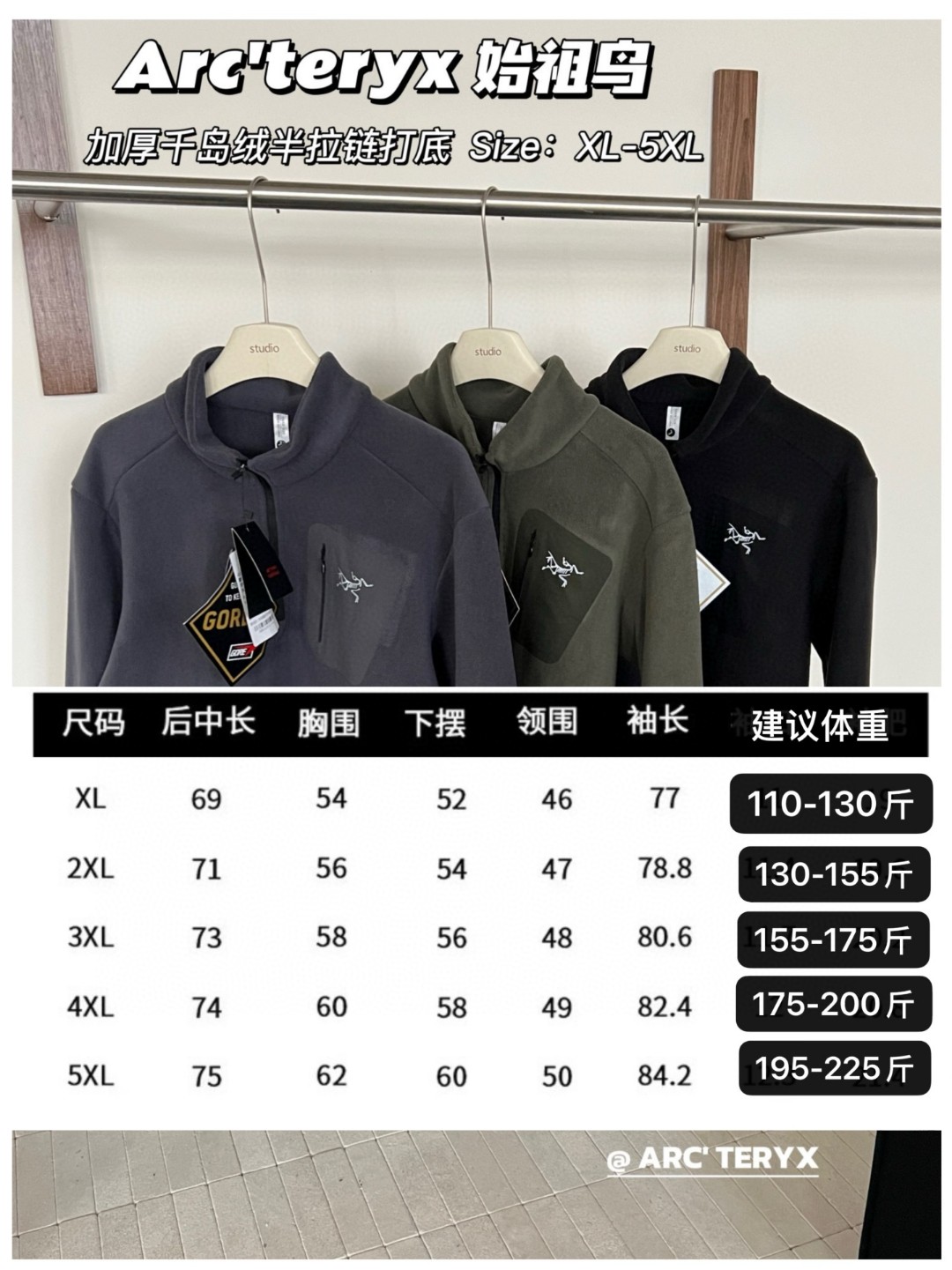 這款衣服是AAAAA 1:1 質量(非常棒). 使用了和原版一模一樣的材料. 商標部分也保持了和ARC'TERYX一樣. 圖片拍攝是實物衣服拍攝, 您所收到的實物保證和我們圖片一模一樣.