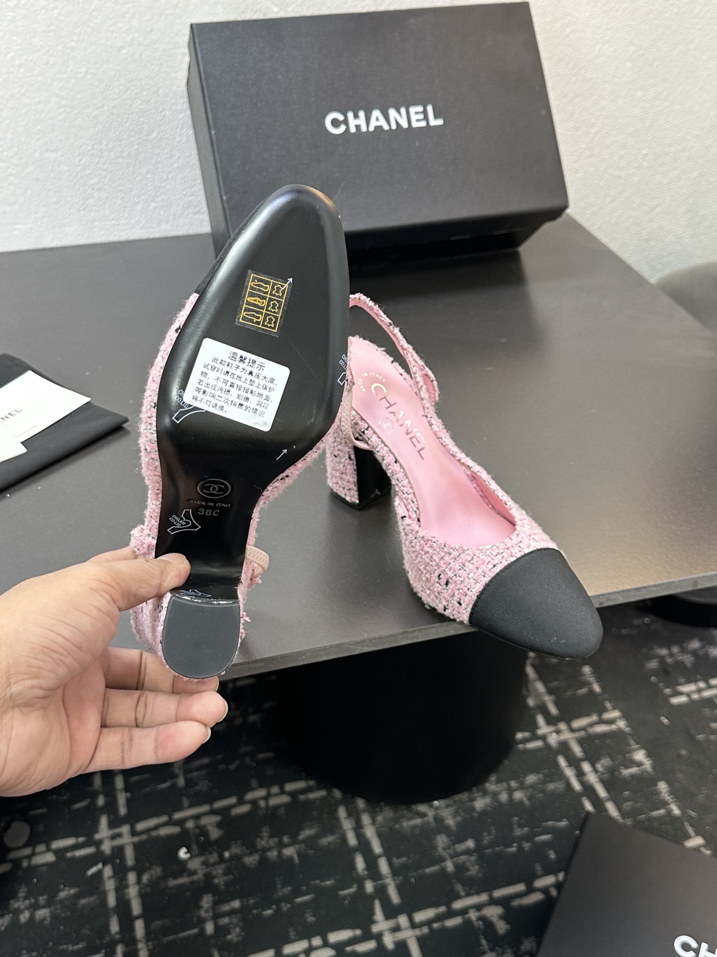 這款鞋子是AAAAA 1:1 質量(非常棒). 使用了和原版一模一樣的材料. 商標部分也保持了和香奈兒/Chanel一樣. 圖片拍攝是實物鞋子拍攝, 您所收到的實物保證和我們圖片一模一樣.
