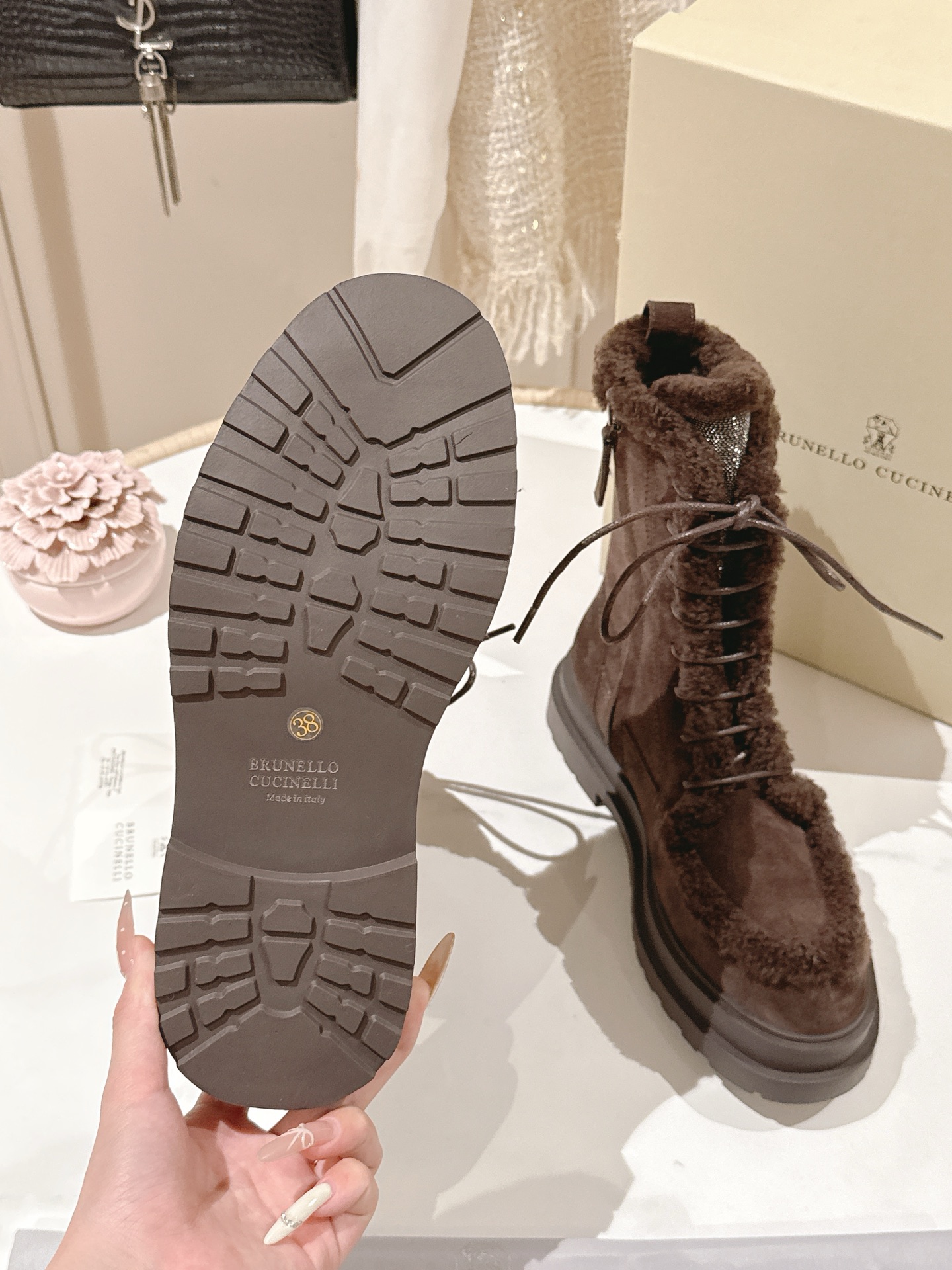 這款鞋子是AAAAA 1:1 質量(非常棒). 使用了和原版一模一樣的材料. 商標部分也保持了和Brunello Cucinelli一樣. 圖片拍攝是實物鞋子拍攝, 您所收到的實物保證和我們圖片一模一樣.