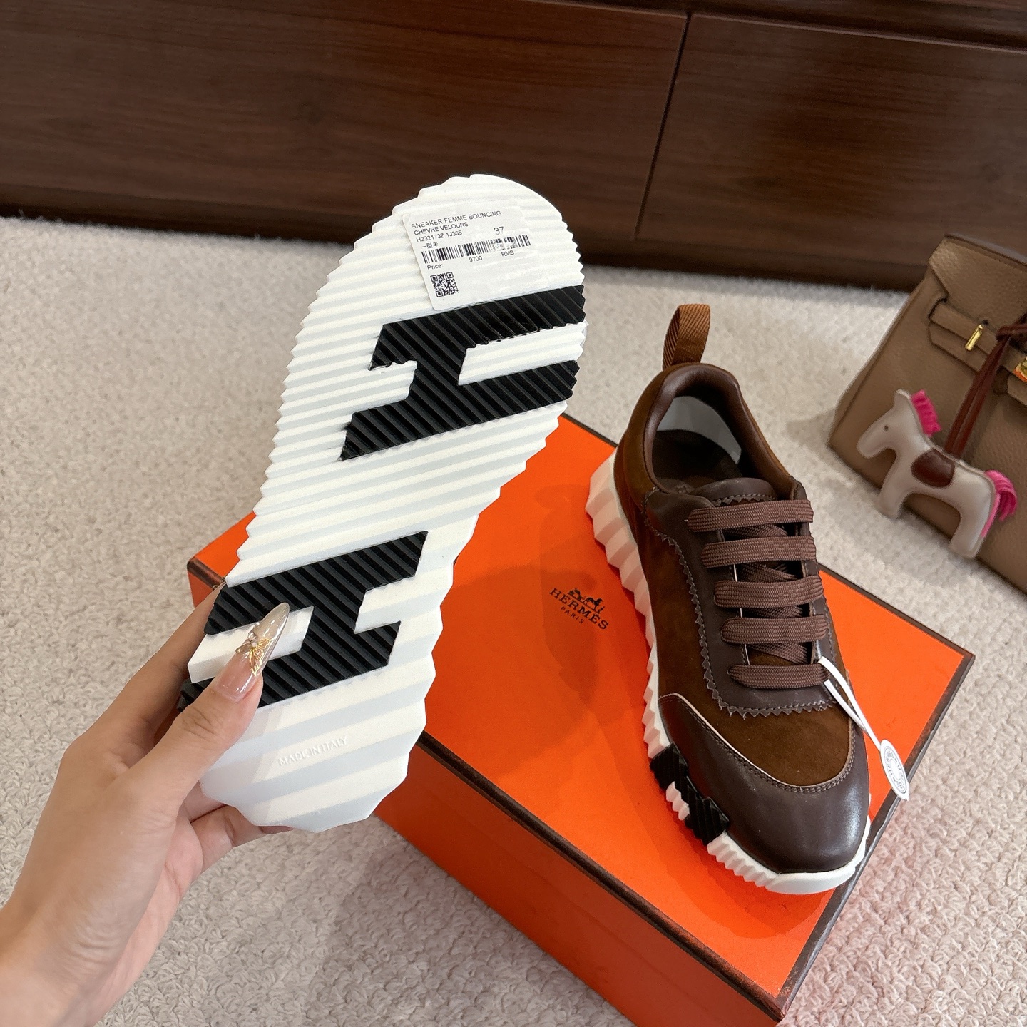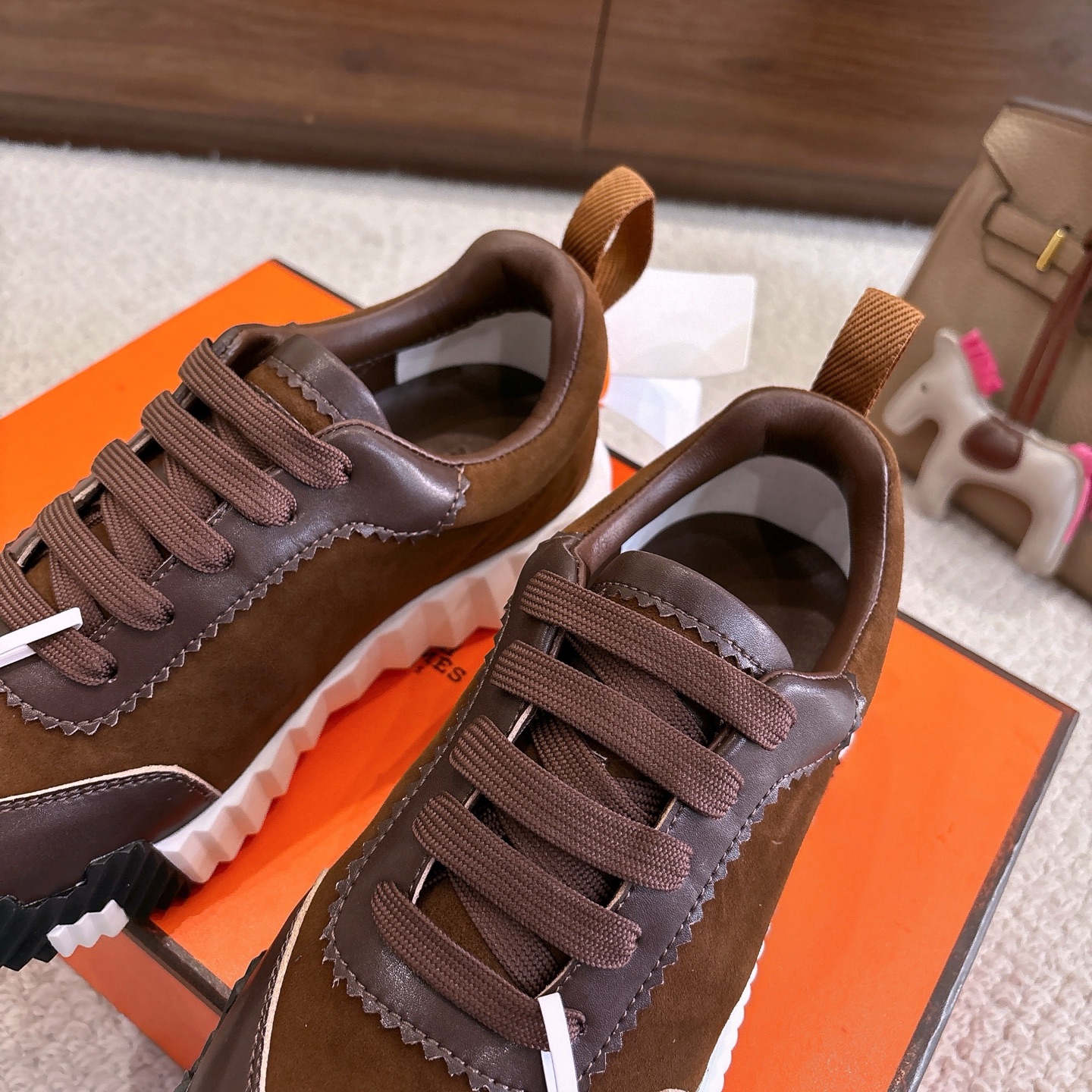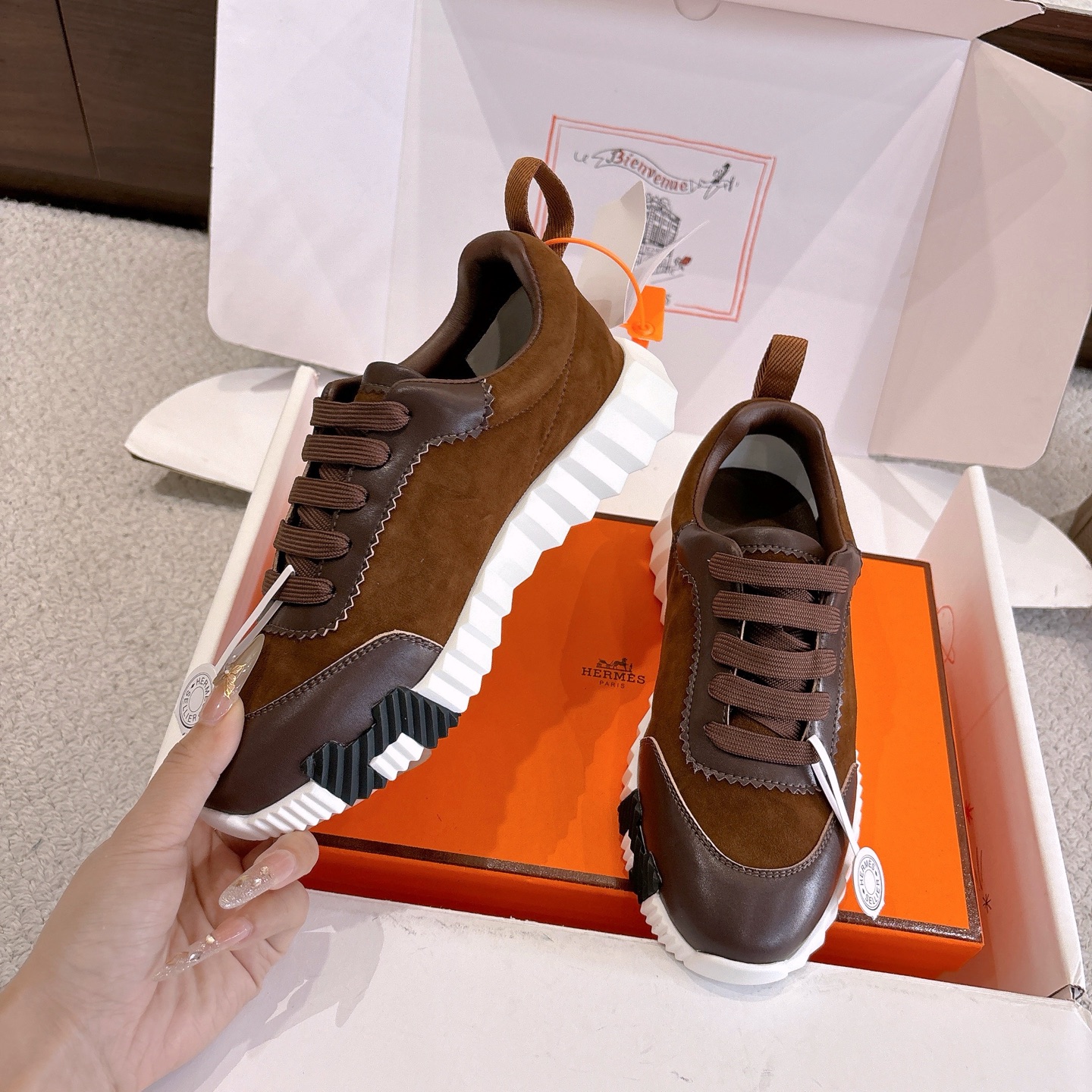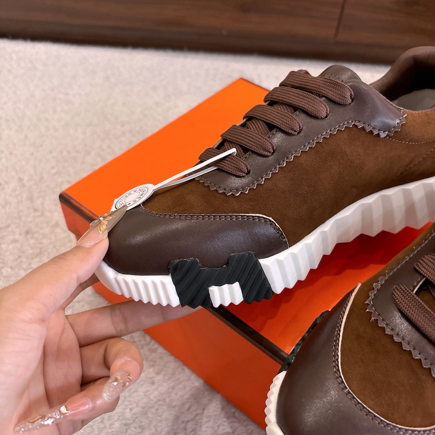 這款鞋子是AAAAA 1:1 質量(非常棒). 使用了和原版一模一樣的材料. 商標部分也保持了和愛馬仕/Hermes一樣. 圖片拍攝是實物鞋子拍攝, 您所收到的實物保證和我們圖片一模一樣.