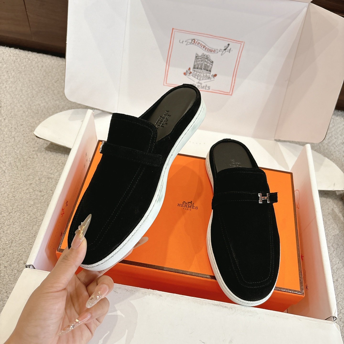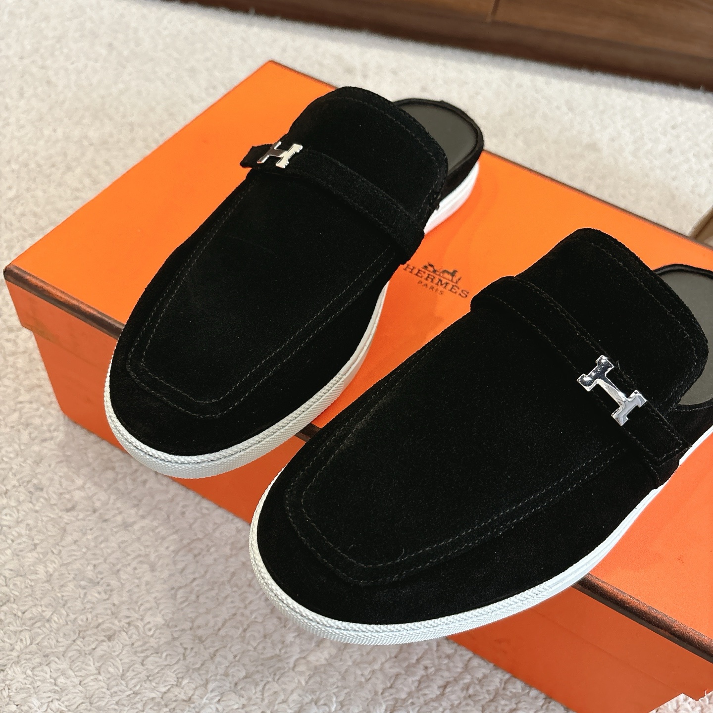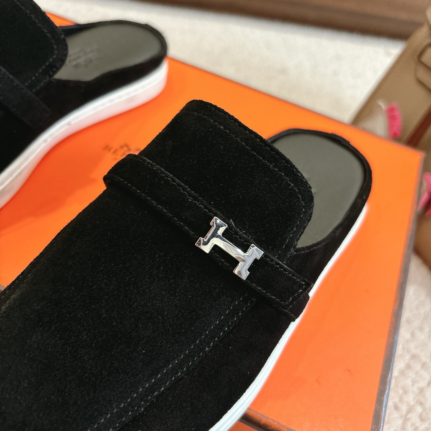 這款鞋子是AAAAA 1:1 質量(非常棒). 使用了和原版一模一樣的材料. 商標部分也保持了和愛馬仕/Hermes一樣. 圖片拍攝是實物鞋子拍攝, 您所收到的實物保證和我們圖片一模一樣.
