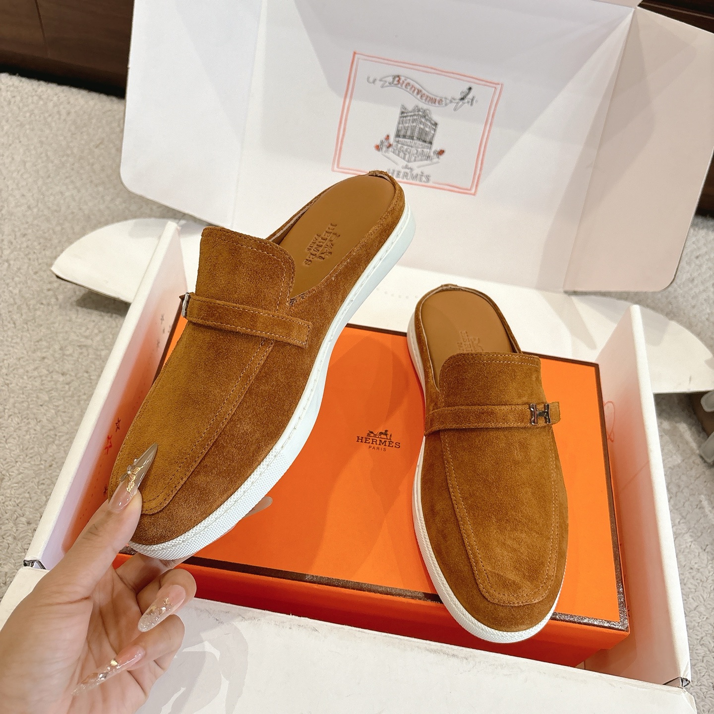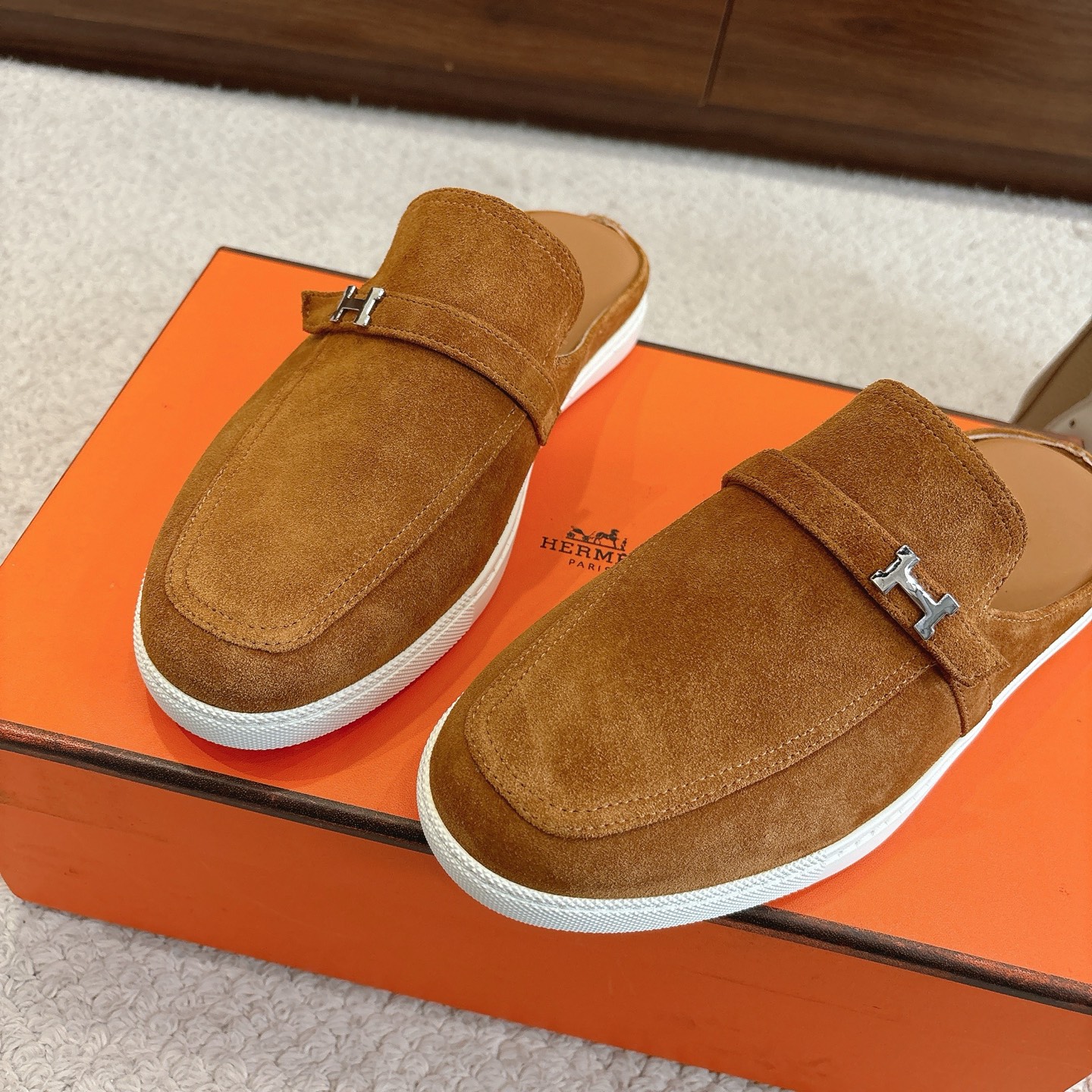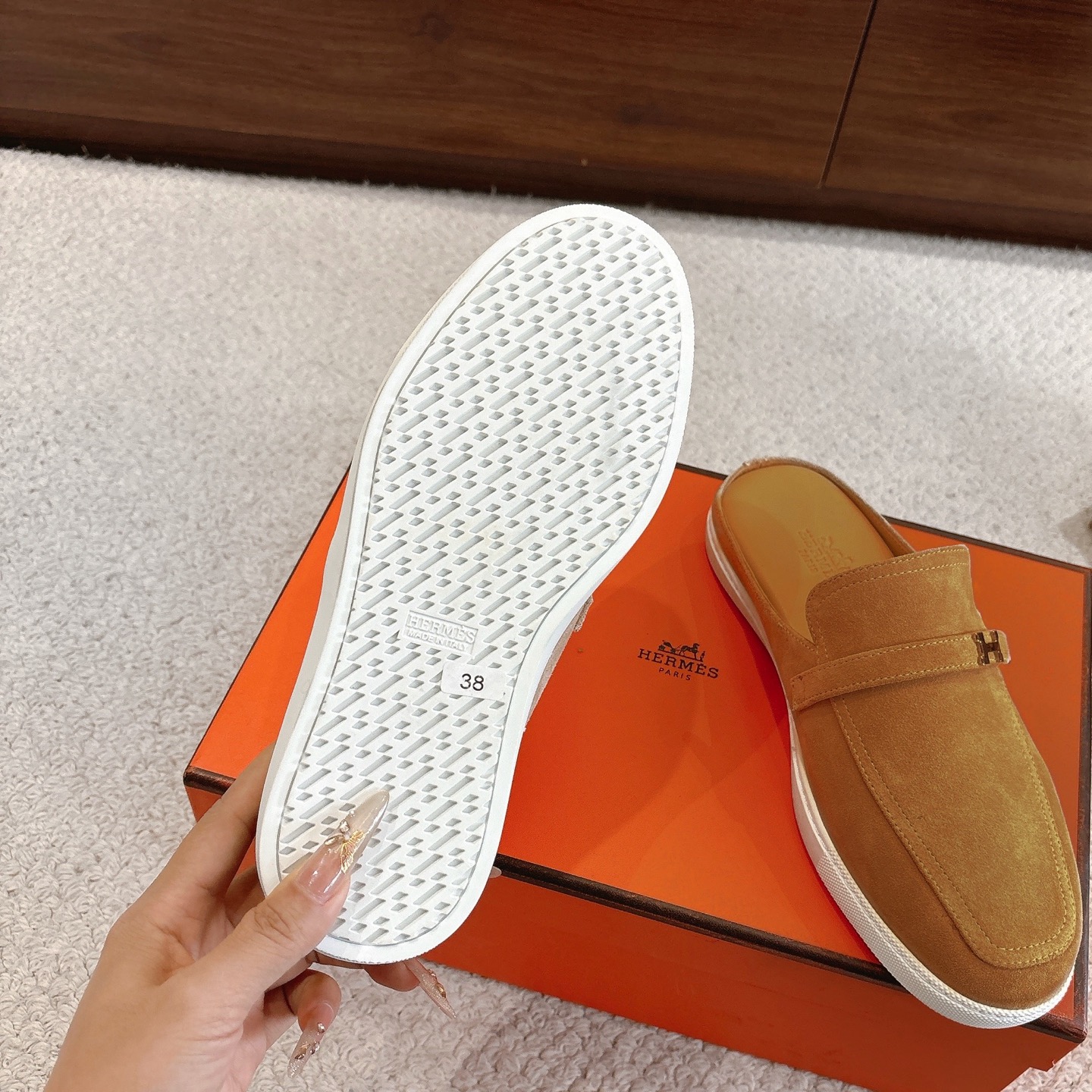 這款鞋子是AAAAA 1:1 質量(非常棒). 使用了和原版一模一樣的材料. 商標部分也保持了和愛馬仕/Hermes一樣. 圖片拍攝是實物鞋子拍攝, 您所收到的實物保證和我們圖片一模一樣.