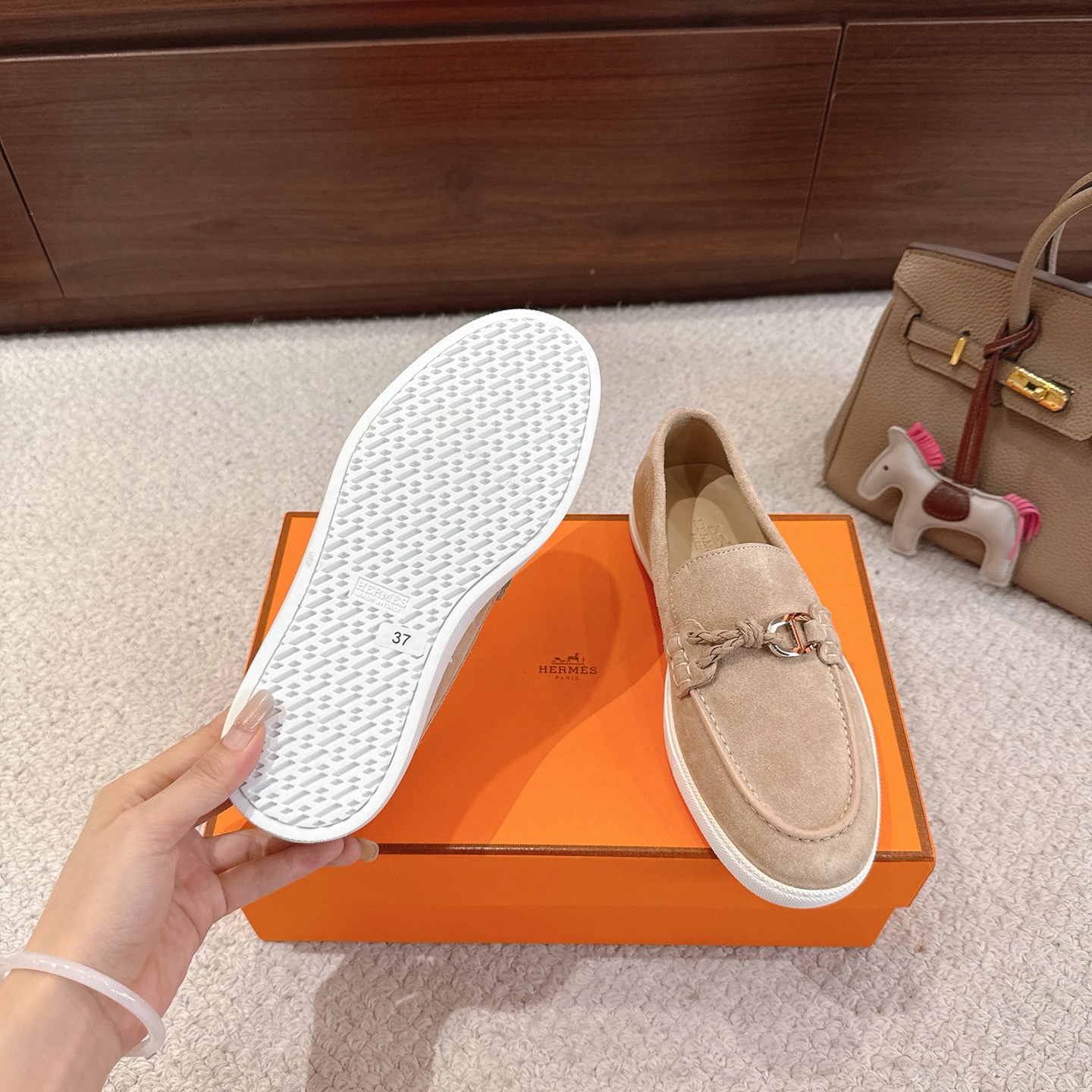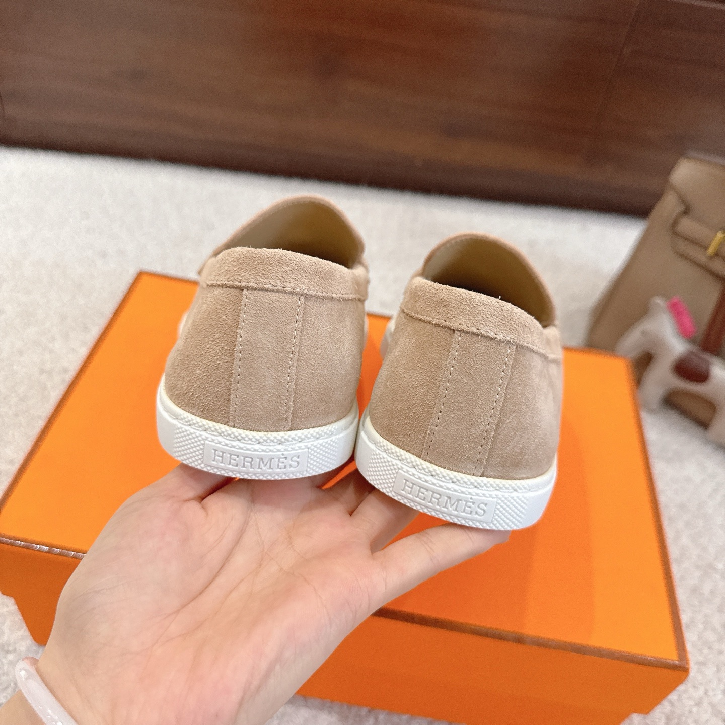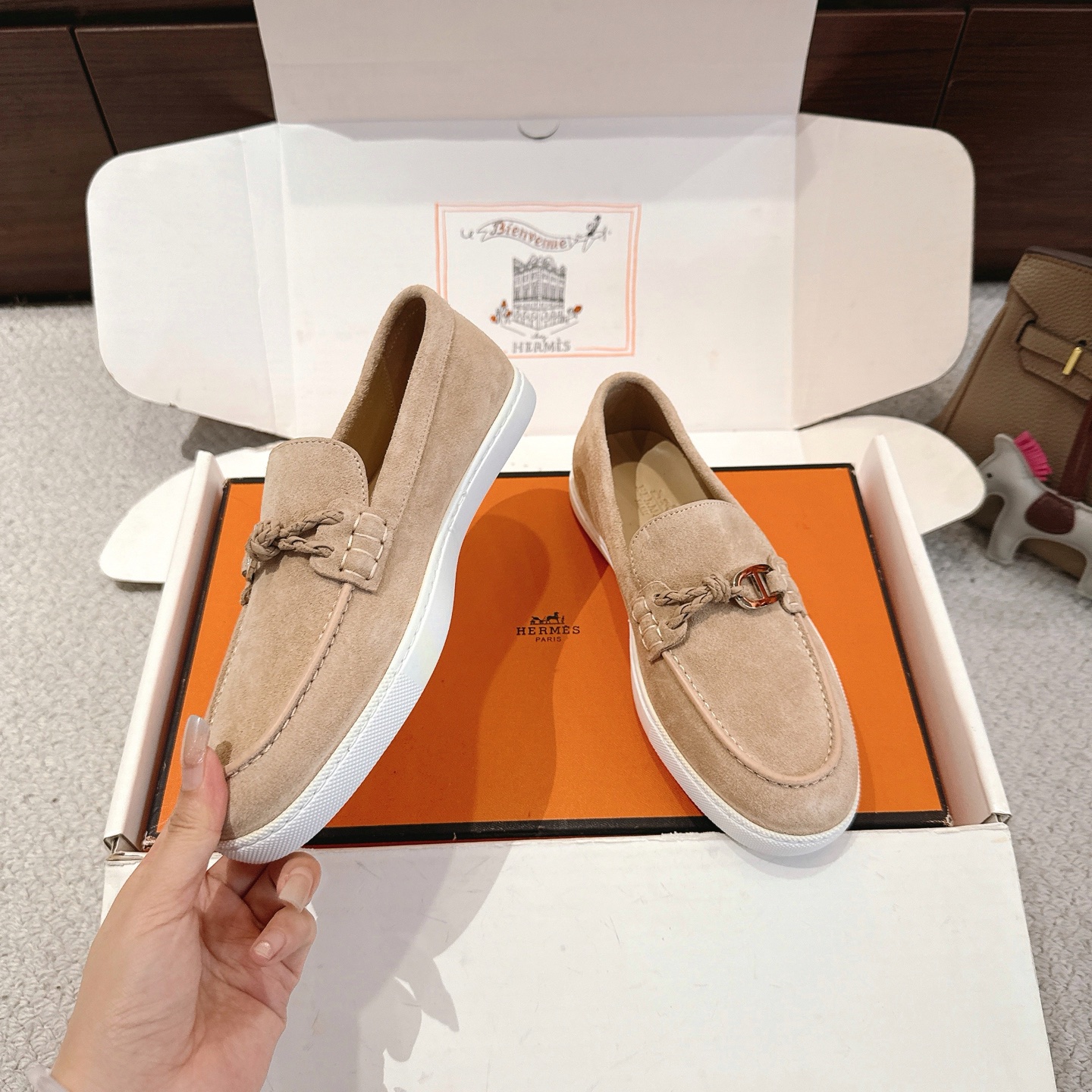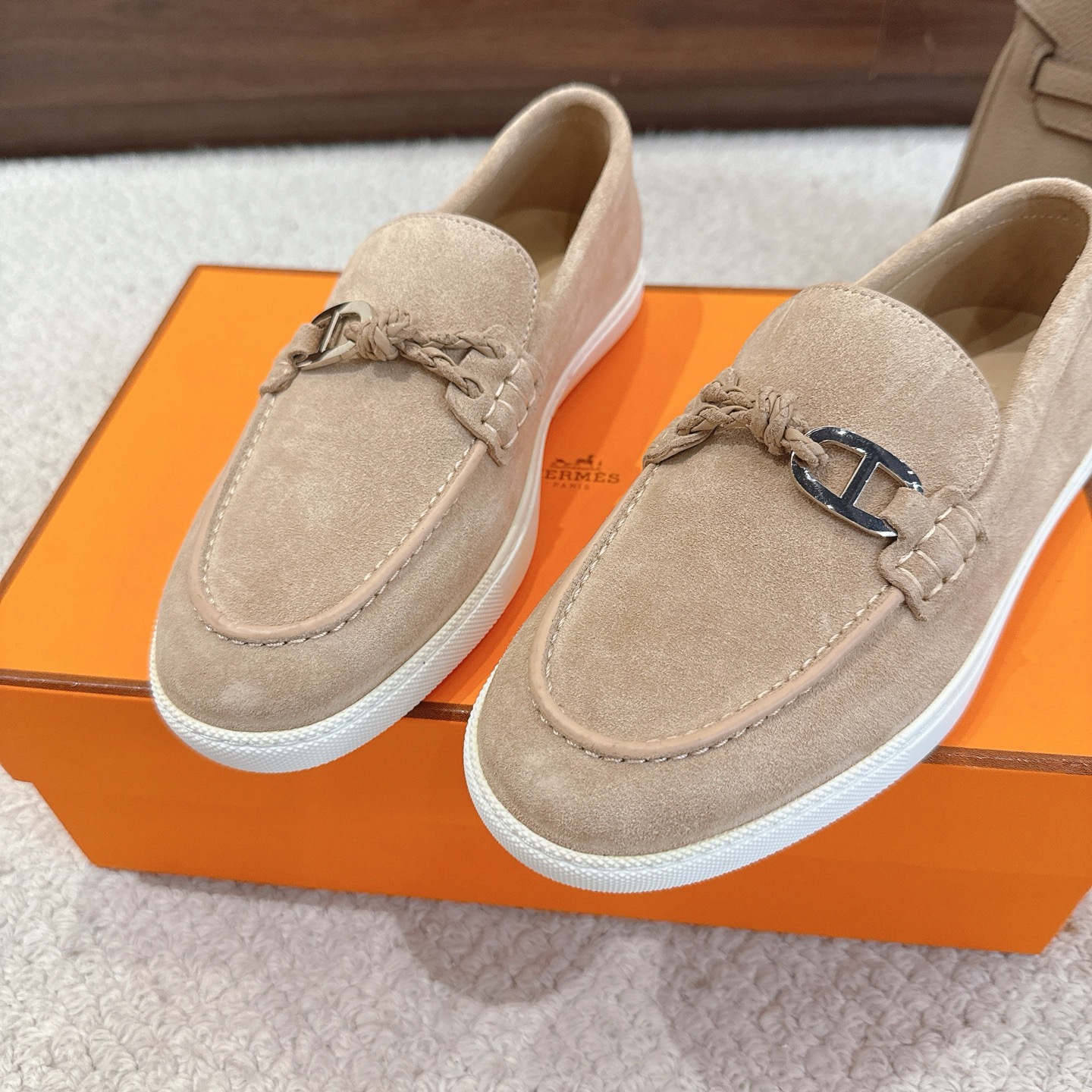 這款鞋子是AAAAA 1:1 質量(非常棒). 使用了和原版一模一樣的材料. 商標部分也保持了和愛馬仕/Hermes一樣. 圖片拍攝是實物鞋子拍攝, 您所收到的實物保證和我們圖片一模一樣.