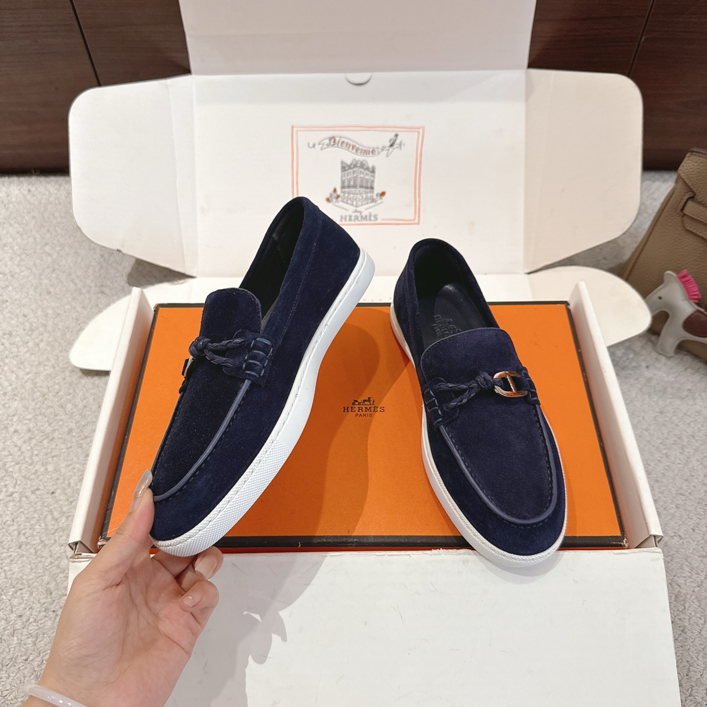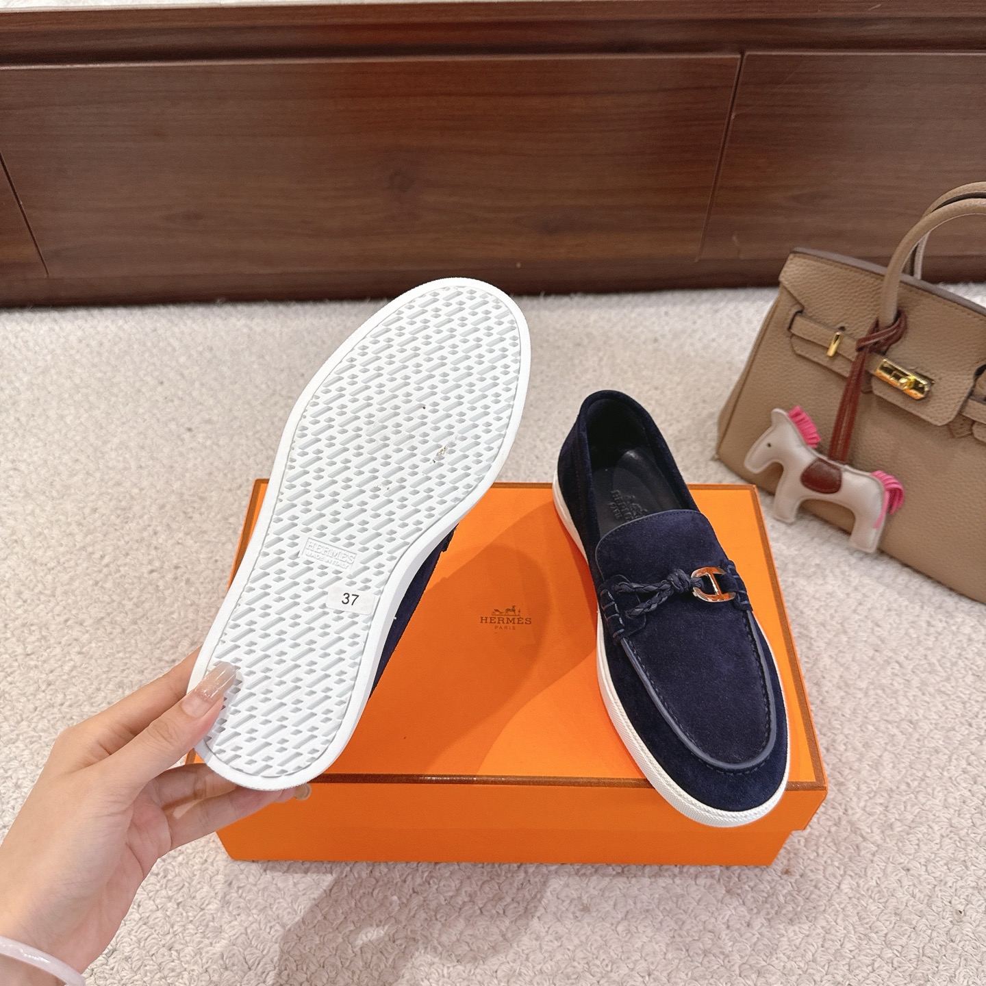 這款鞋子是AAAAA 1:1 質量(非常棒). 使用了和原版一模一樣的材料. 商標部分也保持了和愛馬仕/Hermes一樣. 圖片拍攝是實物鞋子拍攝, 您所收到的實物保證和我們圖片一模一樣.