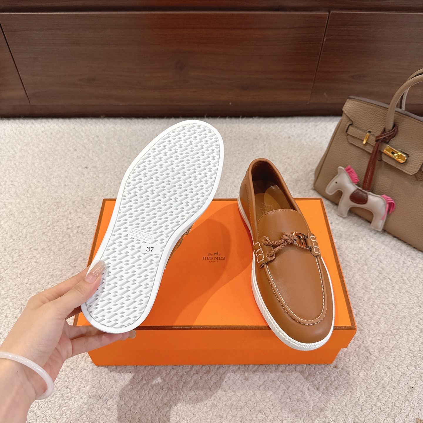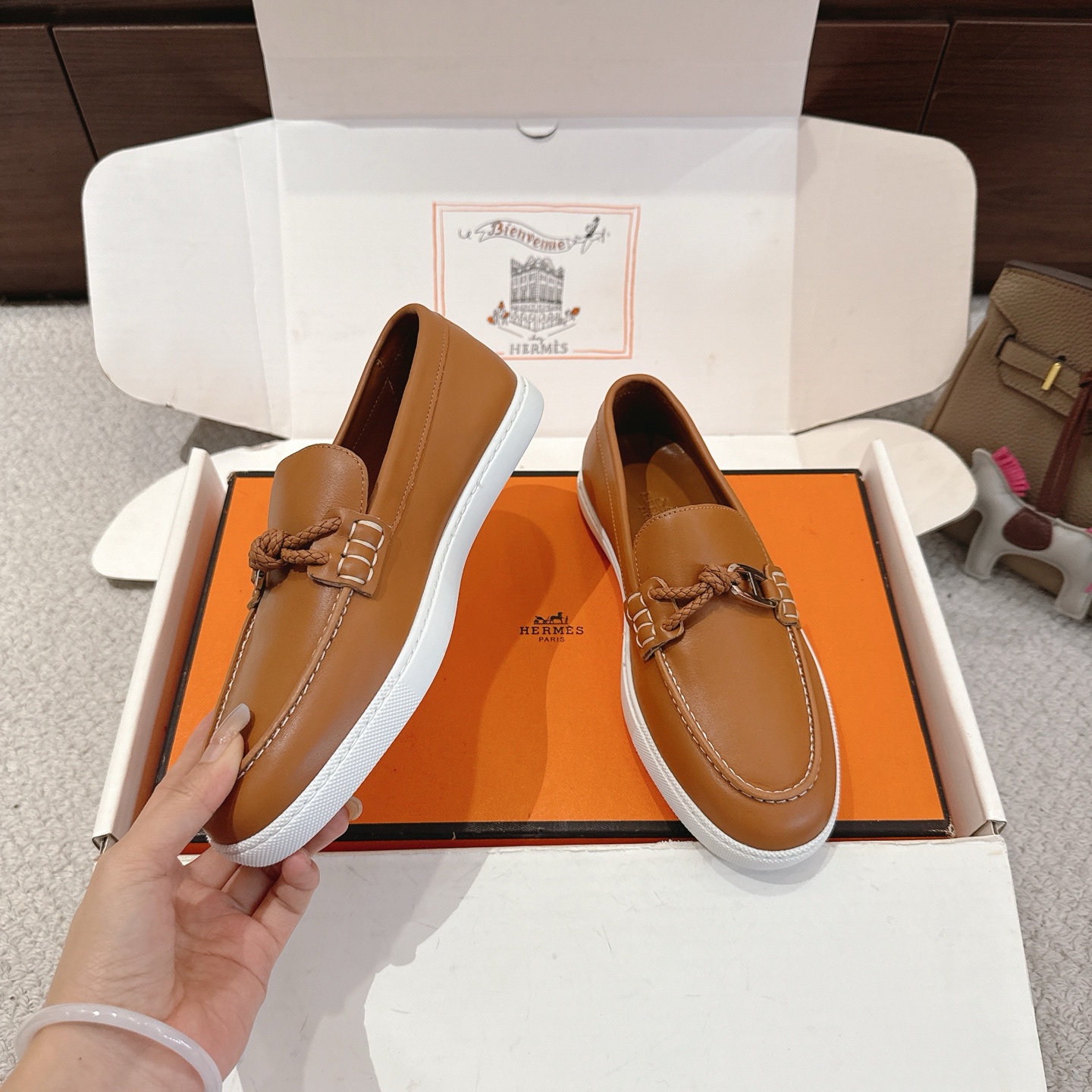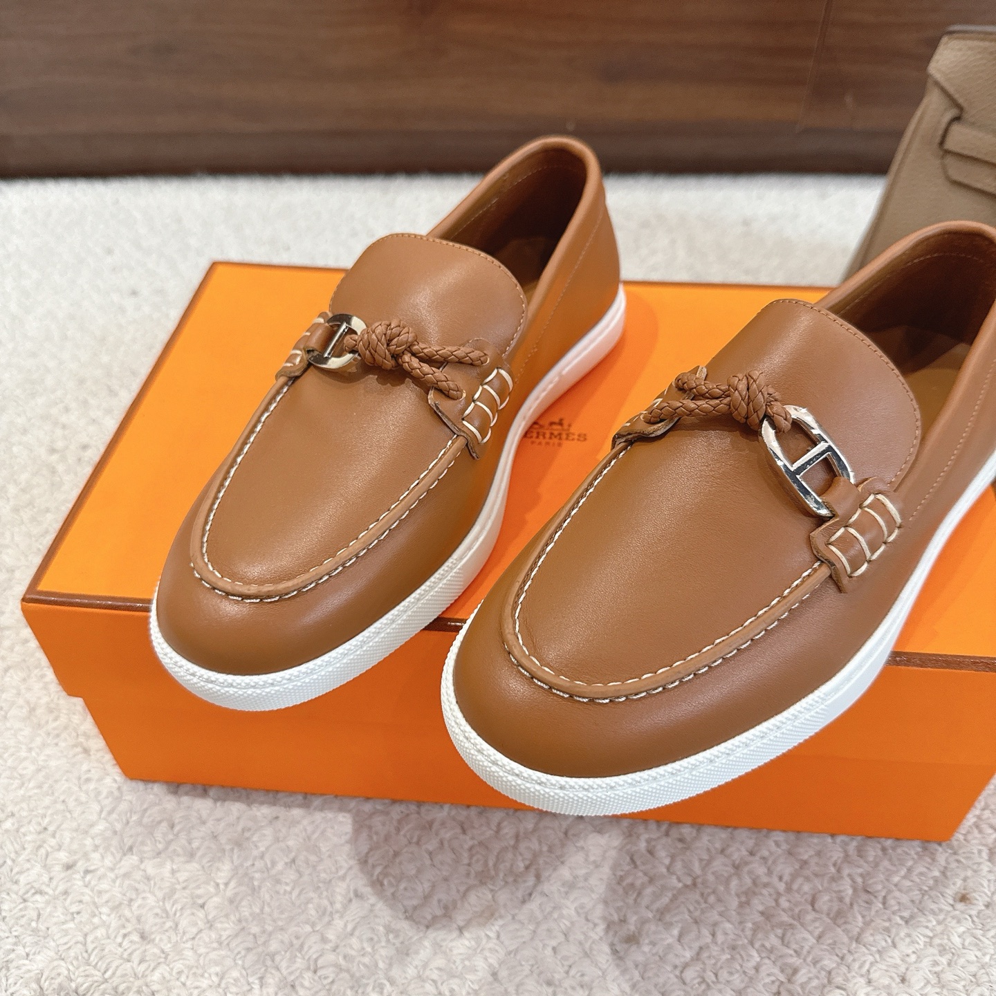 這款鞋子是AAAAA 1:1 質量(非常棒). 使用了和原版一模一樣的材料. 商標部分也保持了和愛馬仕/Hermes一樣. 圖片拍攝是實物鞋子拍攝, 您所收到的實物保證和我們圖片一模一樣.