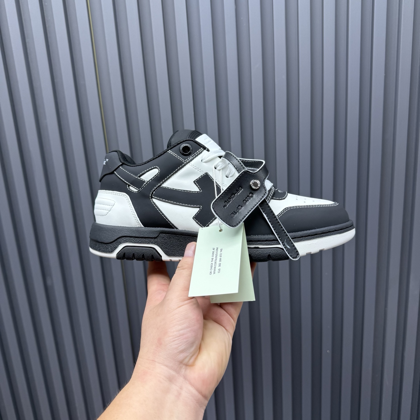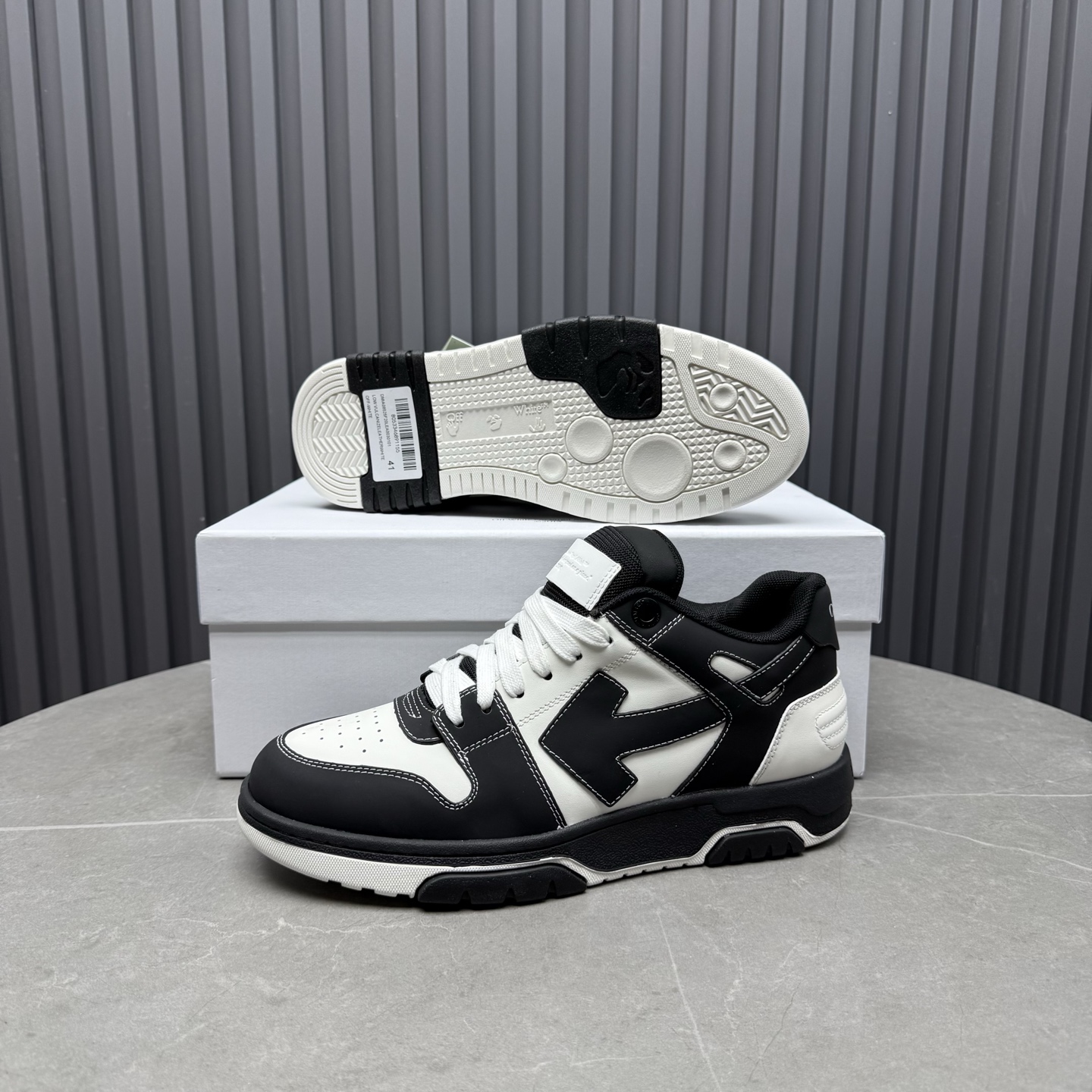 這款鞋子是AAAAA 1:1 質量(非常棒). 使用了和原版一模一樣的材料. 商標部分也保持了和OFF WHITE一樣. 圖片拍攝是實物鞋子拍攝, 您所收到的實物保證和我們圖片一模一樣.