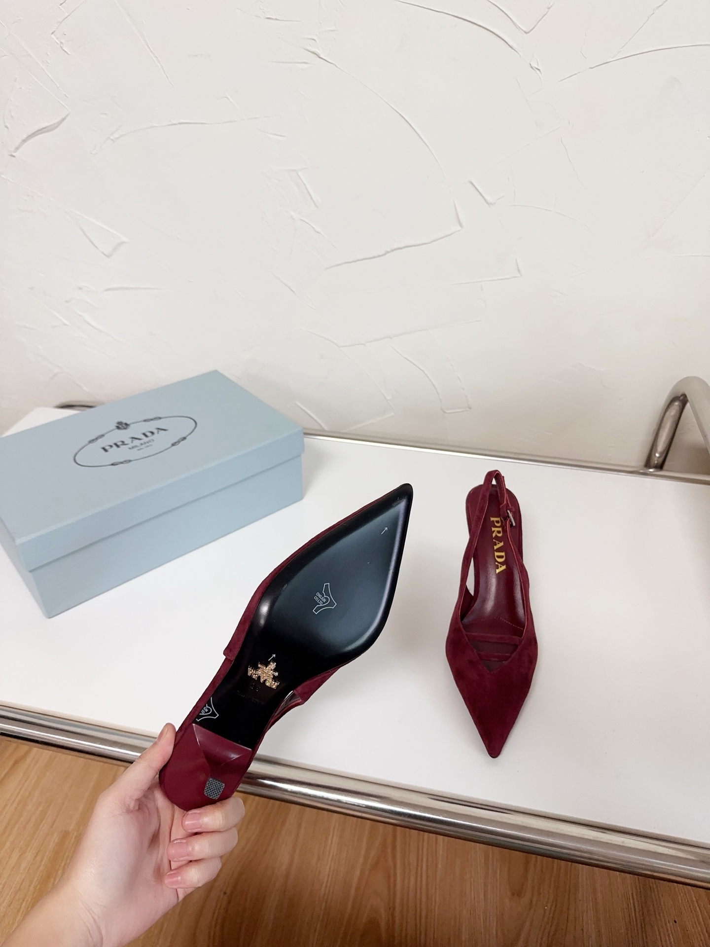 這款鞋子是AAAAA 1:1 質量(非常棒). 使用了和原版一模一樣的材料. 商標部分也保持了和普拉達/Prada一樣. 圖片拍攝是實物鞋子拍攝, 您所收到的實物保證和我們圖片一模一樣.