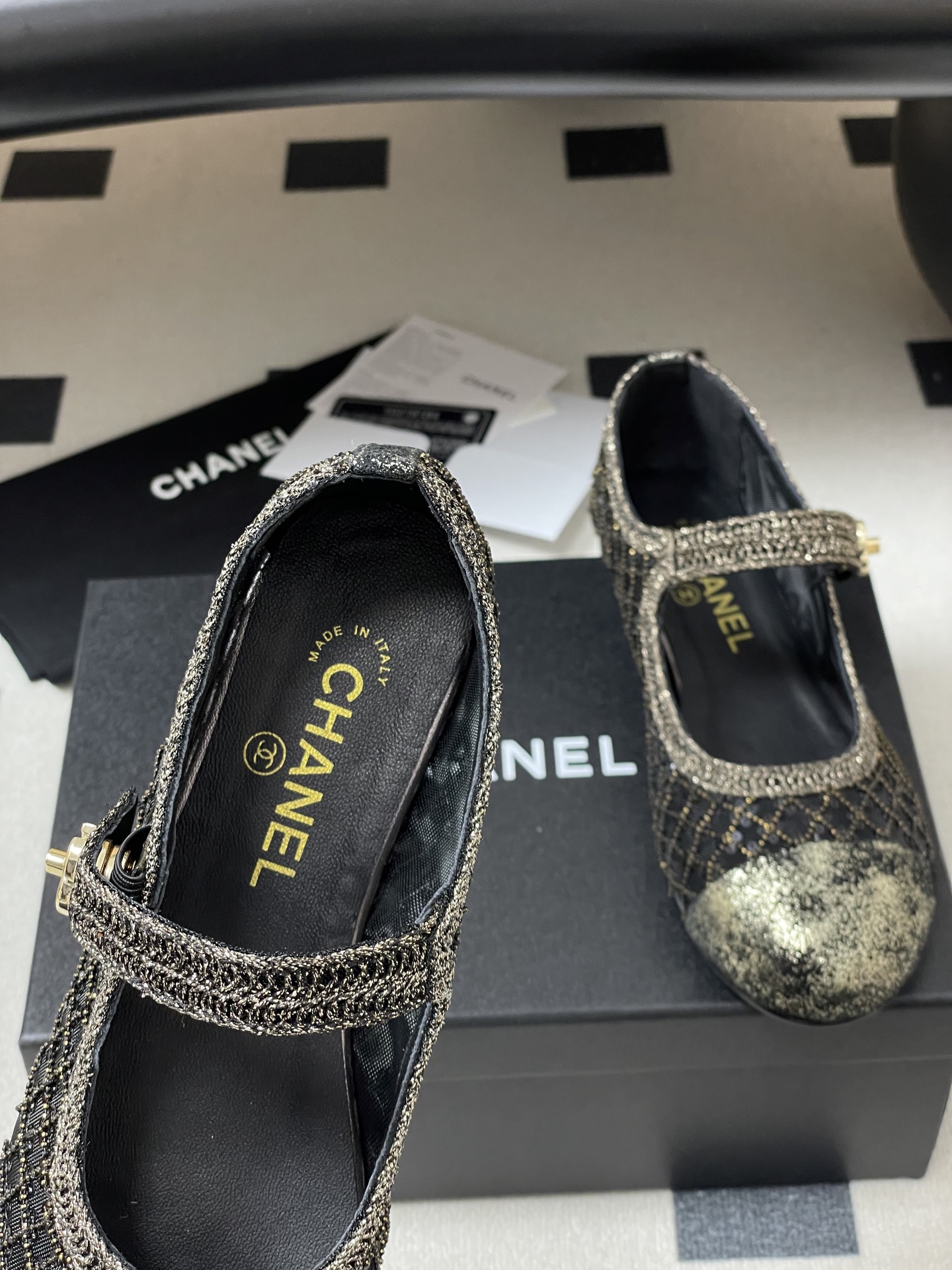 這款鞋子是AAAAA 1:1 質量(非常棒). 使用了和原版一模一樣的材料. 商標部分也保持了和香奈兒/Chanel一樣. 圖片拍攝是實物鞋子拍攝, 您所收到的實物保證和我們圖片一模一樣.