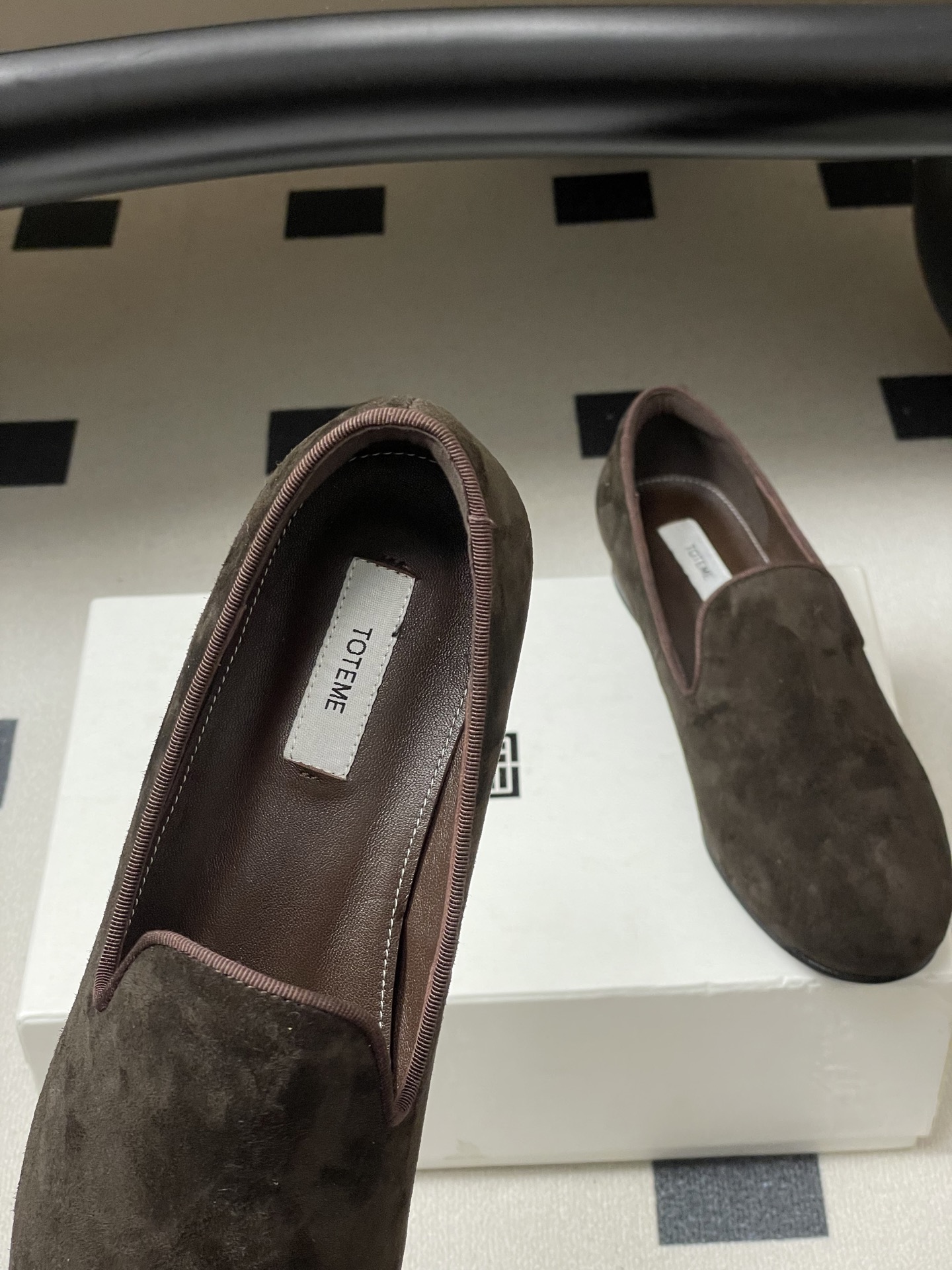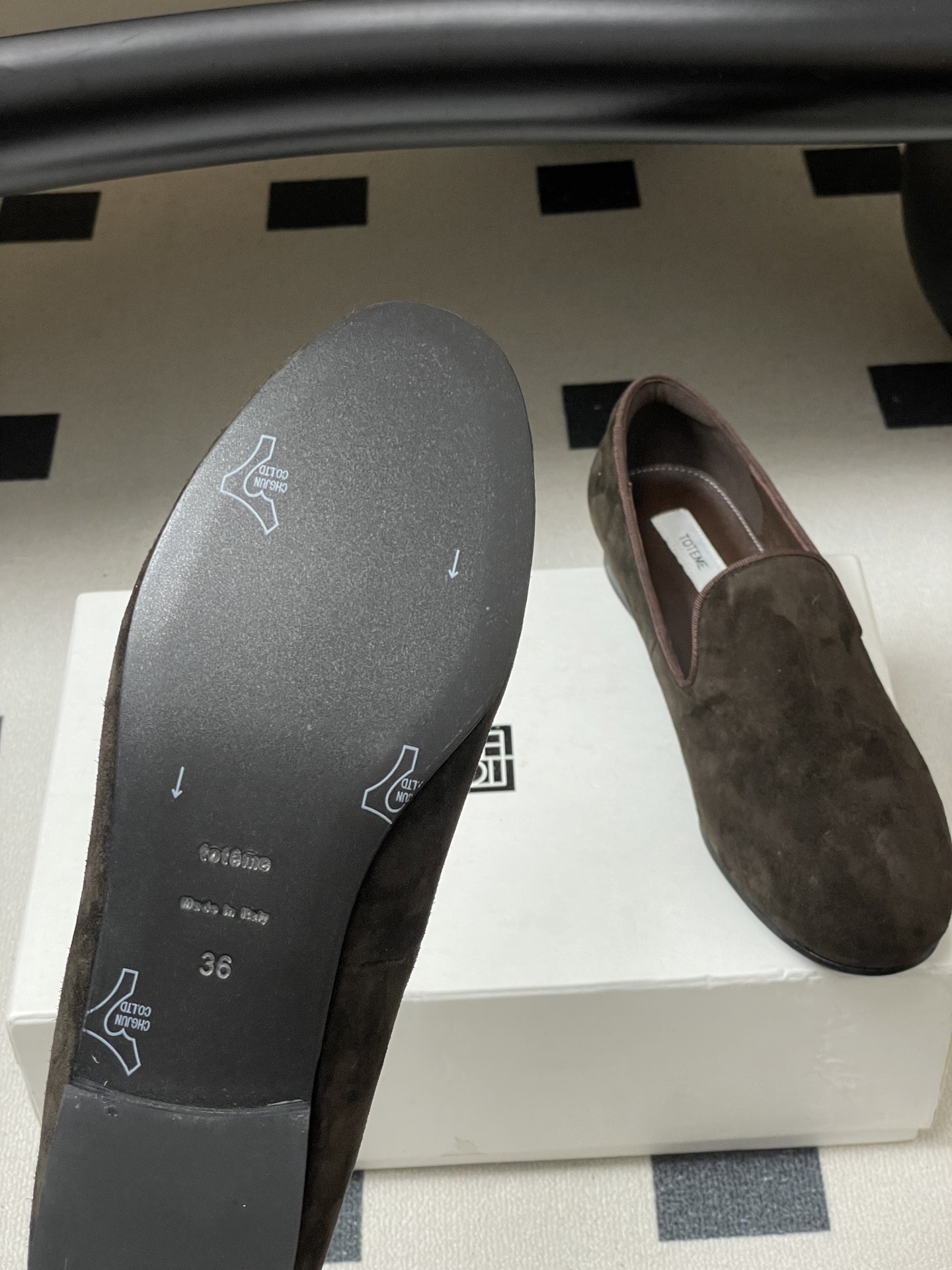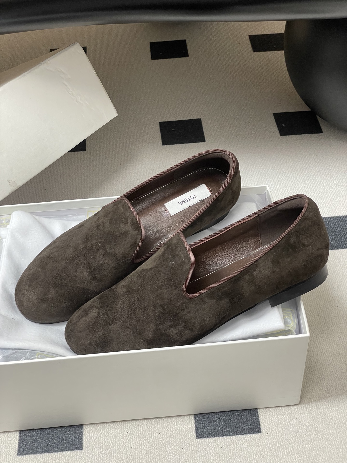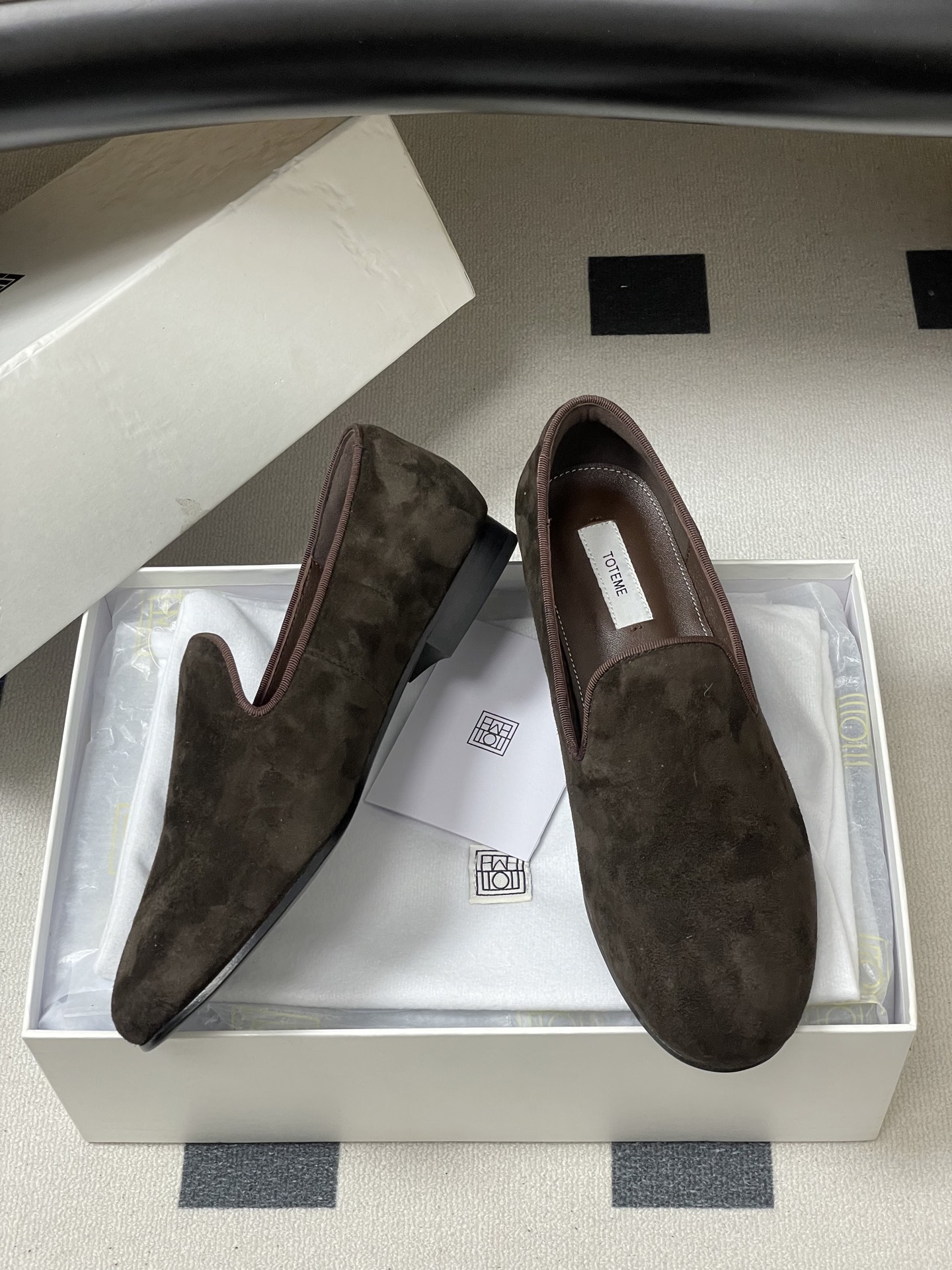 這款鞋子是AAAAA 1:1 質量(非常棒). 使用了和原版一模一樣的材料. 商標部分也保持了和Toteme一樣. 圖片拍攝是實物鞋子拍攝, 您所收到的實物保證和我們圖片一模一樣.