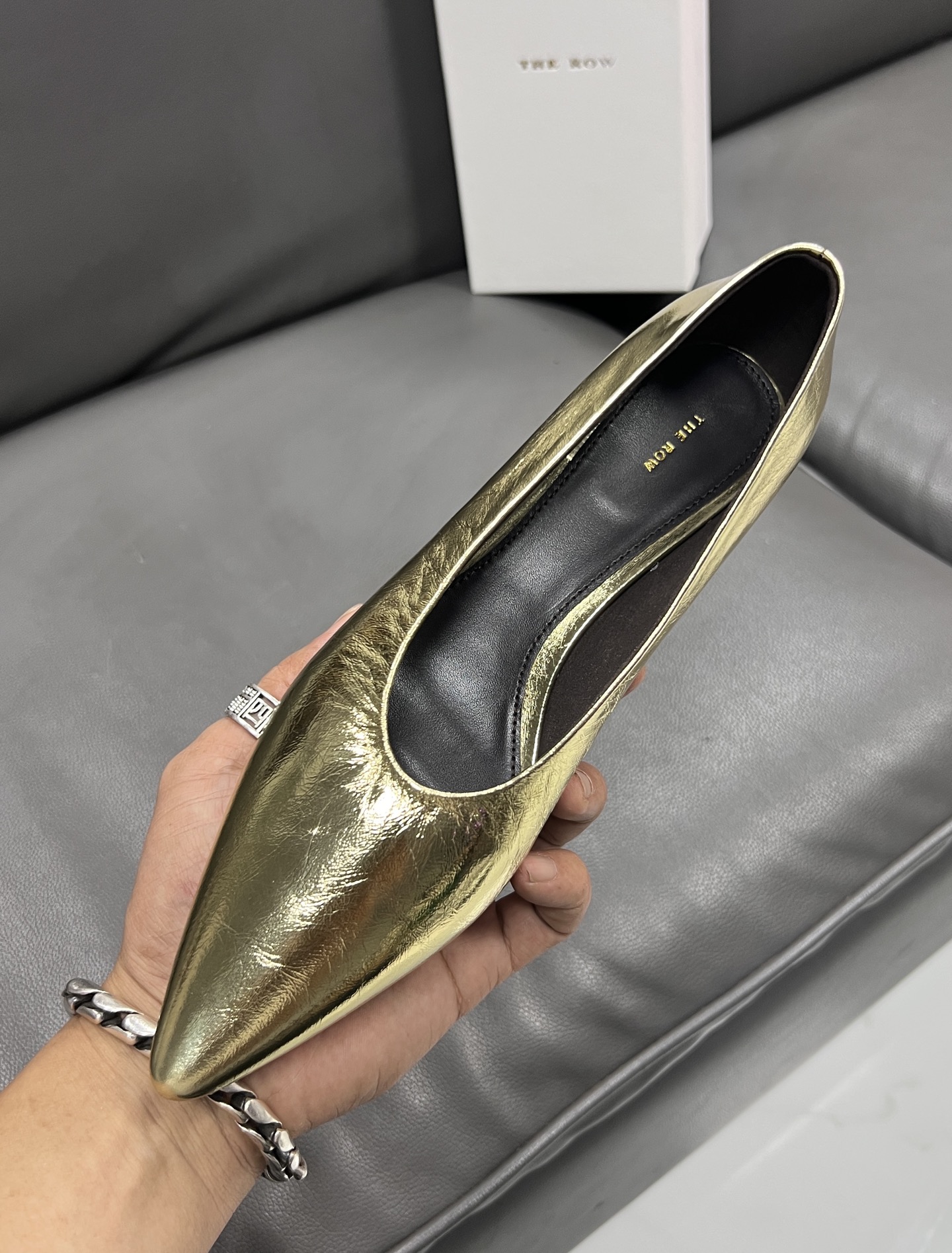 這款鞋子是AAAAA 1:1 質量(非常棒). 使用了和原版一模一樣的材料. 商標部分也保持了和The Row一樣. 圖片拍攝是實物鞋子拍攝, 您所收到的實物保證和我們圖片一模一樣.