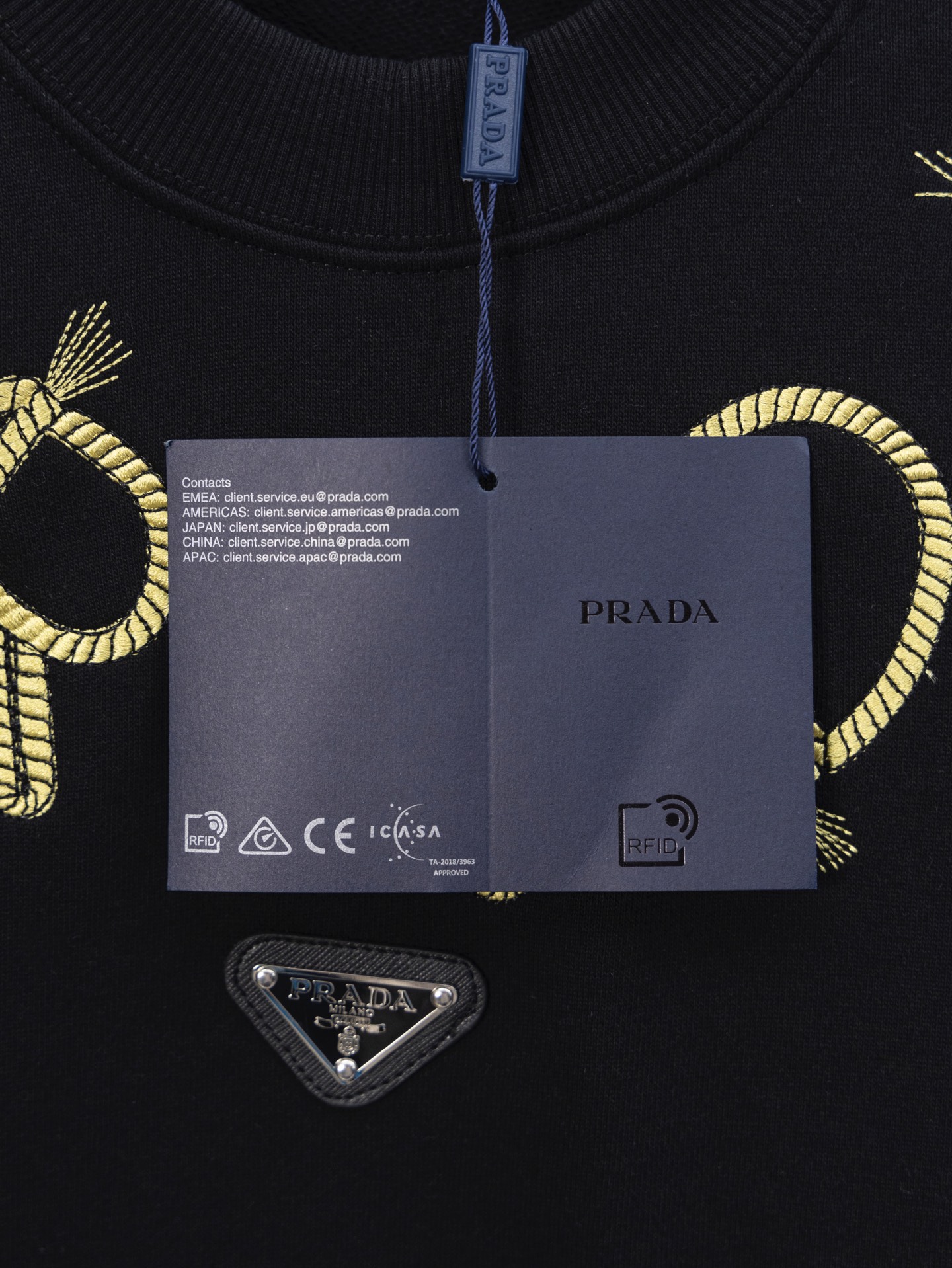 這款衣服是AAAAA 1:1 質量(非常棒). 使用了和原版一模一樣的材料. 商標部分也保持了和普拉達/Prada一樣. 圖片拍攝是實物衣服拍攝, 您所收到的實物保證和我們圖片一模一樣.