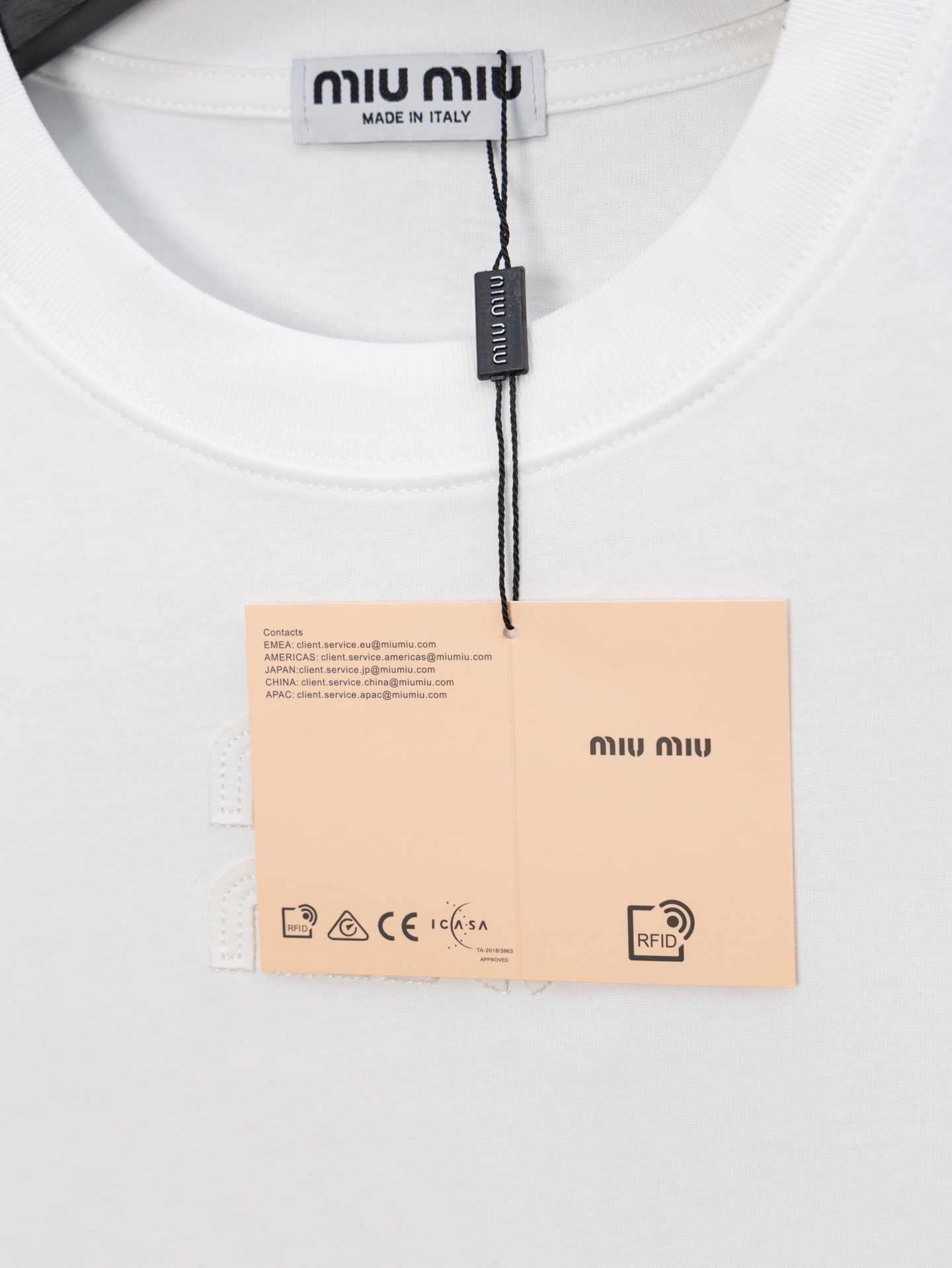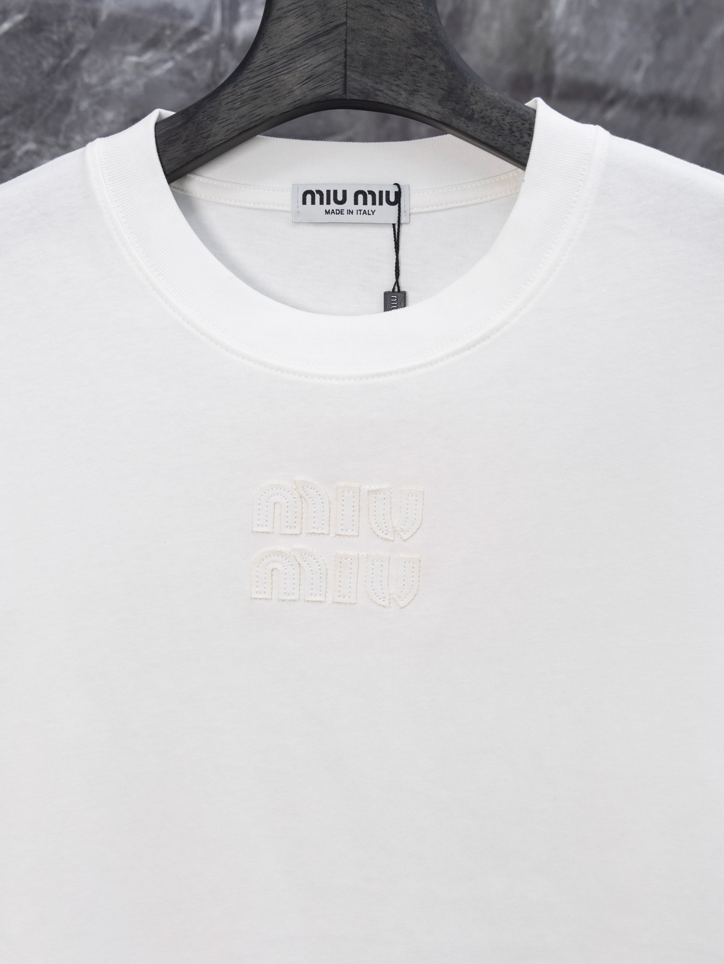 這款衣服是AAAAA 1:1 質量(非常棒). 使用了和原版一模一樣的材料. 商標部分也保持了和繆繆/Miu Miu一樣. 圖片拍攝是實物衣服拍攝, 您所收到的實物保證和我們圖片一模一樣.