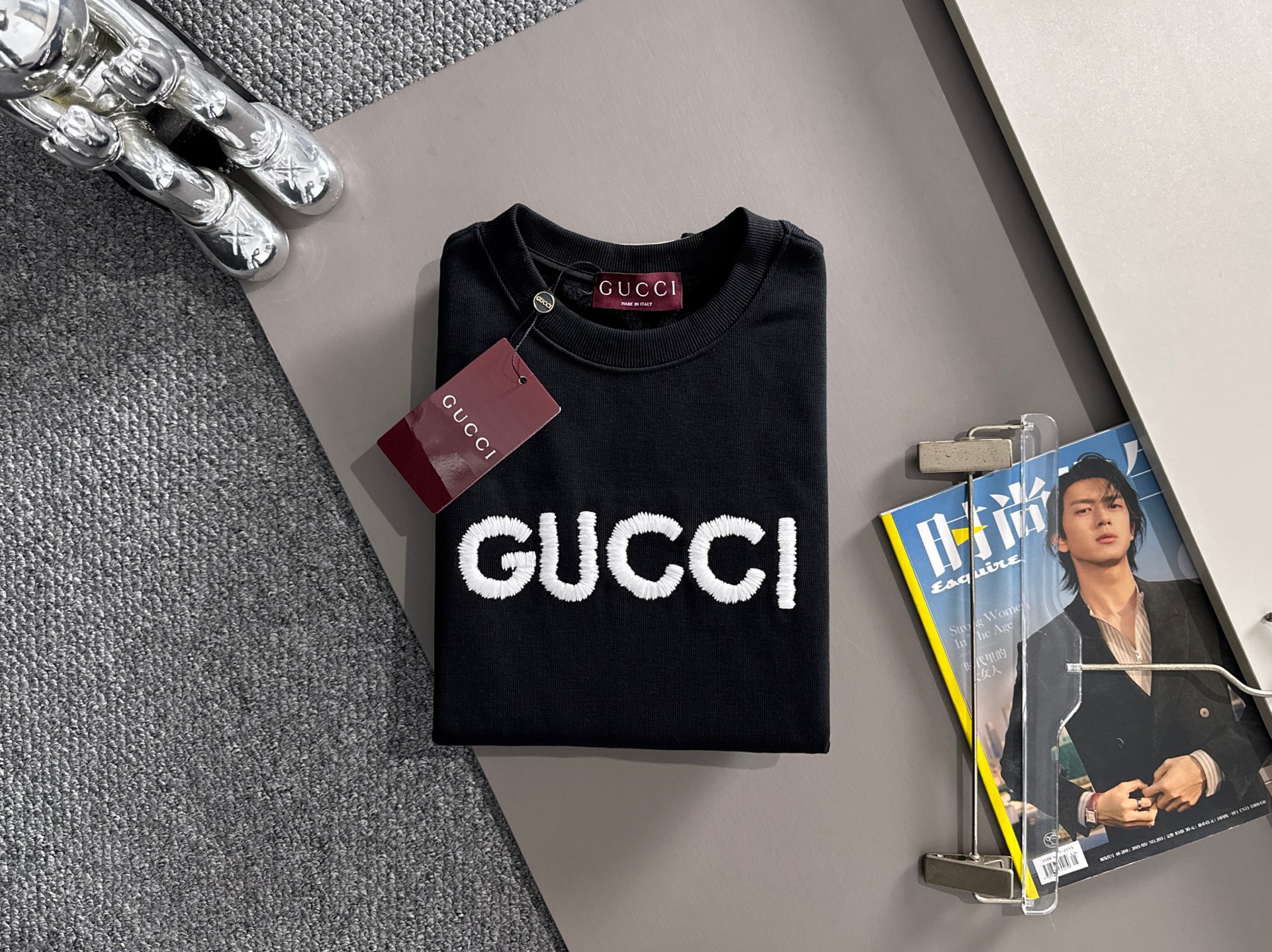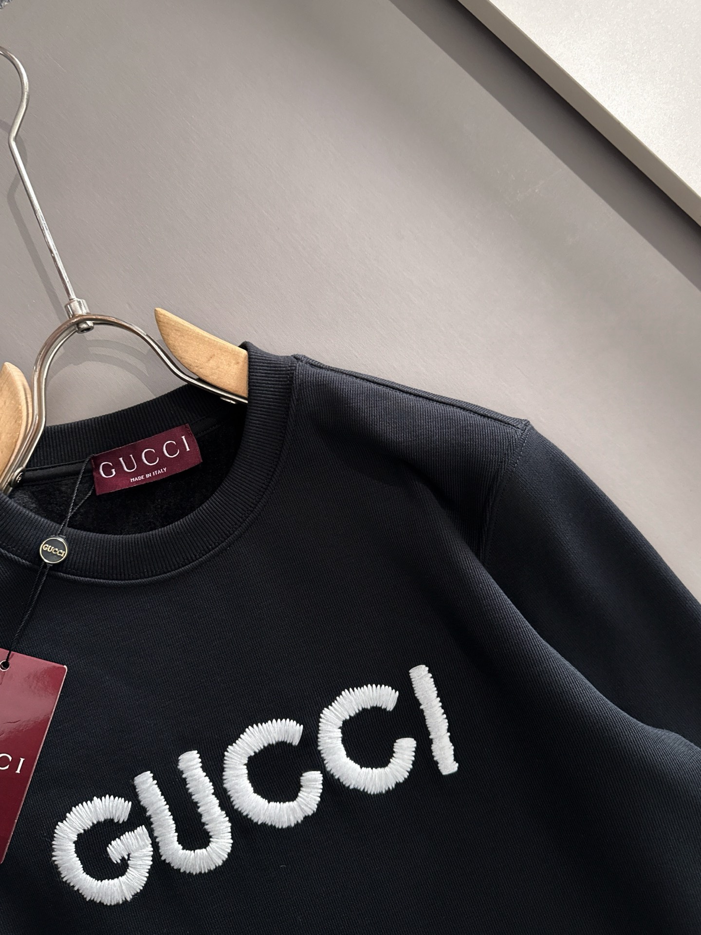 這款衣服是AAAAA 1:1 質量(非常棒). 使用了和原版一模一樣的材料. 商標部分也保持了和古奇/Gucci一樣. 圖片拍攝是實物衣服拍攝, 您所收到的實物保證和我們圖片一模一樣.