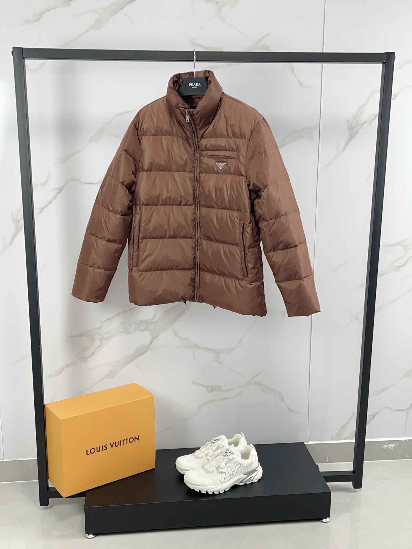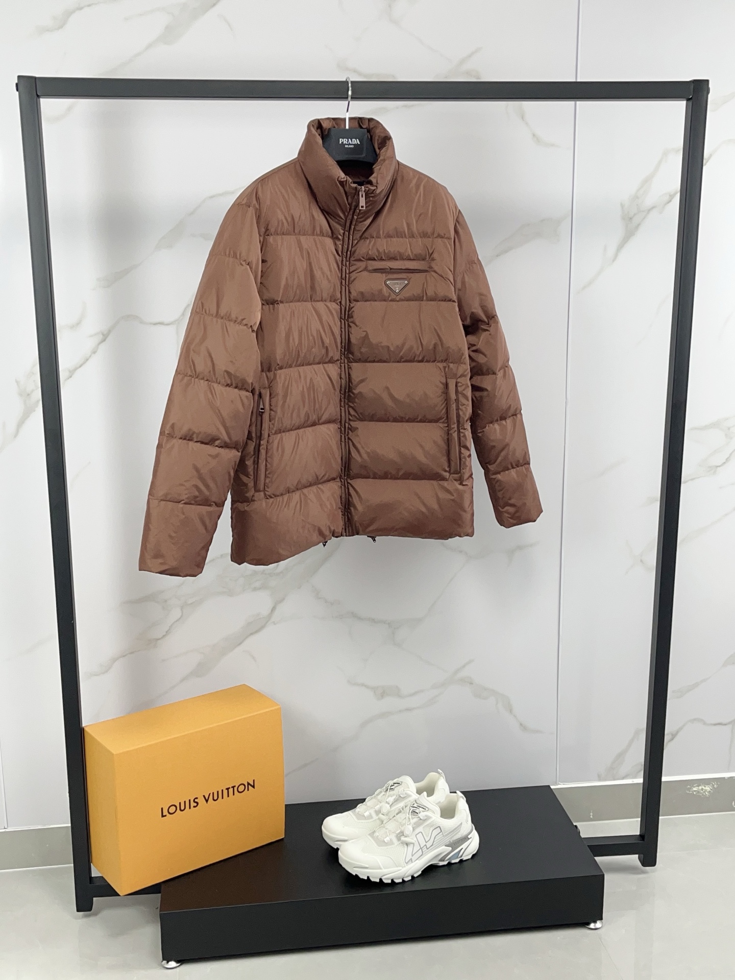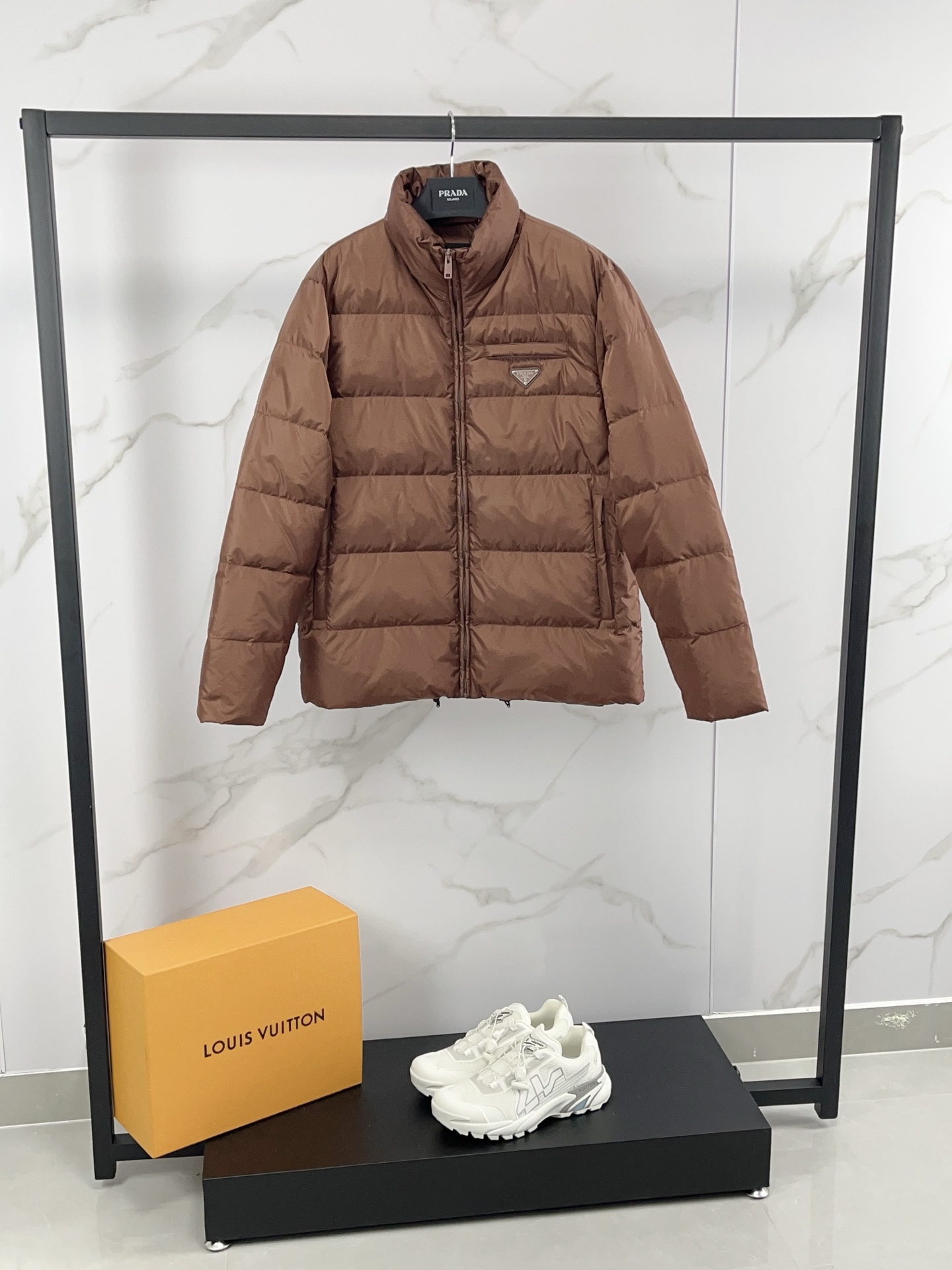 這款衣服是AAAAA 1:1 質量(非常棒). 使用了和原版一模一樣的材料. 商標部分也保持了和普拉達/Prada一樣. 圖片拍攝是實物衣服拍攝, 您所收到的實物保證和我們圖片一模一樣.
