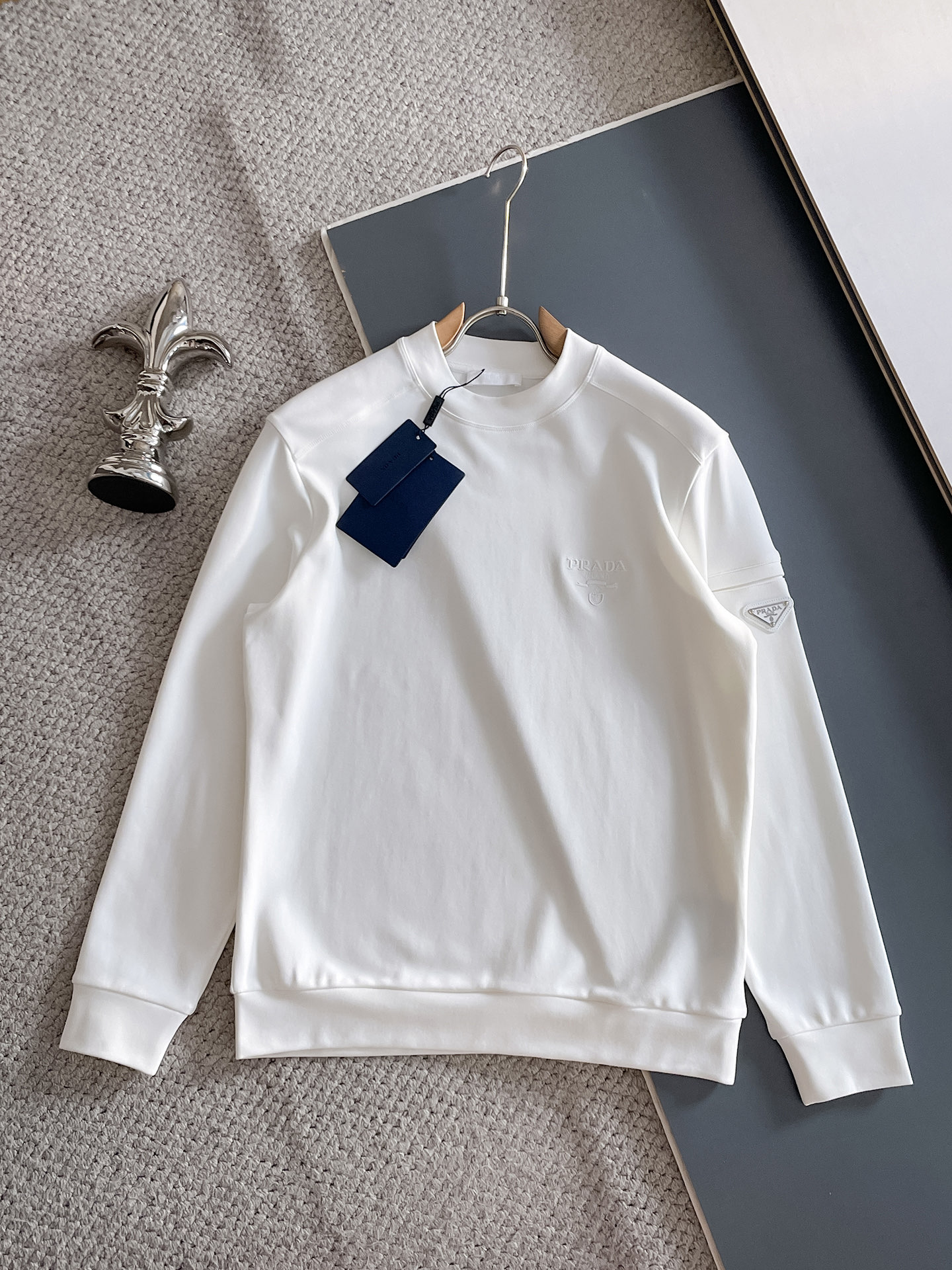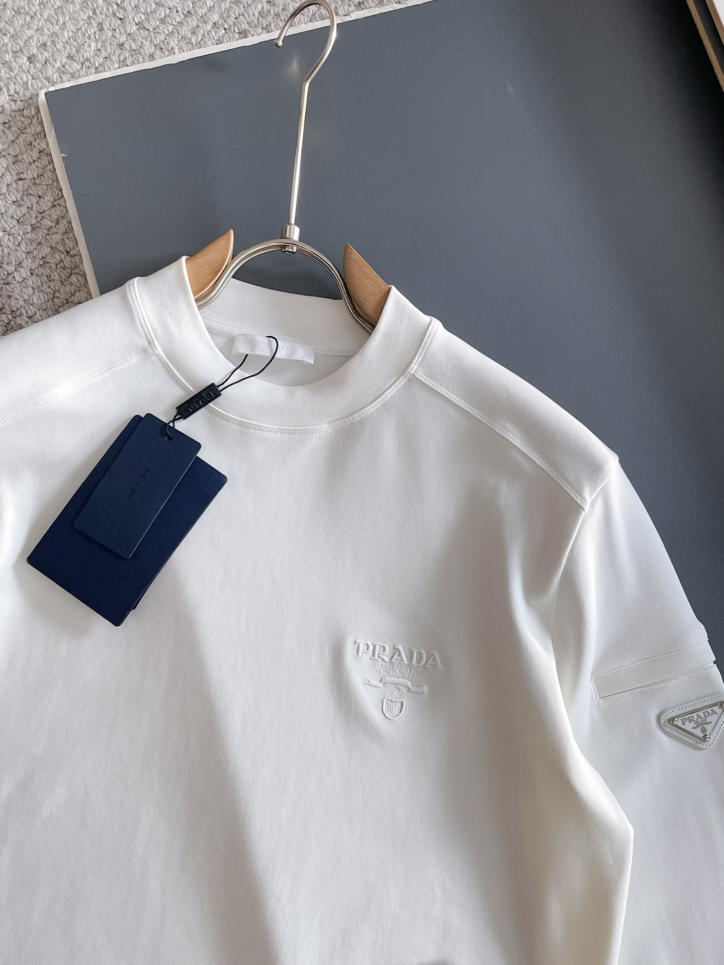 這款衣服是AAAAA 1:1 質量(非常棒). 使用了和原版一模一樣的材料. 商標部分也保持了和普拉達/Prada一樣. 圖片拍攝是實物衣服拍攝, 您所收到的實物保證和我們圖片一模一樣.