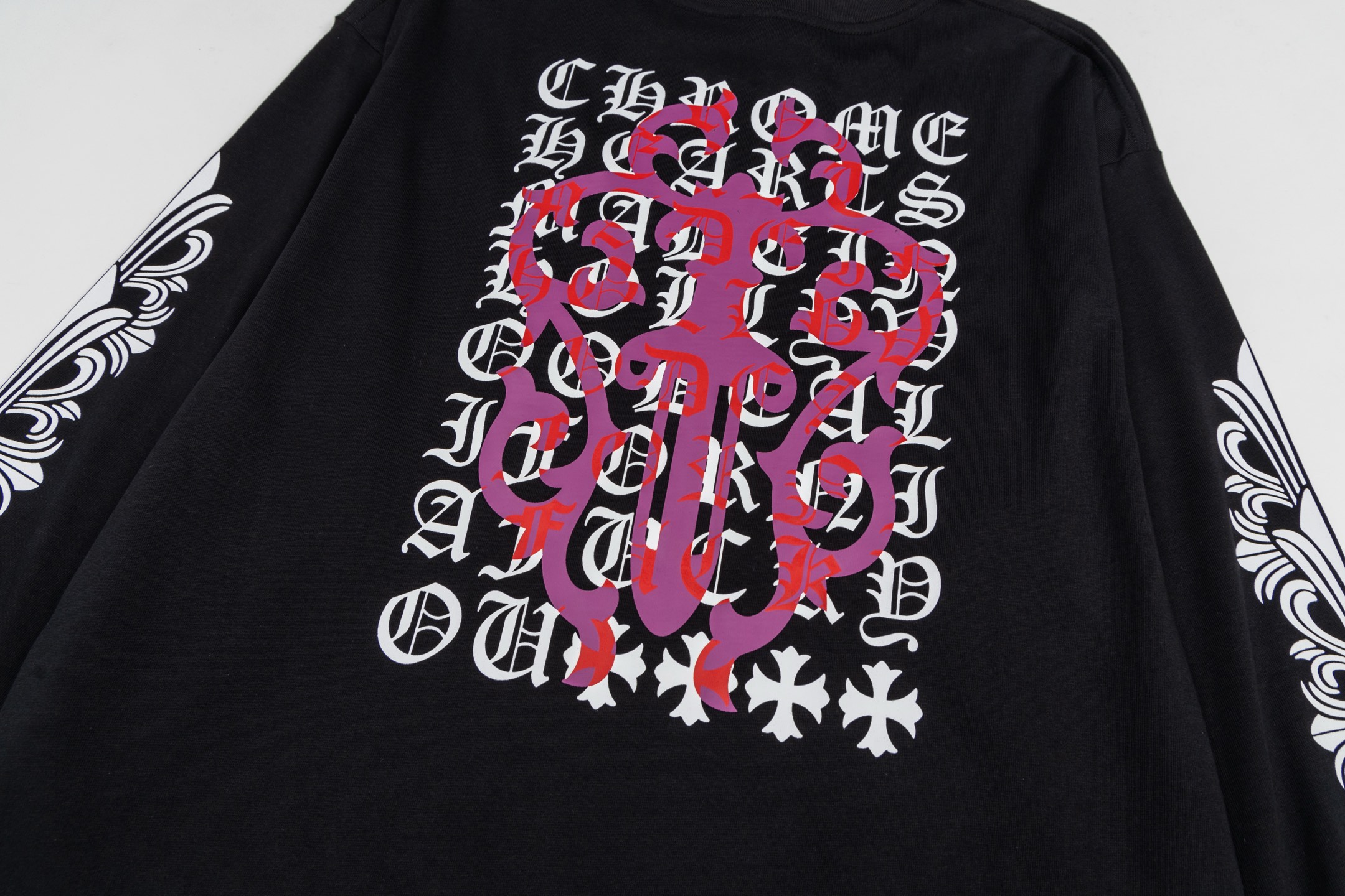 這款衣服是AAAAA 1:1 質量(非常棒). 使用了和原版一模一樣的材料. 商標部分也保持了和鉻心/Chrome Hearts一樣. 圖片拍攝是實物衣服拍攝, 您所收到的實物保證和我們圖片一模一樣.
