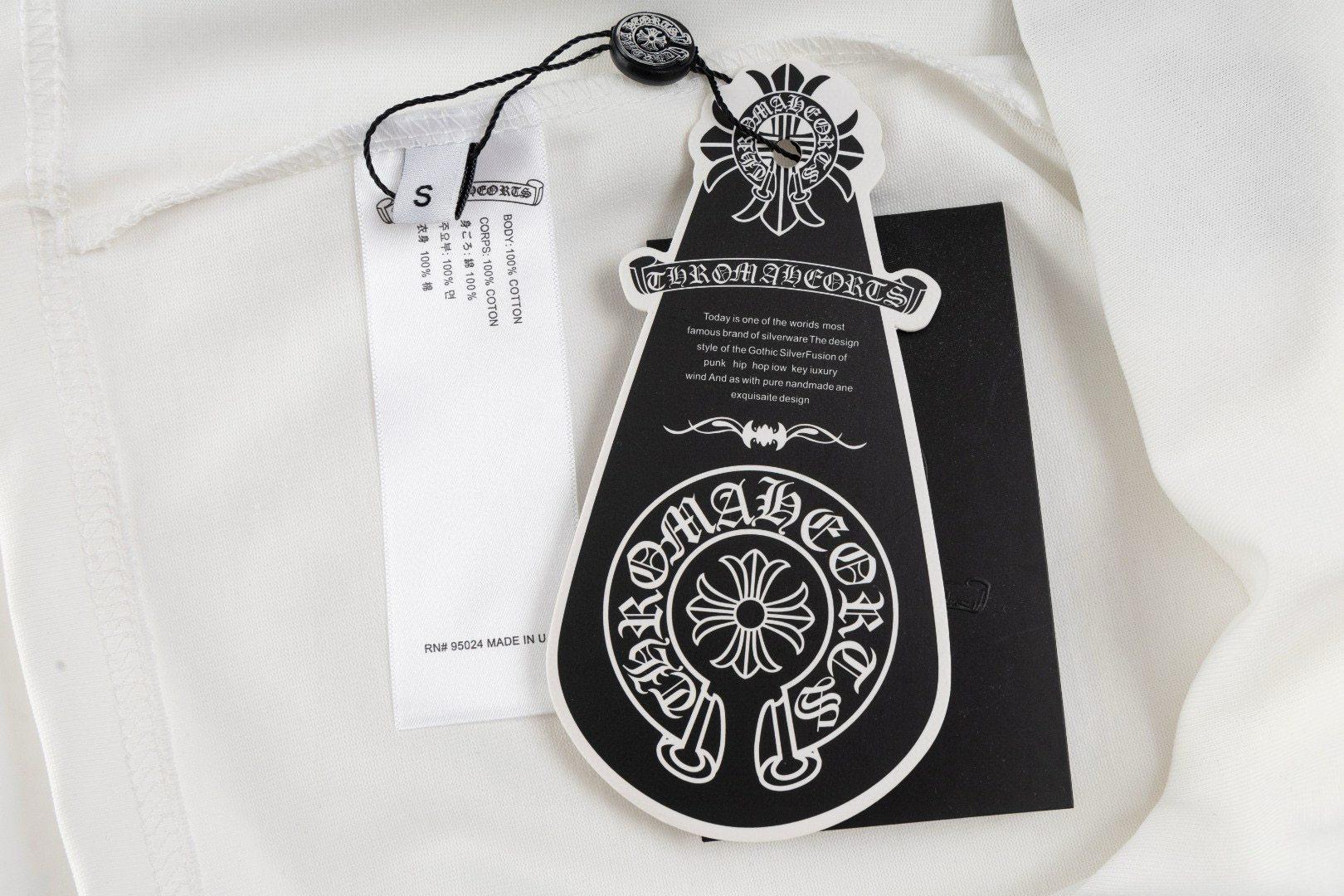 這款衣服是AAAAA 1:1 質量(非常棒). 使用了和原版一模一樣的材料. 商標部分也保持了和鉻心/Chrome Hearts一樣. 圖片拍攝是實物衣服拍攝, 您所收到的實物保證和我們圖片一模一樣.