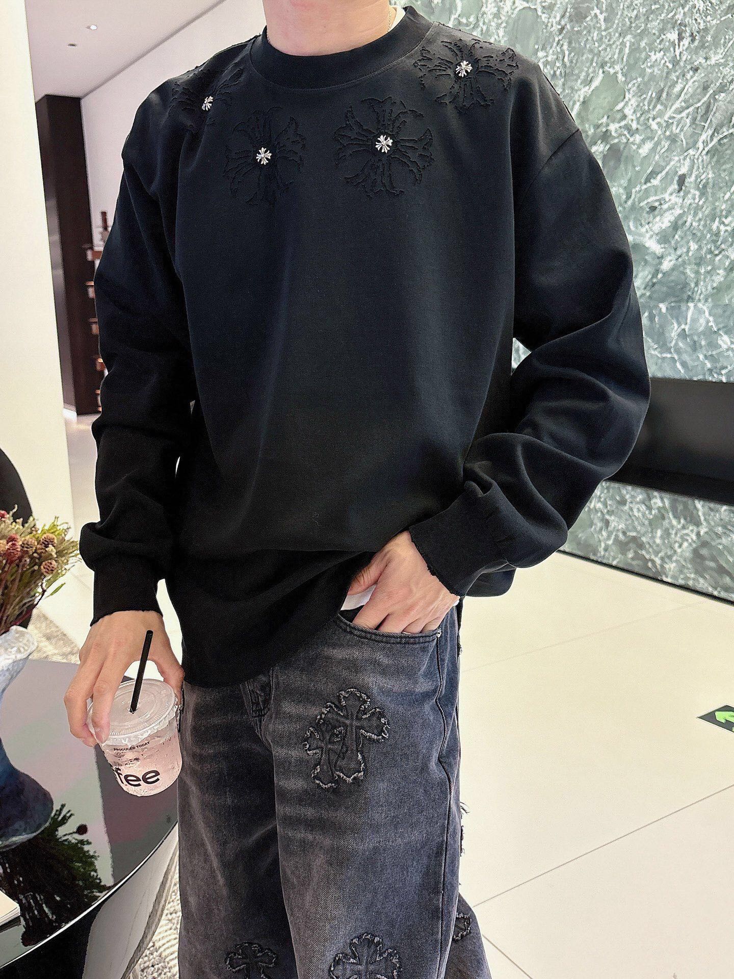 這款衣服是AAAAA 1:1 質量(非常棒). 使用了和原版一模一樣的材料. 商標部分也保持了和鉻心/Chrome Hearts一樣. 圖片拍攝是實物衣服拍攝, 您所收到的實物保證和我們圖片一模一樣.