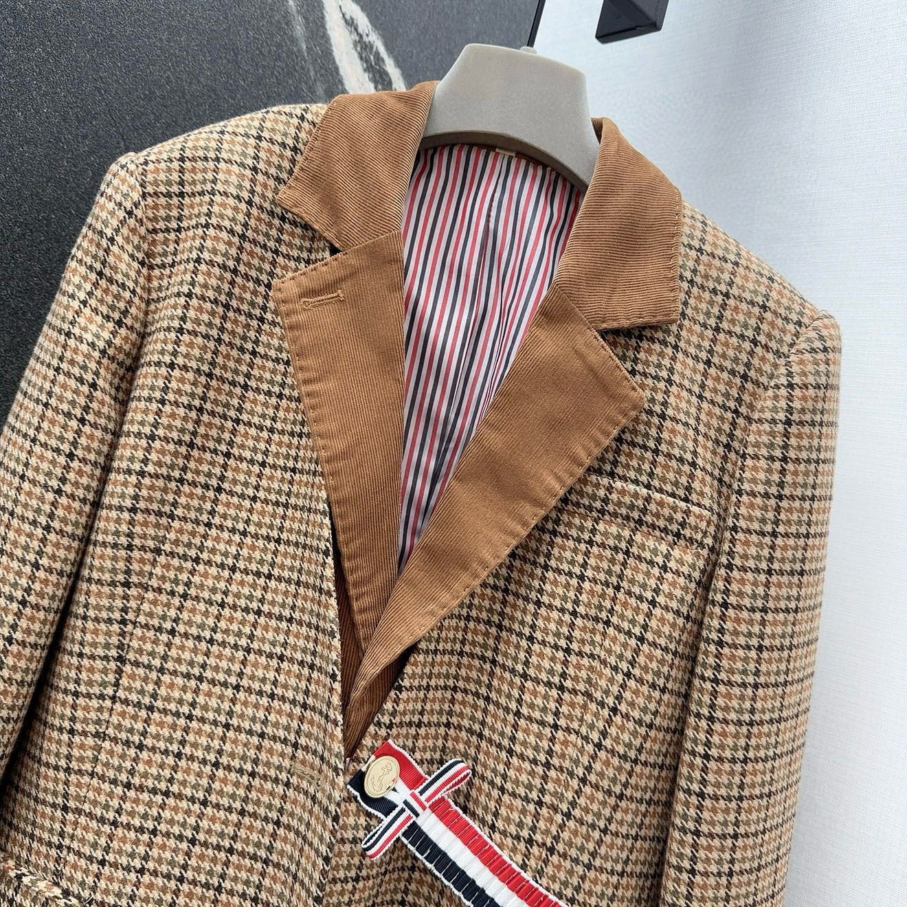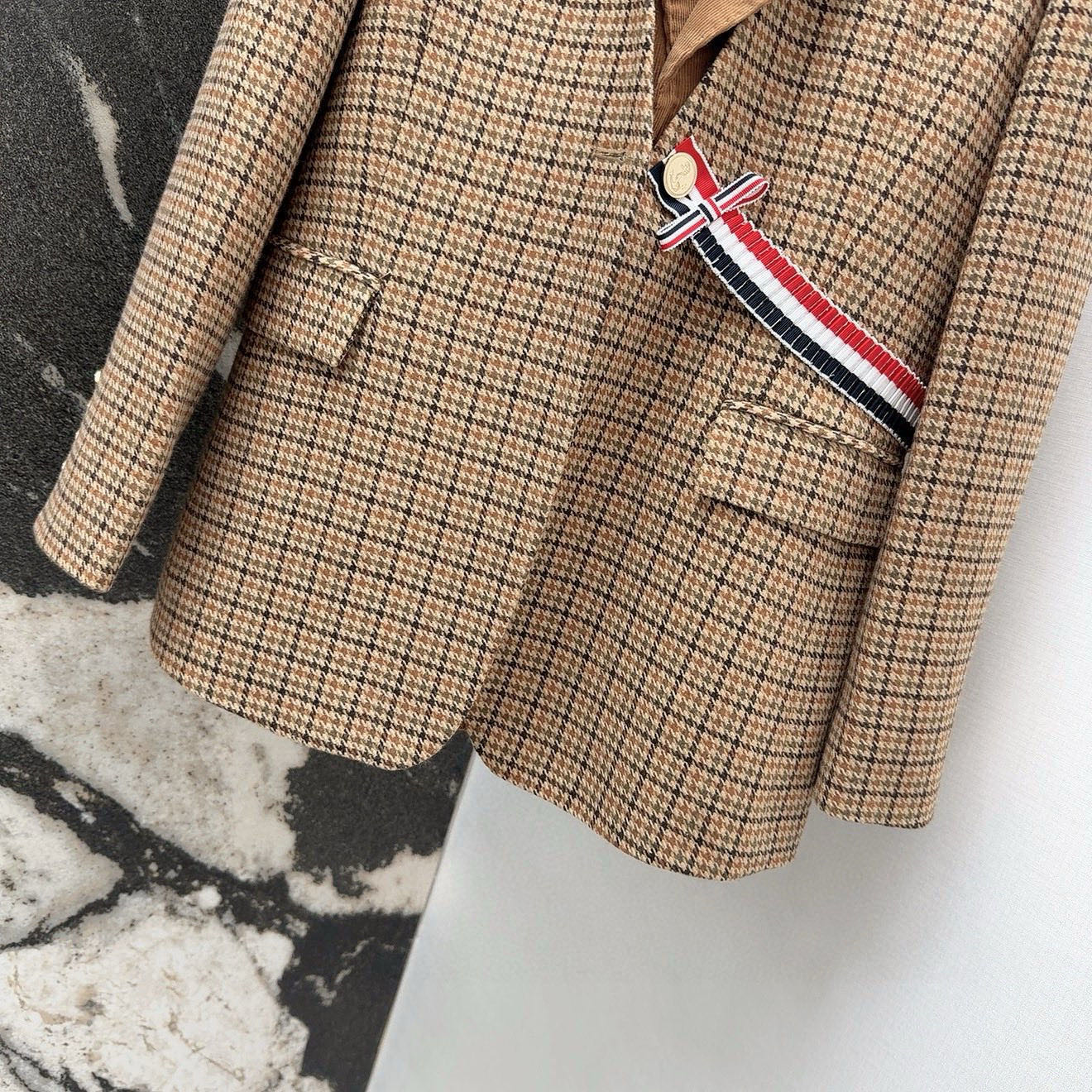 這款衣服是AAAAA 1:1 質量(非常棒). 使用了和原版一模一樣的材料. 商標部分也保持了和湯姆布朗/Thom Browne一樣. 圖片拍攝是實物衣服拍攝, 您所收到的實物保證和我們圖片一模一樣.