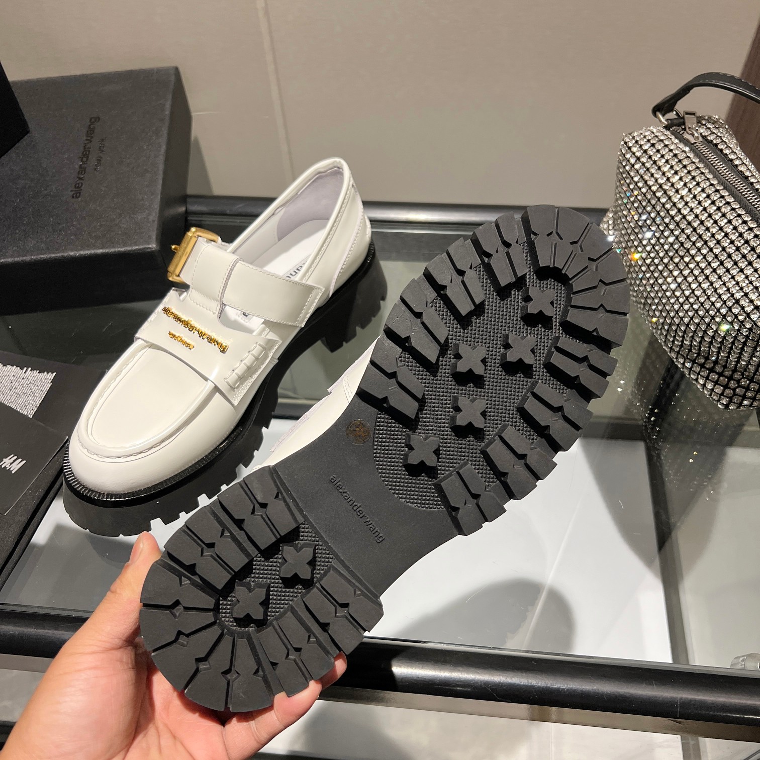 這款鞋子是AAAAA 1:1 質量(非常棒). 使用了和原版一模一樣的材料. 商標部分也保持了和Alexander Wang一樣. 圖片拍攝是實物鞋子拍攝, 您所收到的實物保證和我們圖片一模一樣.