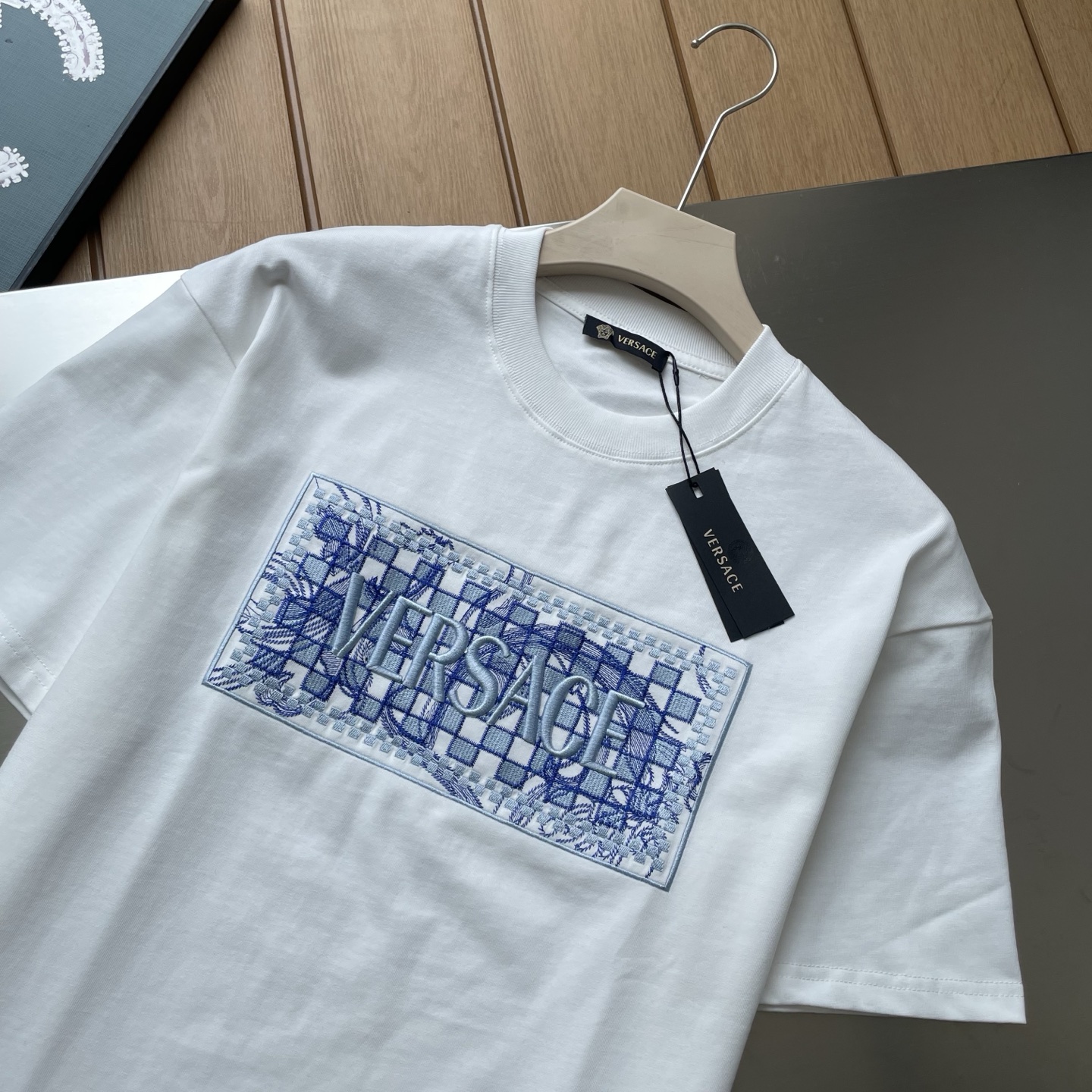 這款衣服是AAAAA 1:1 質量(非常棒). 使用了和原版一模一樣的材料. 商標部分也保持了和范思哲/Versace一樣. 圖片拍攝是實物衣服拍攝, 您所收到的實物保證和我們圖片一模一樣.