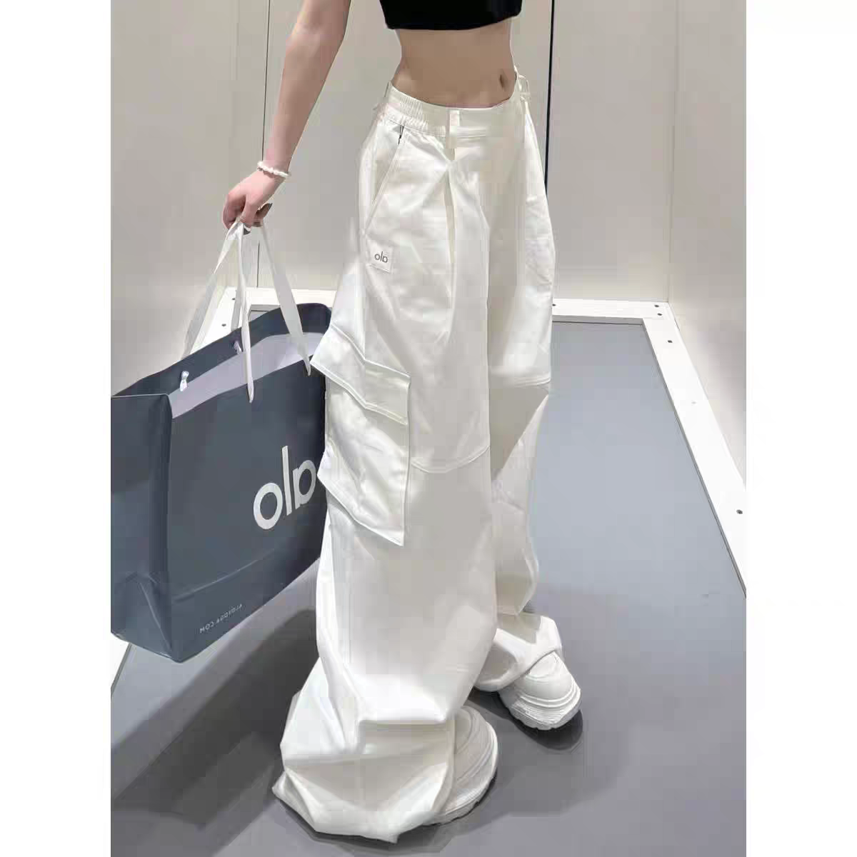 這款衣服是AAAAA 1:1 質量(非常棒). 使用了和原版一模一樣的材料. 商標部分也保持了和Alo Yoga一樣. 圖片拍攝是實物衣服拍攝, 您所收到的實物保證和我們圖片一模一樣.