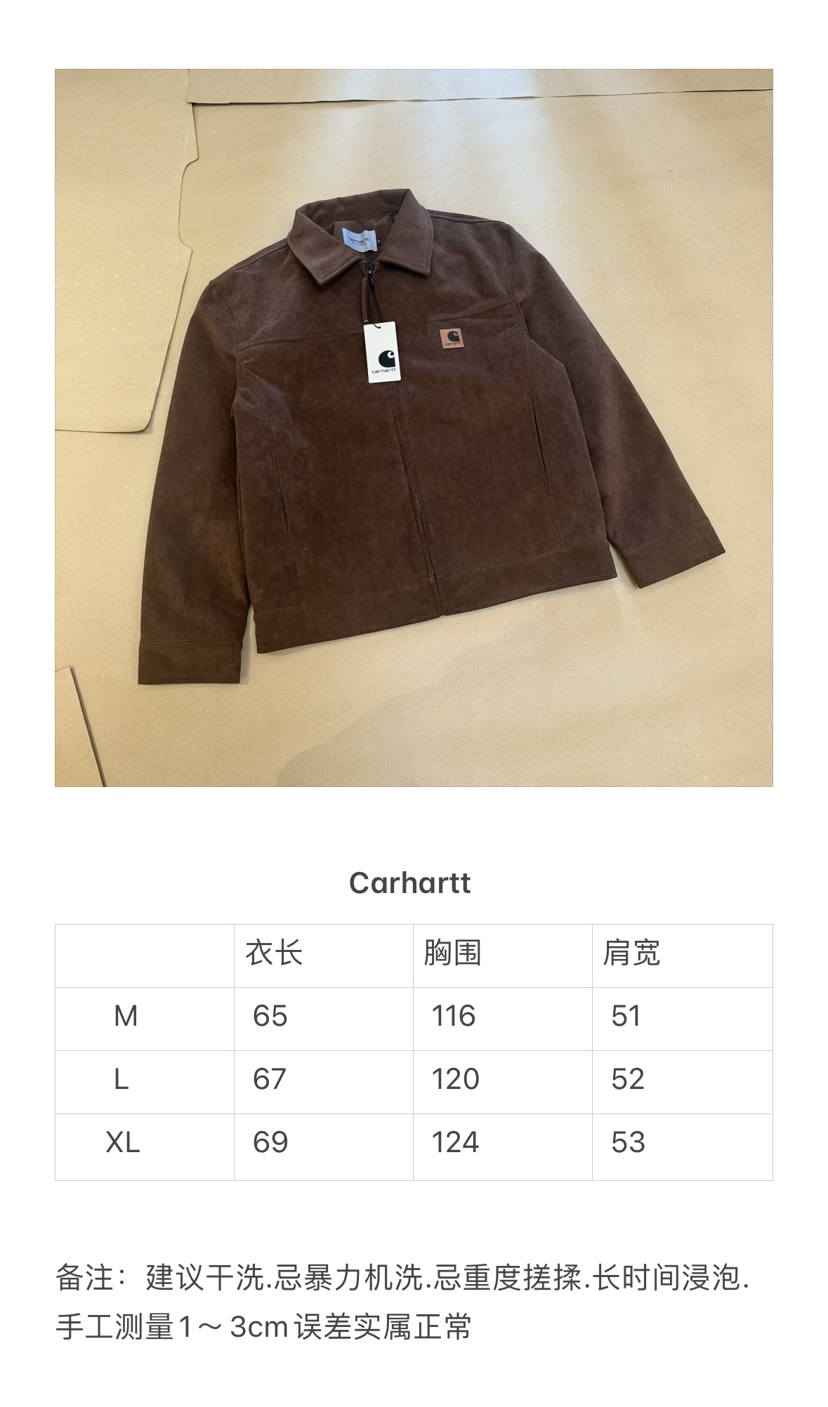 這款衣服是AAAAA 1:1 質量(非常棒). 使用了和原版一模一樣的材料. 商標部分也保持了和Carhartt一樣. 圖片拍攝是實物衣服拍攝, 您所收到的實物保證和我們圖片一模一樣.
