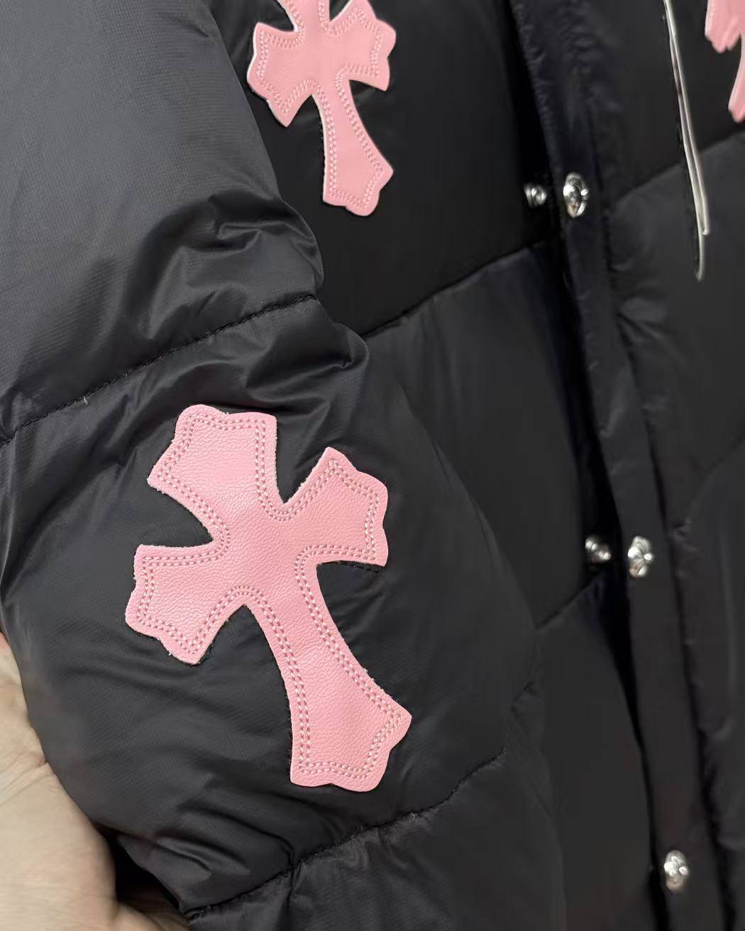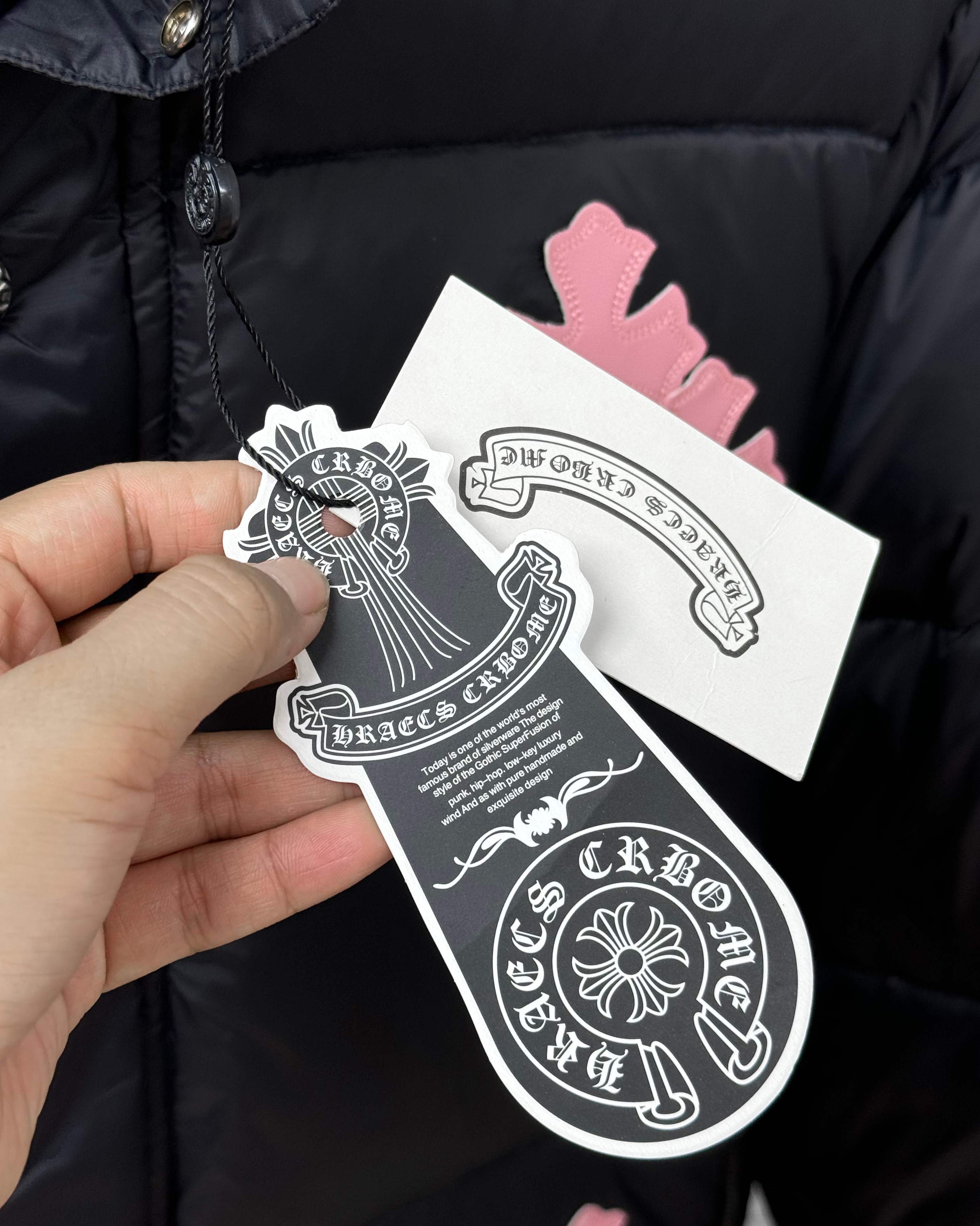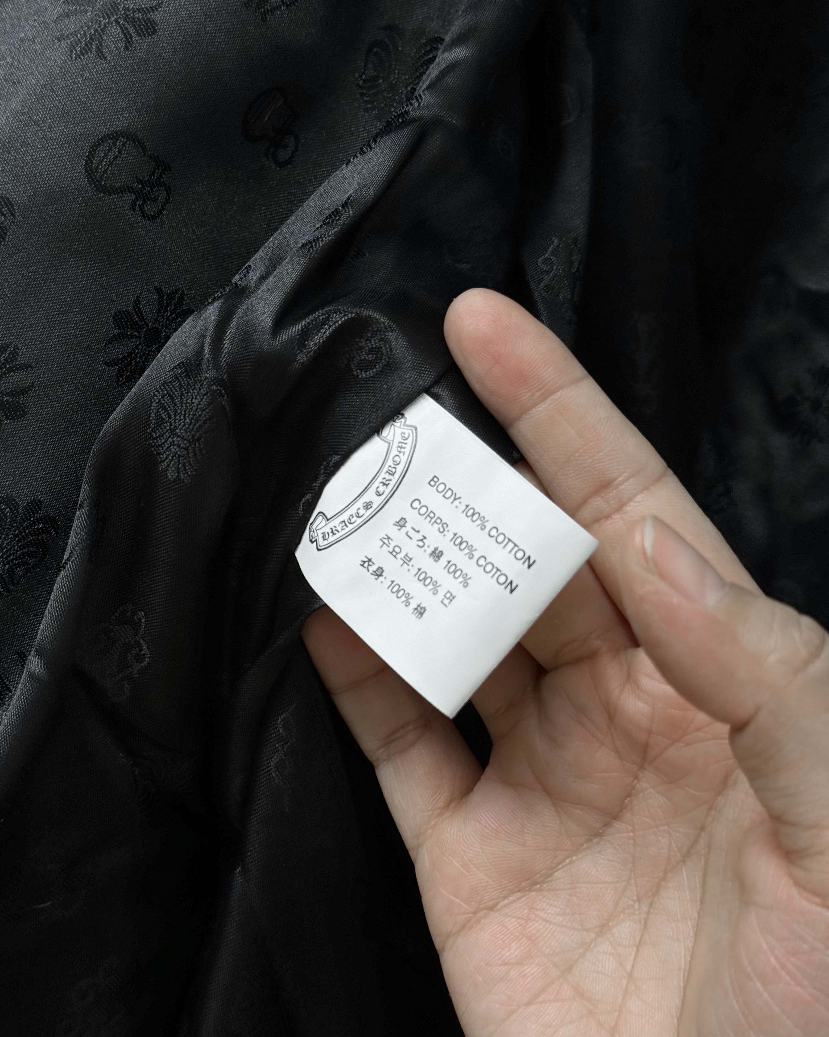 這款衣服是AAAAA 1:1 質量(非常棒). 使用了和原版一模一樣的材料. 商標部分也保持了和鉻心/Chrome Hearts一樣. 圖片拍攝是實物衣服拍攝, 您所收到的實物保證和我們圖片一模一樣.