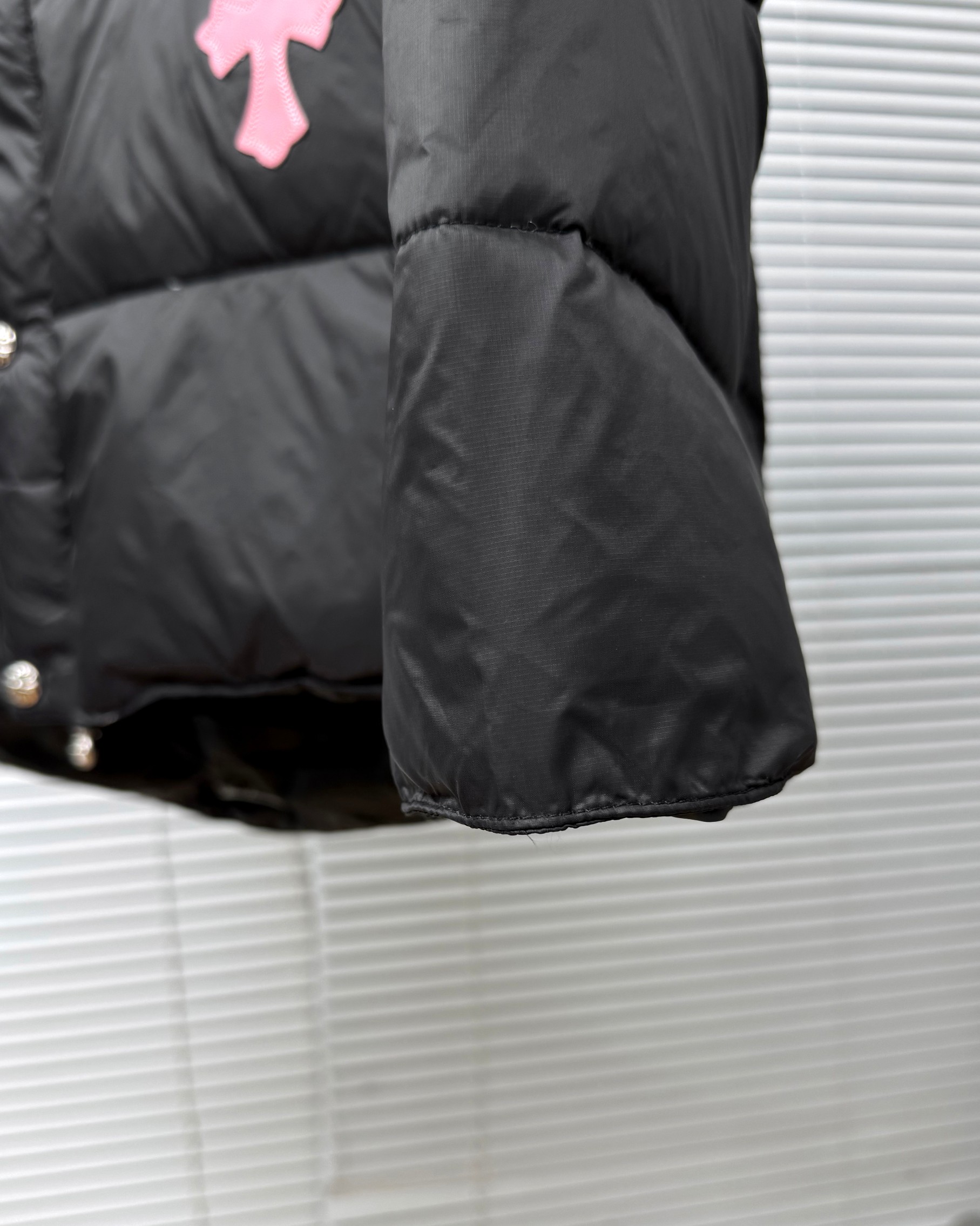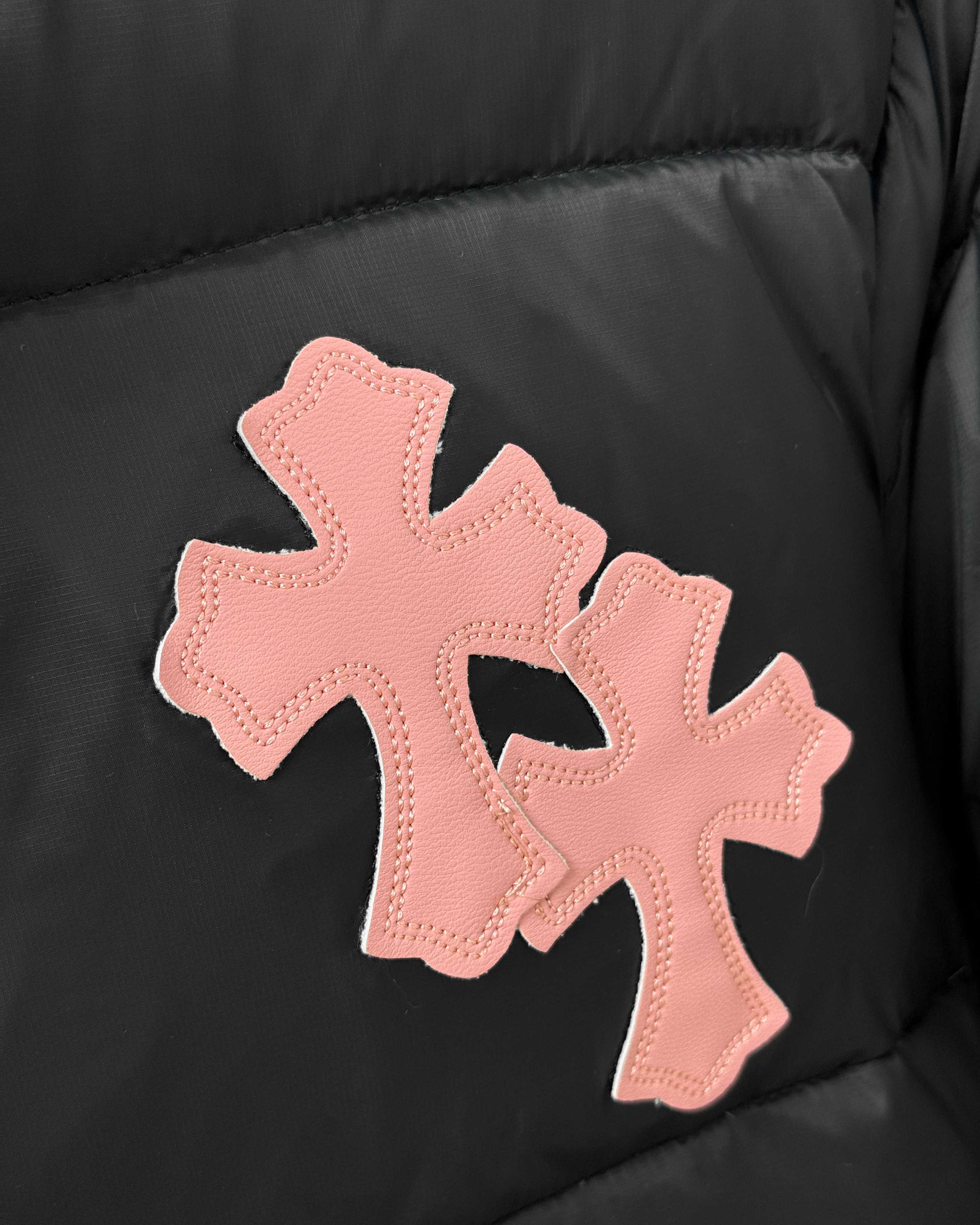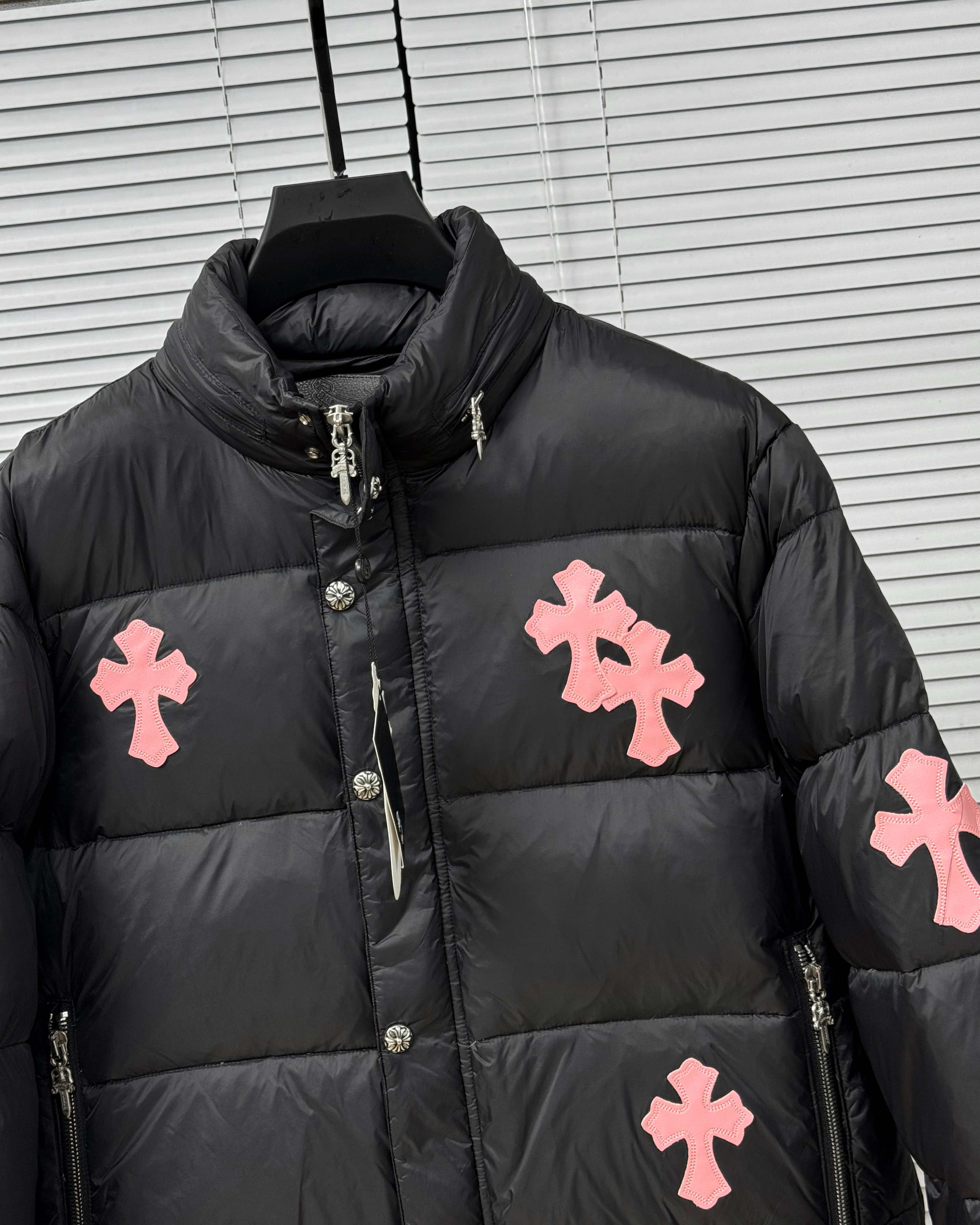 這款衣服是AAAAA 1:1 質量(非常棒). 使用了和原版一模一樣的材料. 商標部分也保持了和鉻心/Chrome Hearts一樣. 圖片拍攝是實物衣服拍攝, 您所收到的實物保證和我們圖片一模一樣.