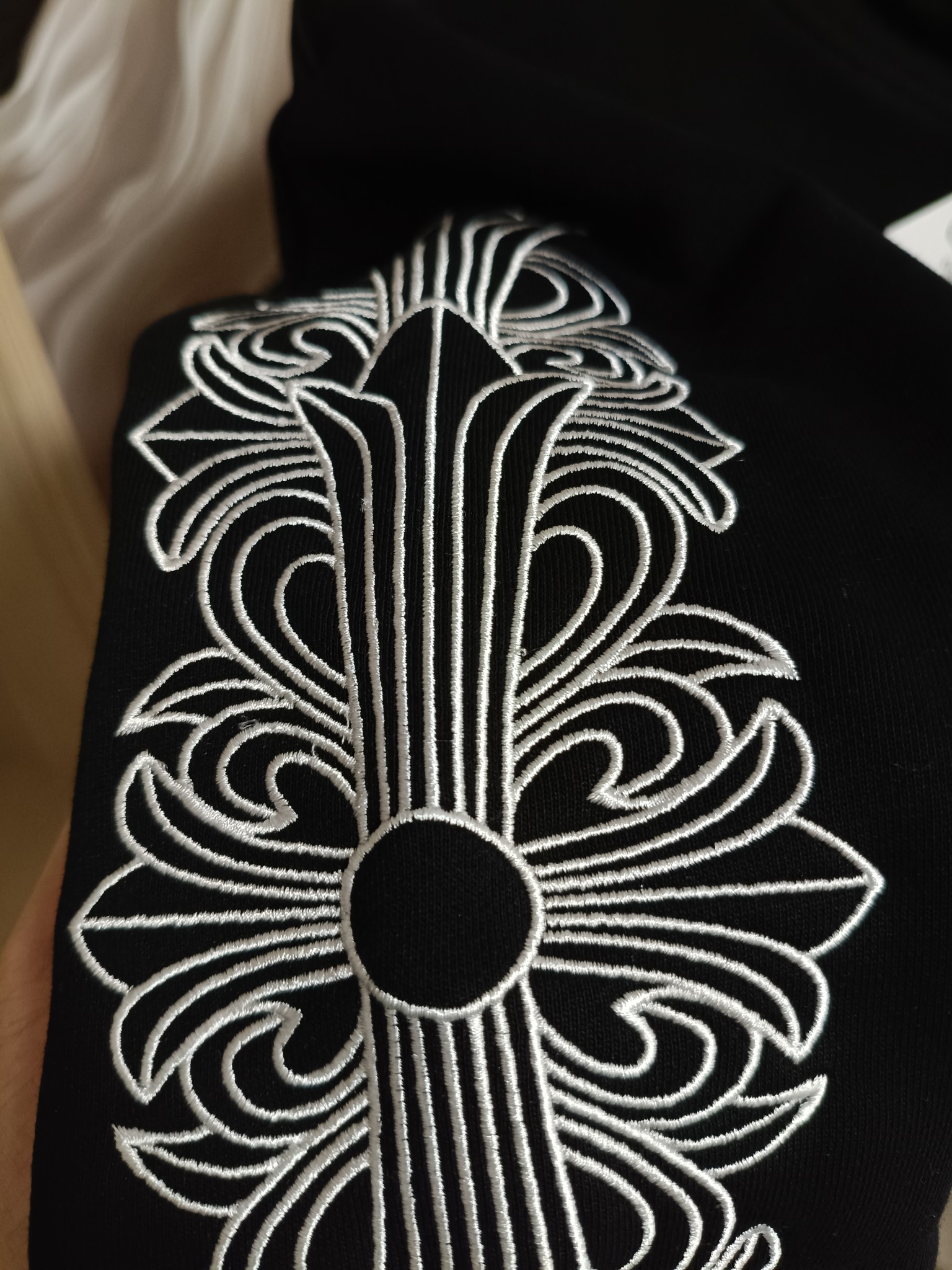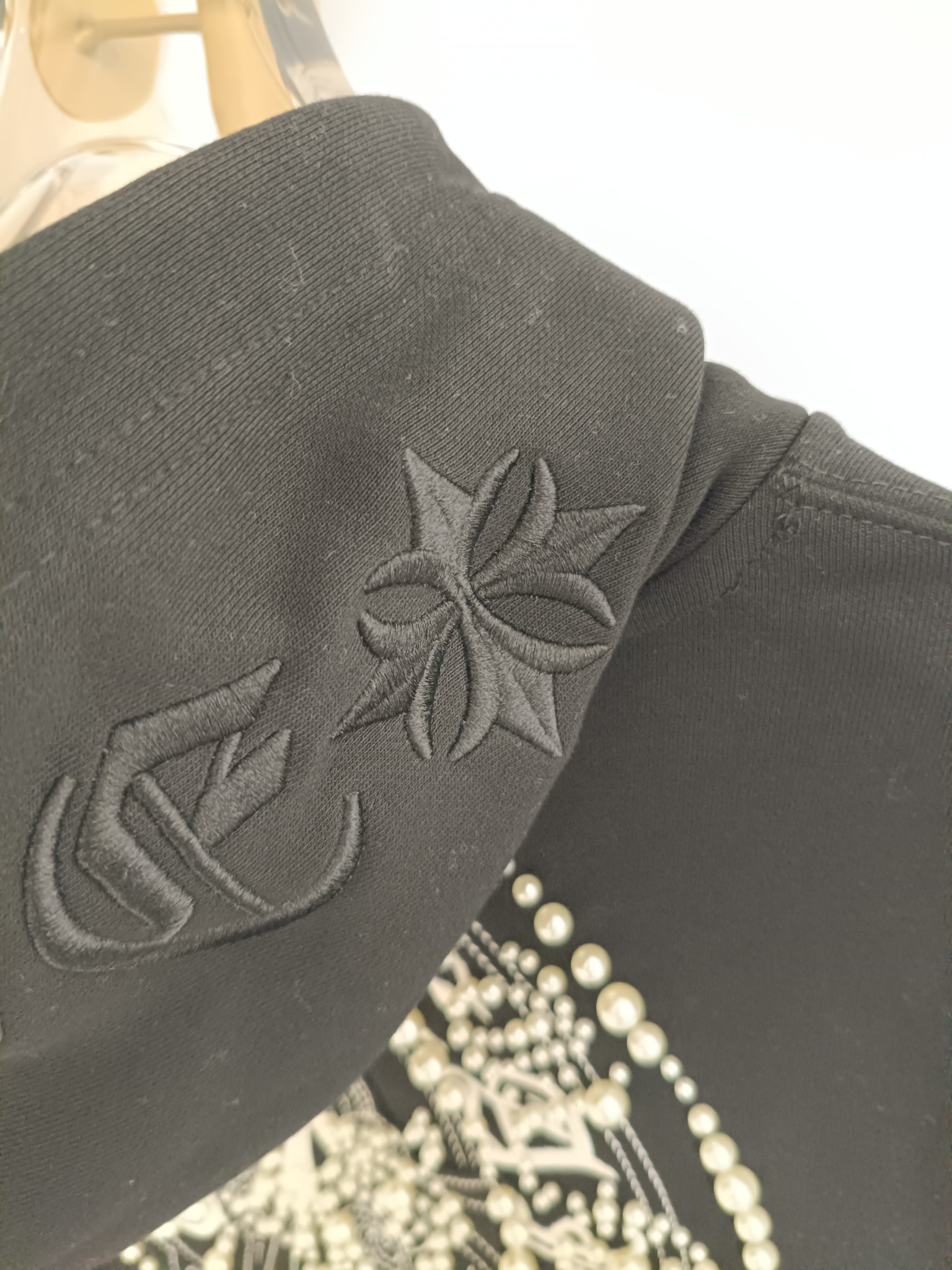 這款衣服是AAAAA 1:1 質量(非常棒). 使用了和原版一模一樣的材料. 商標部分也保持了和鉻心/Chrome Hearts一樣. 圖片拍攝是實物衣服拍攝, 您所收到的實物保證和我們圖片一模一樣.