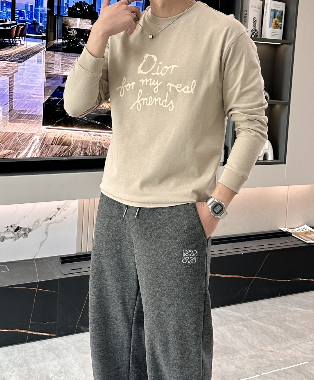 這款衣服是AAAAA 1:1 質量(非常棒). 使用了和原版一模一樣的材料. 商標部分也保持了和迪奧/Dior一樣. 圖片拍攝是實物衣服拍攝, 您所收到的實物保證和我們圖片一模一樣.