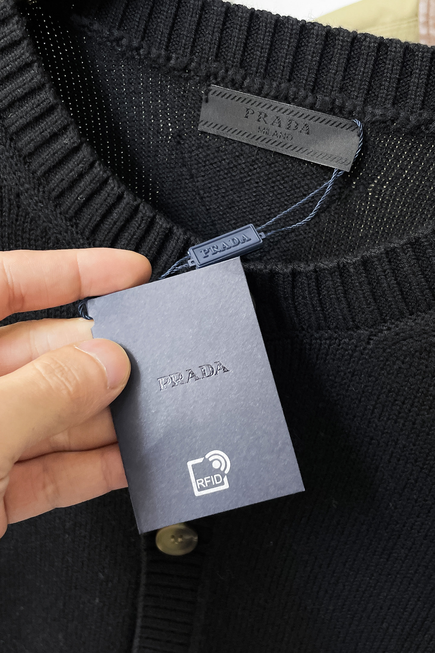 這款衣服是AAAAA 1:1 質量(非常棒). 使用了和原版一模一樣的材料. 商標部分也保持了和普拉達/Prada一樣. 圖片拍攝是實物衣服拍攝, 您所收到的實物保證和我們圖片一模一樣.