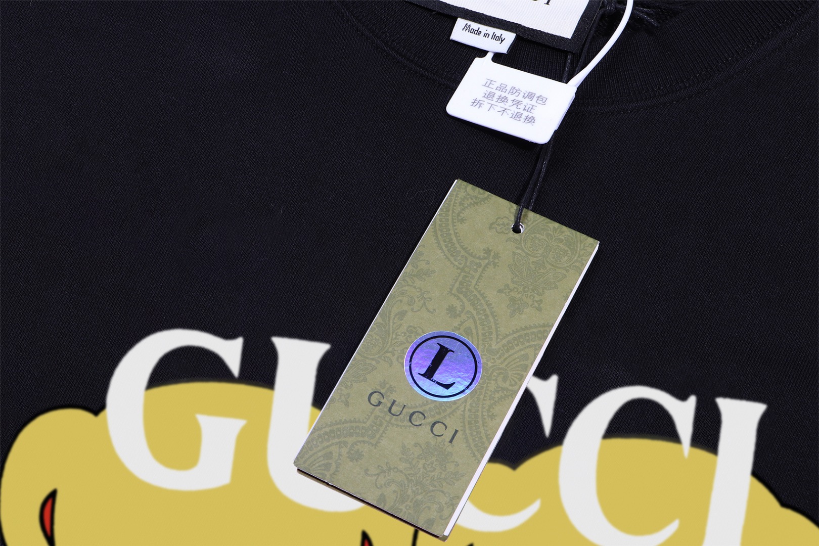 這款衣服是AAAAA 1:1 質量(非常棒). 使用了和原版一模一樣的材料. 商標部分也保持了和古奇/Gucci一樣. 圖片拍攝是實物衣服拍攝, 您所收到的實物保證和我們圖片一模一樣.