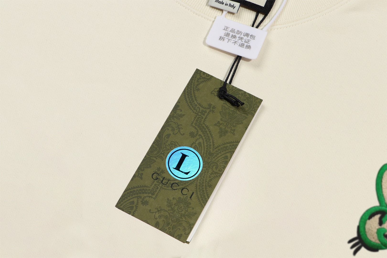 這款衣服是AAAAA 1:1 質量(非常棒). 使用了和原版一模一樣的材料. 商標部分也保持了和古奇/Gucci一樣. 圖片拍攝是實物衣服拍攝, 您所收到的實物保證和我們圖片一模一樣.