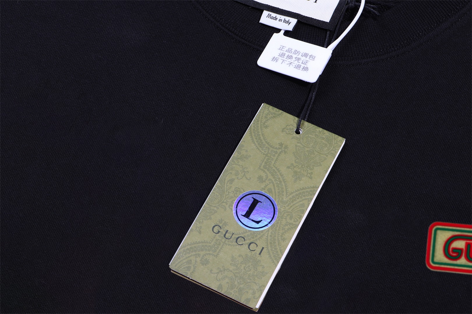 這款衣服是AAAAA 1:1 質量(非常棒). 使用了和原版一模一樣的材料. 商標部分也保持了和古奇/Gucci一樣. 圖片拍攝是實物衣服拍攝, 您所收到的實物保證和我們圖片一模一樣.