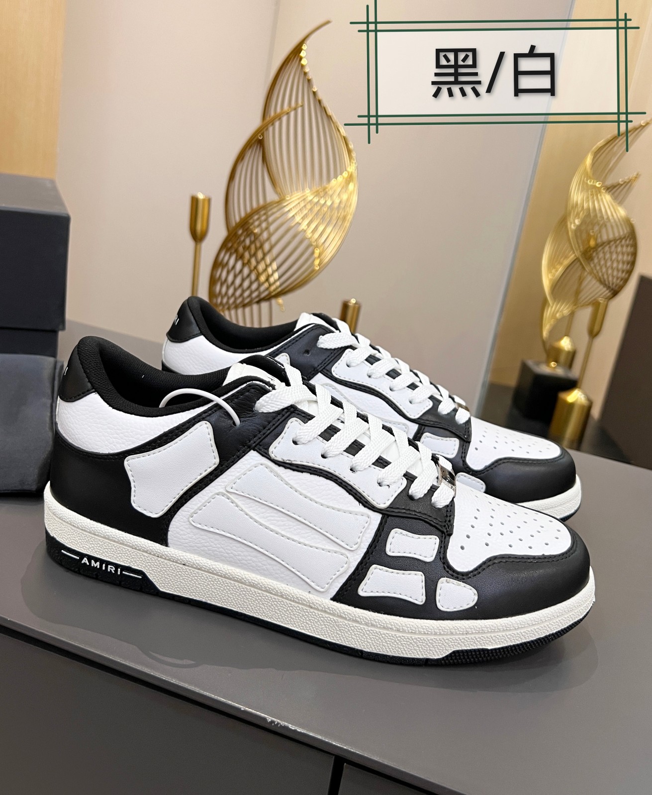 這款鞋子是AAAAA 1:1 質量(非常棒). 使用了和原版一模一樣的材料. 商標部分也保持了和AMIRI一樣. 圖片拍攝是實物鞋子拍攝, 您所收到的實物保證和我們圖片一模一樣.