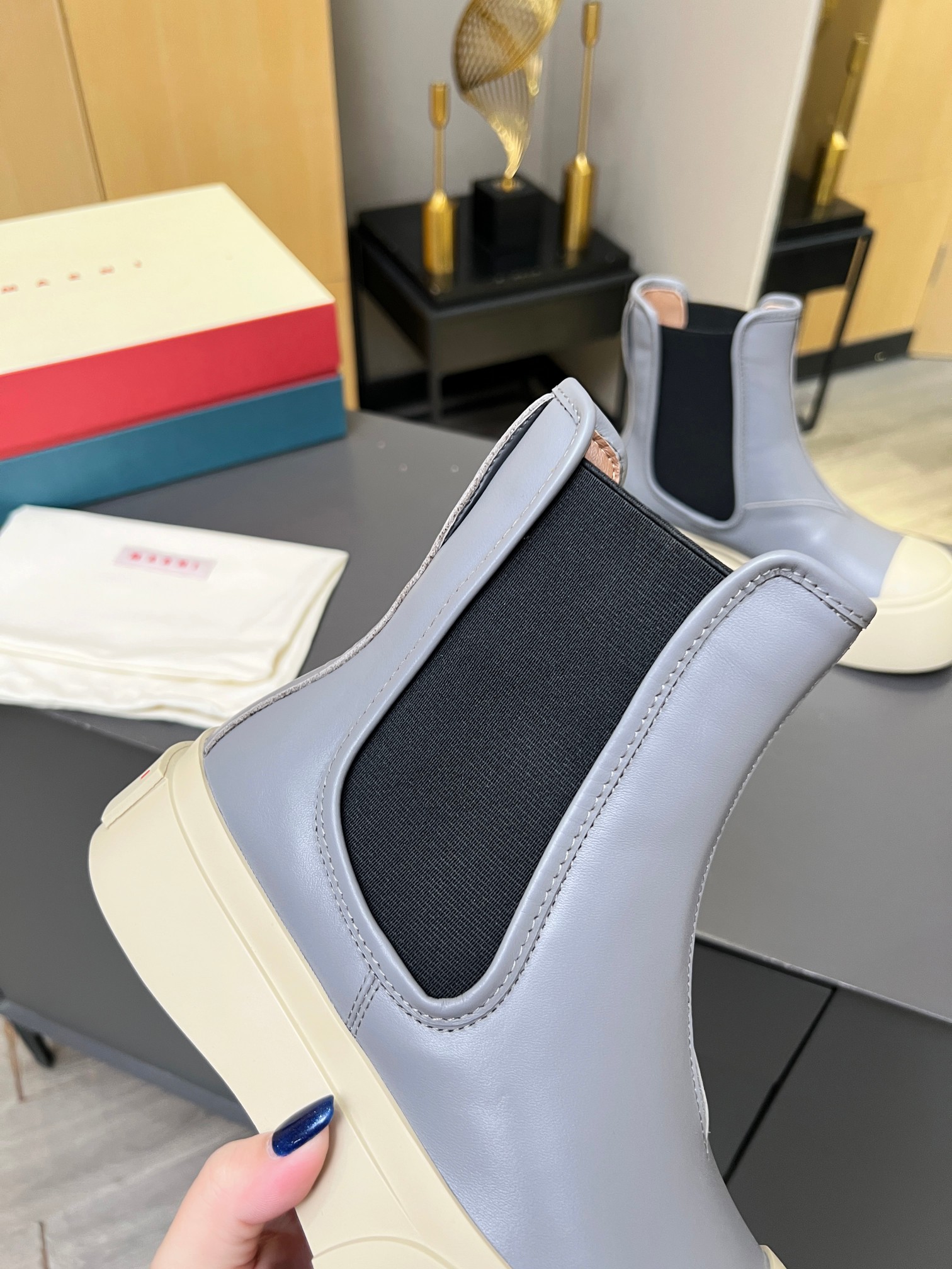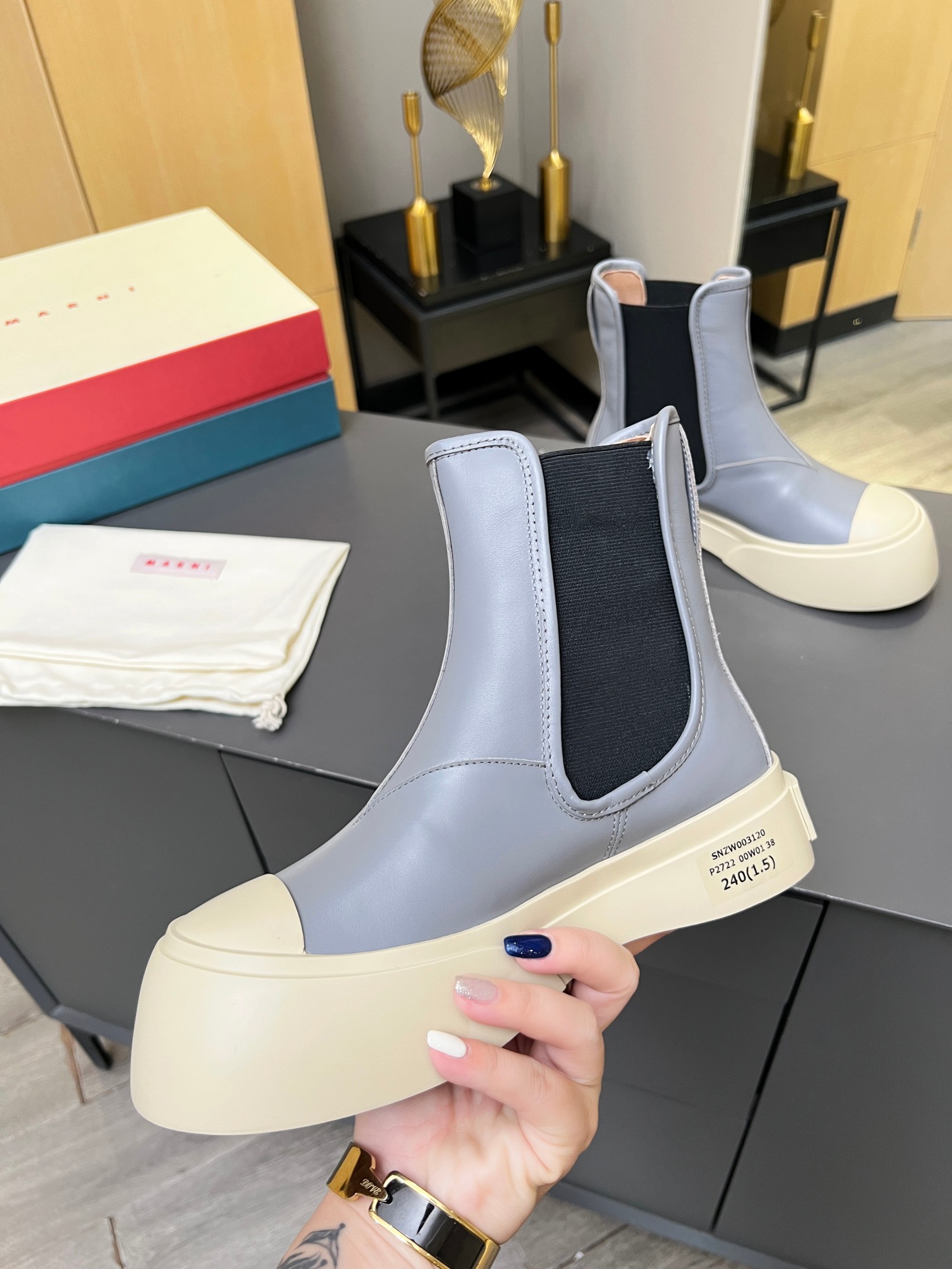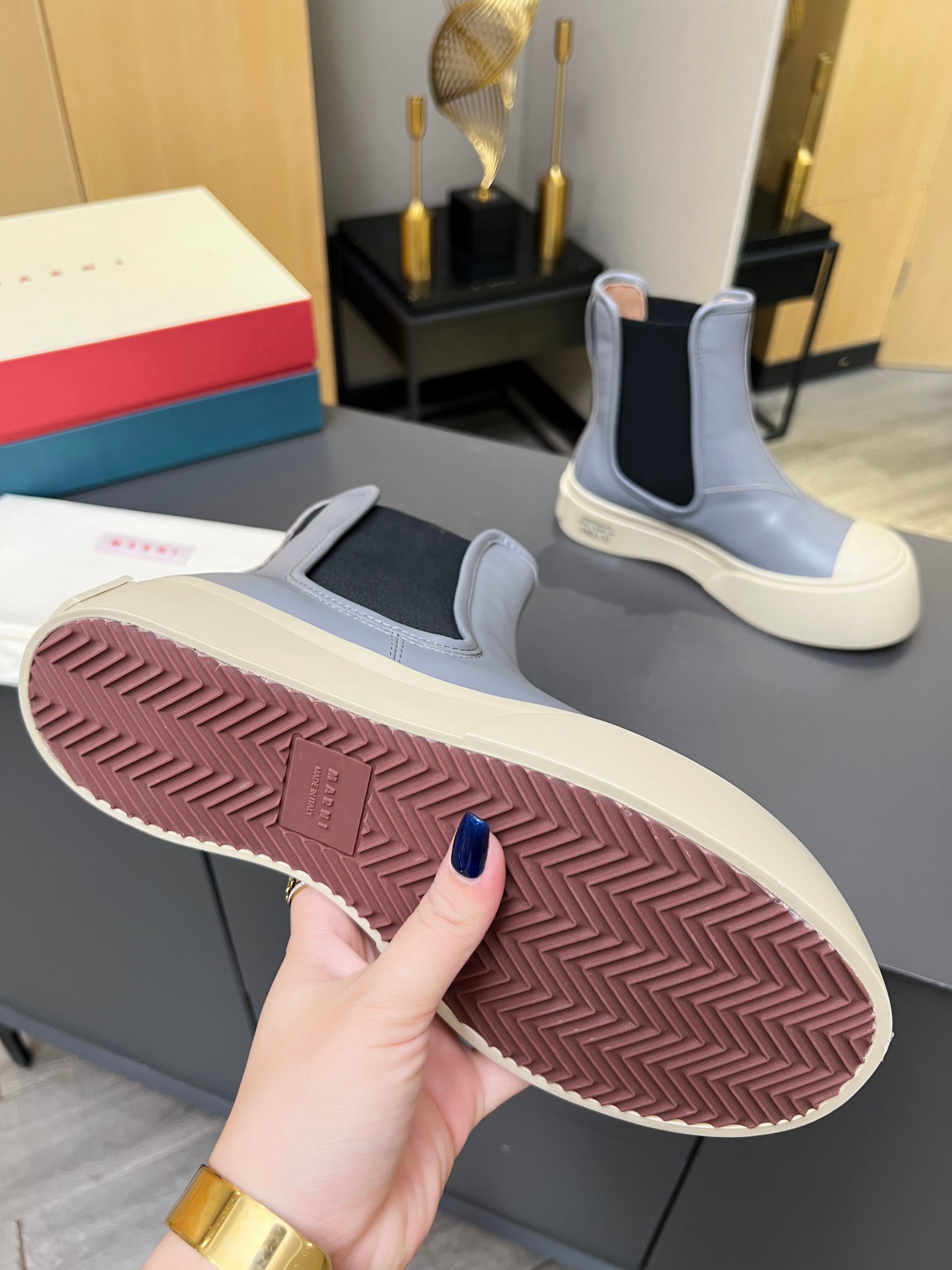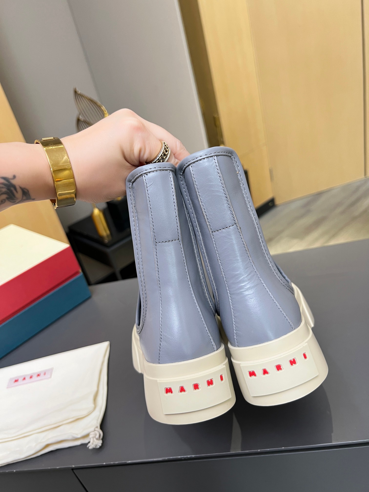 這款鞋子是AAAAA 1:1 質量(非常棒). 使用了和原版一模一樣的材料. 商標部分也保持了和馬爾尼/Marni一樣. 圖片拍攝是實物鞋子拍攝, 您所收到的實物保證和我們圖片一模一樣.