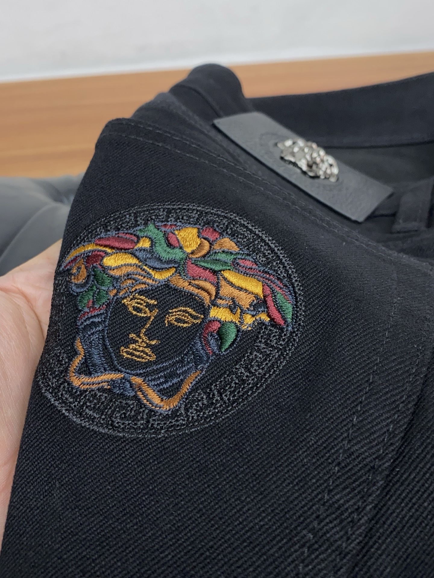 這款衣服是AAAAA 1:1 質量(非常棒). 使用了和原版一模一樣的材料. 商標部分也保持了和范思哲/Versace一樣. 圖片拍攝是實物衣服拍攝, 您所收到的實物保證和我們圖片一模一樣.