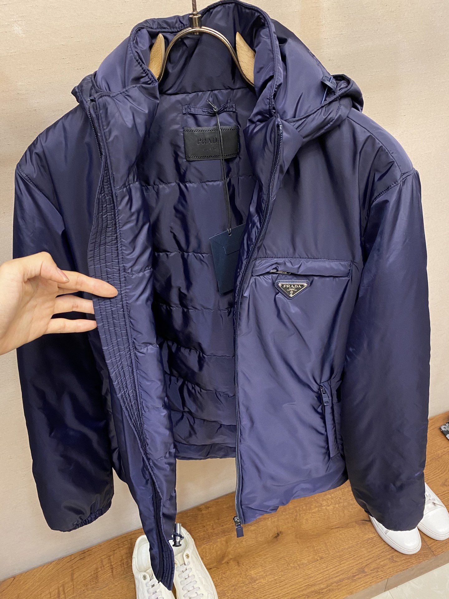 這款衣服是AAAAA 1:1 質量(非常棒). 使用了和原版一模一樣的材料. 商標部分也保持了和普拉達/Prada一樣. 圖片拍攝是實物衣服拍攝, 您所收到的實物保證和我們圖片一模一樣.