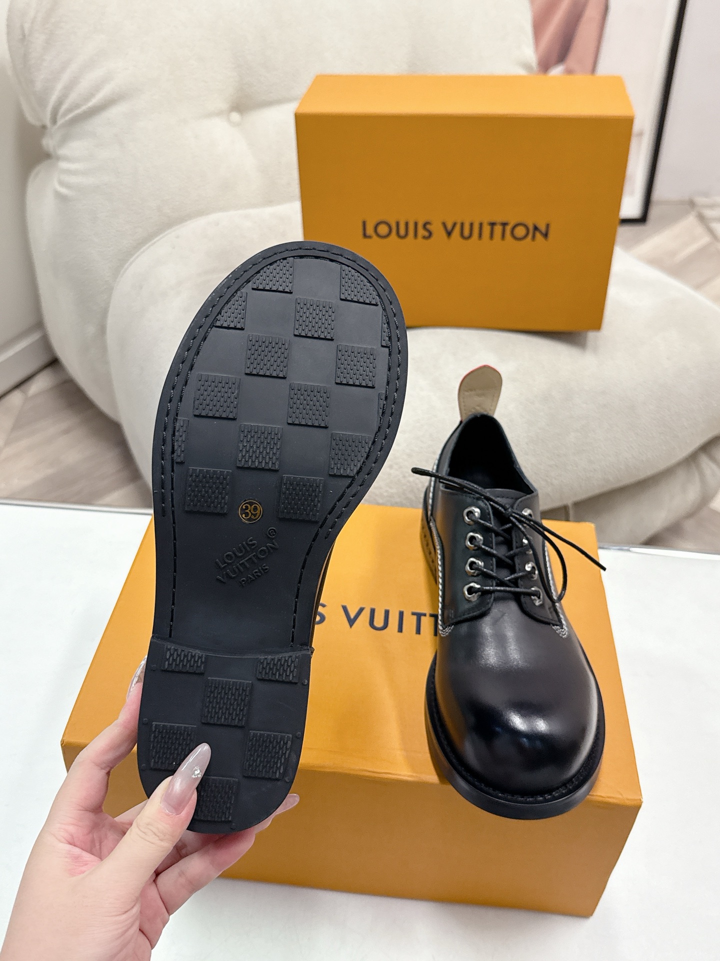 這款鞋子是AAAAA 1:1 質量(非常棒). 使用了和原版一模一樣的材料. 商標部分也保持了和路易威登/Louis Vuitton一樣. 圖片拍攝是實物鞋子拍攝, 您所收到的實物保證和我們圖片一模一樣.