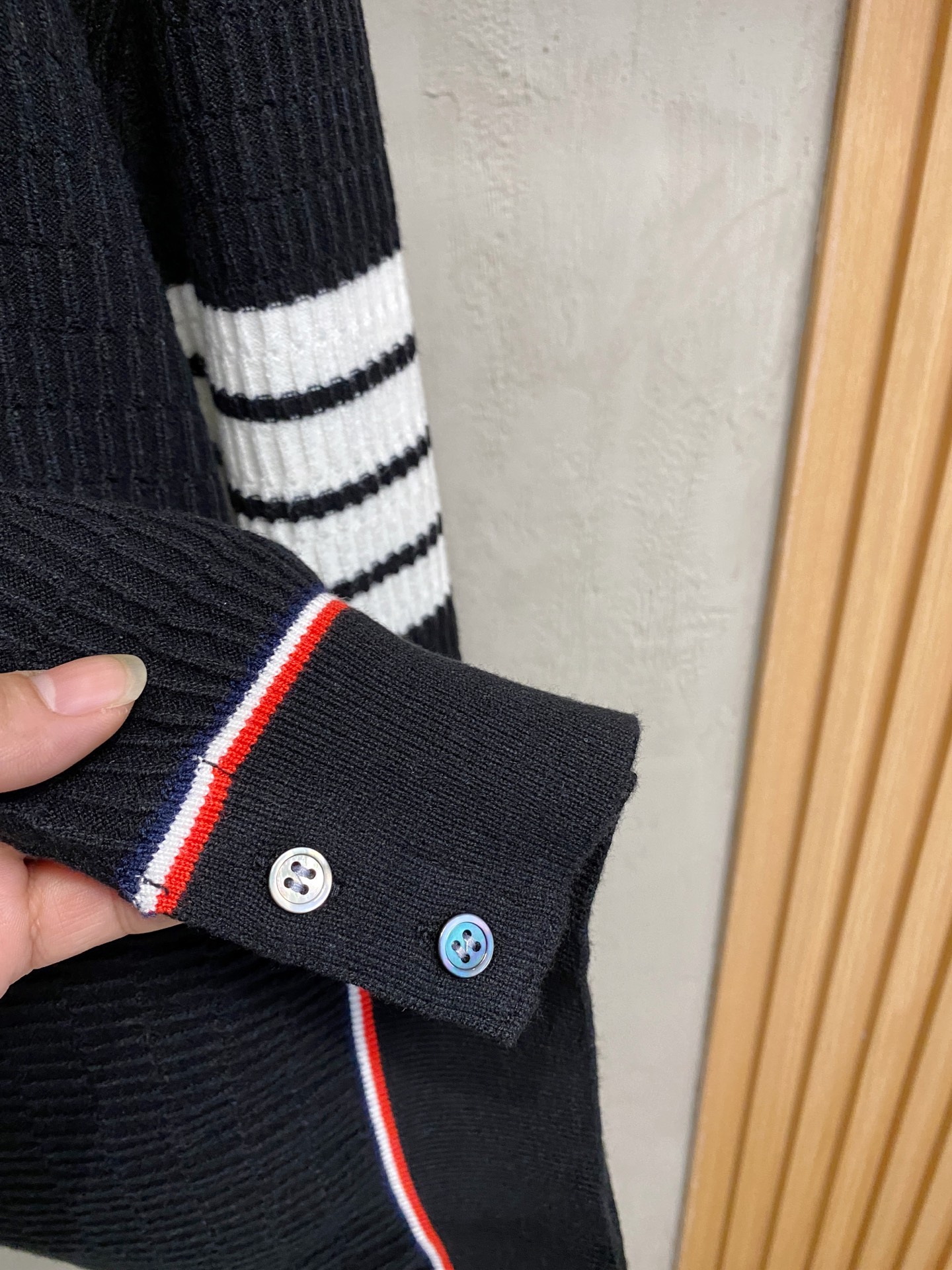 這款衣服是AAAAA 1:1 質量(非常棒). 使用了和原版一模一樣的材料. 商標部分也保持了和湯姆布朗/Thom Browne一樣. 圖片拍攝是實物衣服拍攝, 您所收到的實物保證和我們圖片一模一樣.