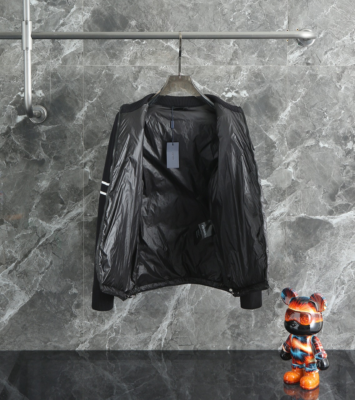 這款衣服是AAAAA 1:1 質量(非常棒). 使用了和原版一模一樣的材料. 商標部分也保持了和普拉達/Prada一樣. 圖片拍攝是實物衣服拍攝, 您所收到的實物保證和我們圖片一模一樣.