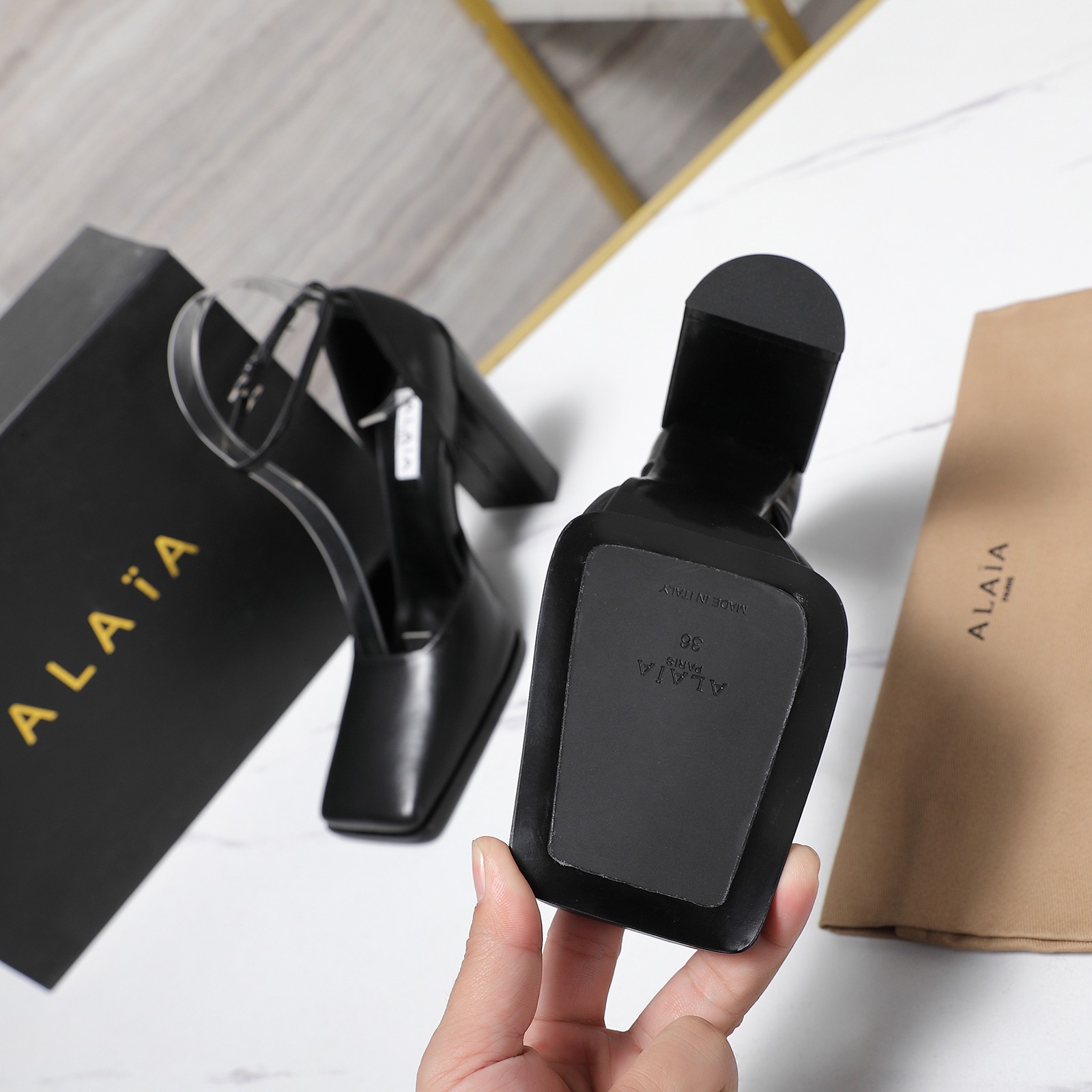 這款鞋子是AAAAA 1:1 質量(非常棒). 使用了和原版一模一樣的材料. 商標部分也保持了和Alaia一樣. 圖片拍攝是實物鞋子拍攝, 您所收到的實物保證和我們圖片一模一樣.