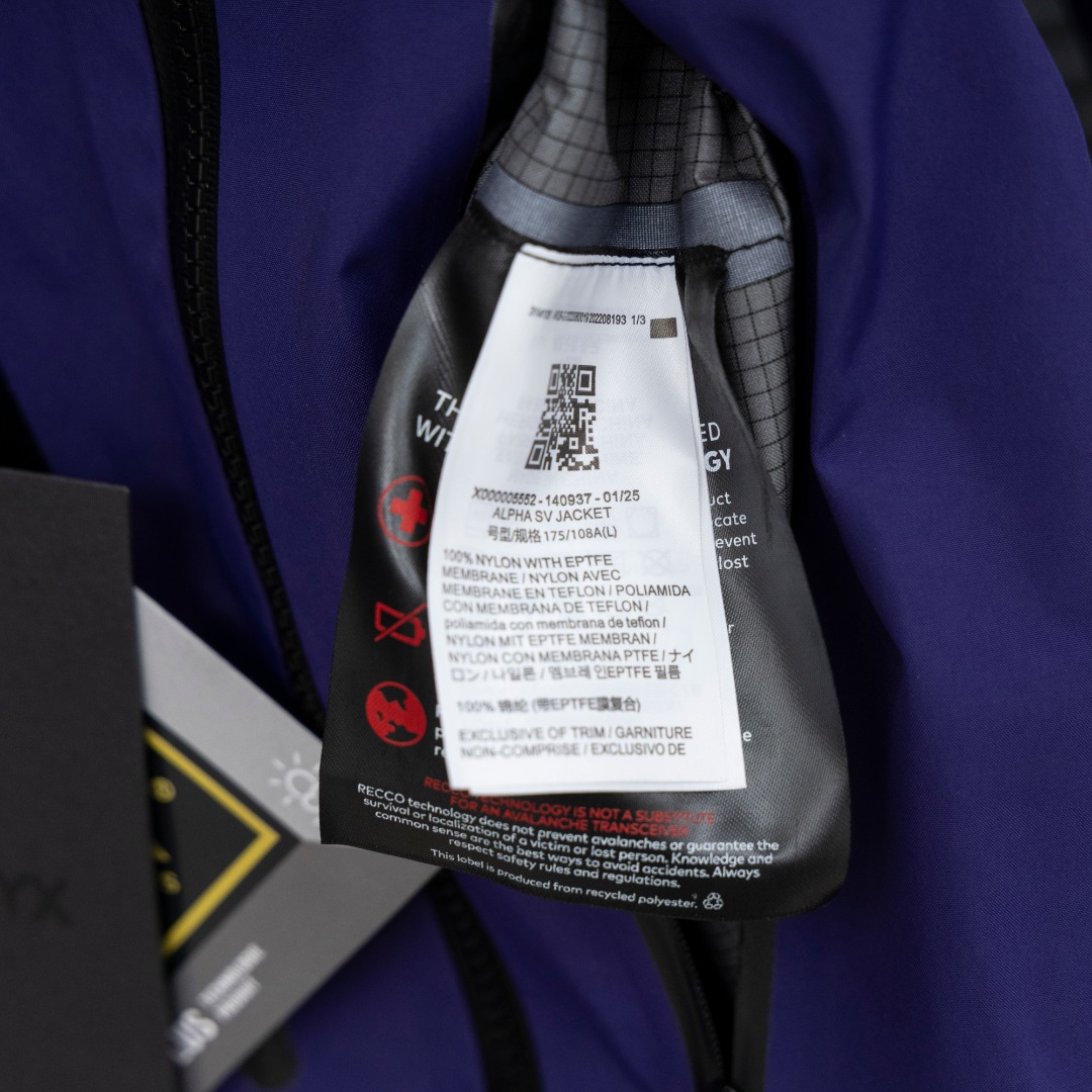 這款衣服是AAAAA 1:1 質量(非常棒). 使用了和原版一模一樣的材料. 商標部分也保持了和ARC'TERYX一樣. 圖片拍攝是實物衣服拍攝, 您所收到的實物保證和我們圖片一模一樣.