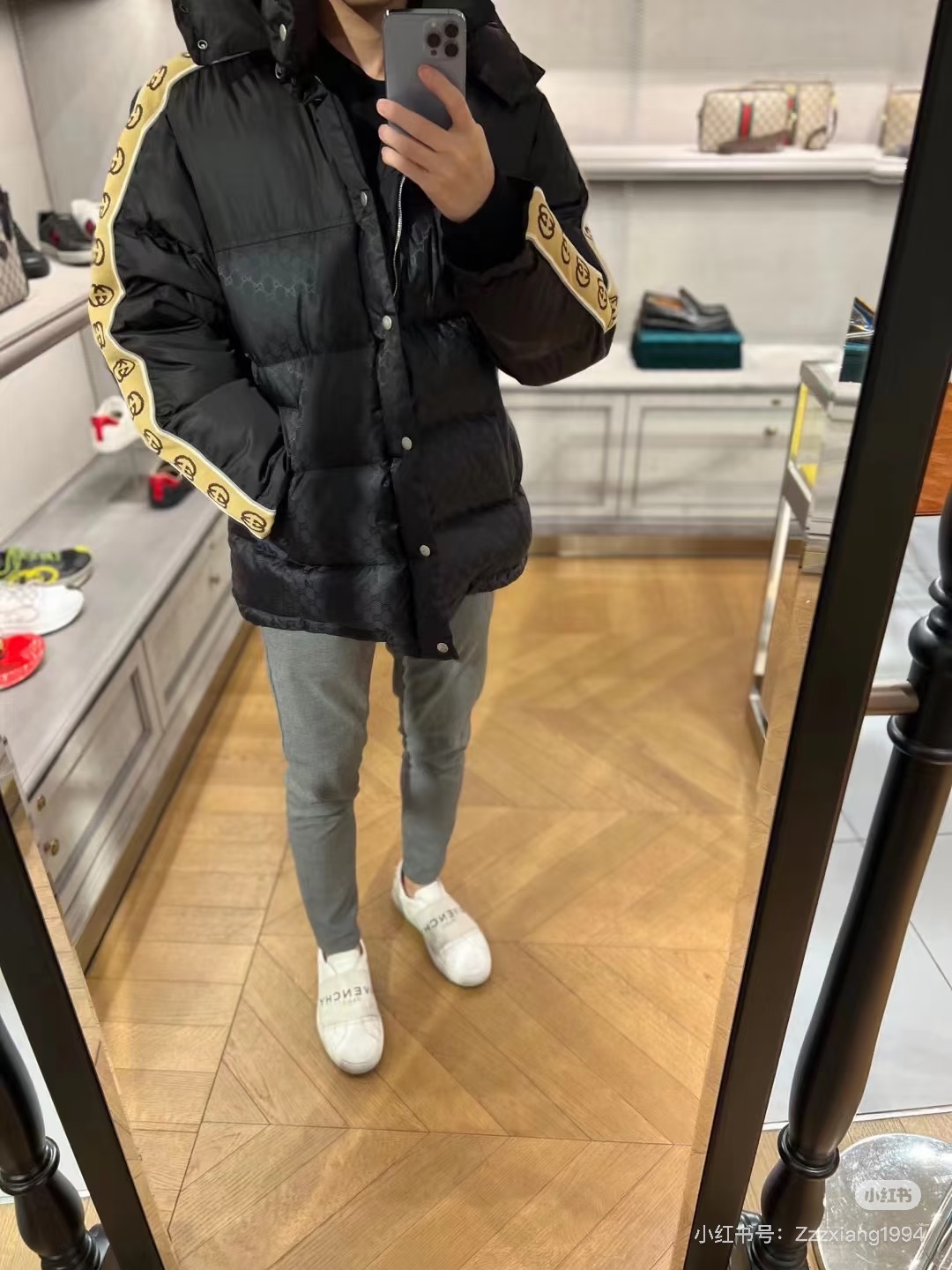 這款衣服是AAAAA 1:1 質量(非常棒). 使用了和原版一模一樣的材料. 商標部分也保持了和古奇/Gucci一樣. 圖片拍攝是實物衣服拍攝, 您所收到的實物保證和我們圖片一模一樣.
