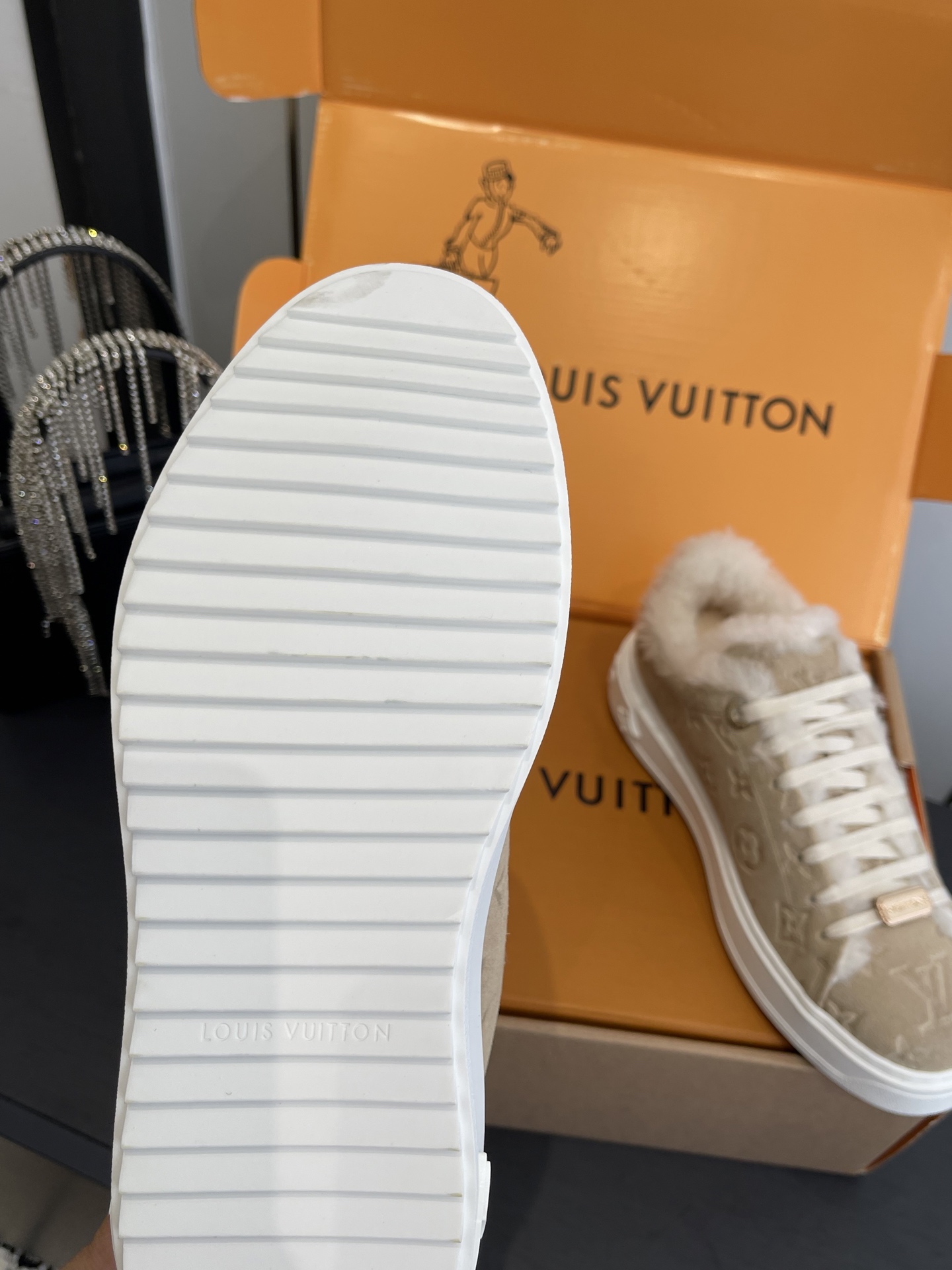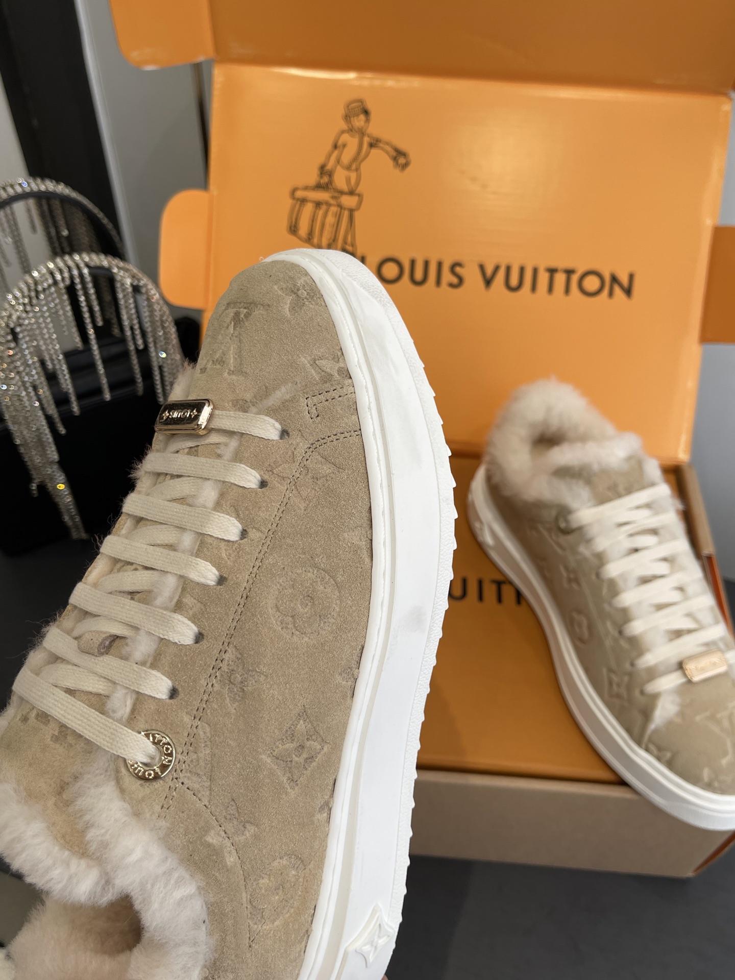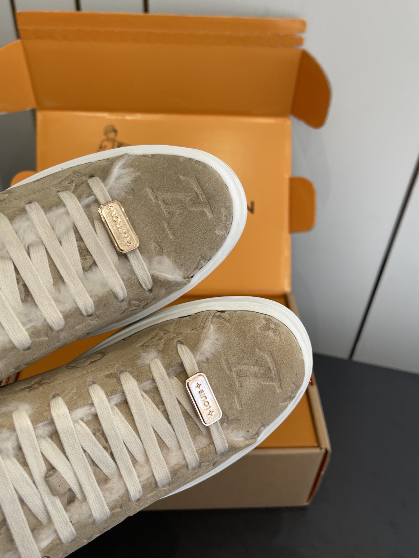 這款鞋子是AAAAA 1:1 質量(非常棒). 使用了和原版一模一樣的材料. 商標部分也保持了和路易威登/Louis Vuitton一樣. 圖片拍攝是實物鞋子拍攝, 您所收到的實物保證和我們圖片一模一樣.