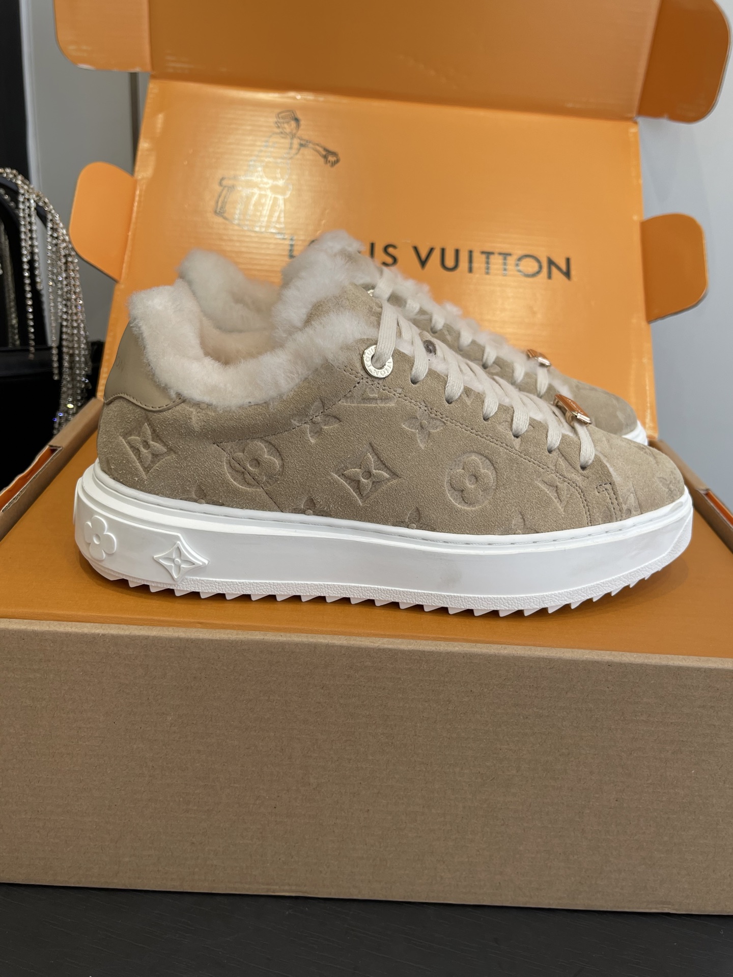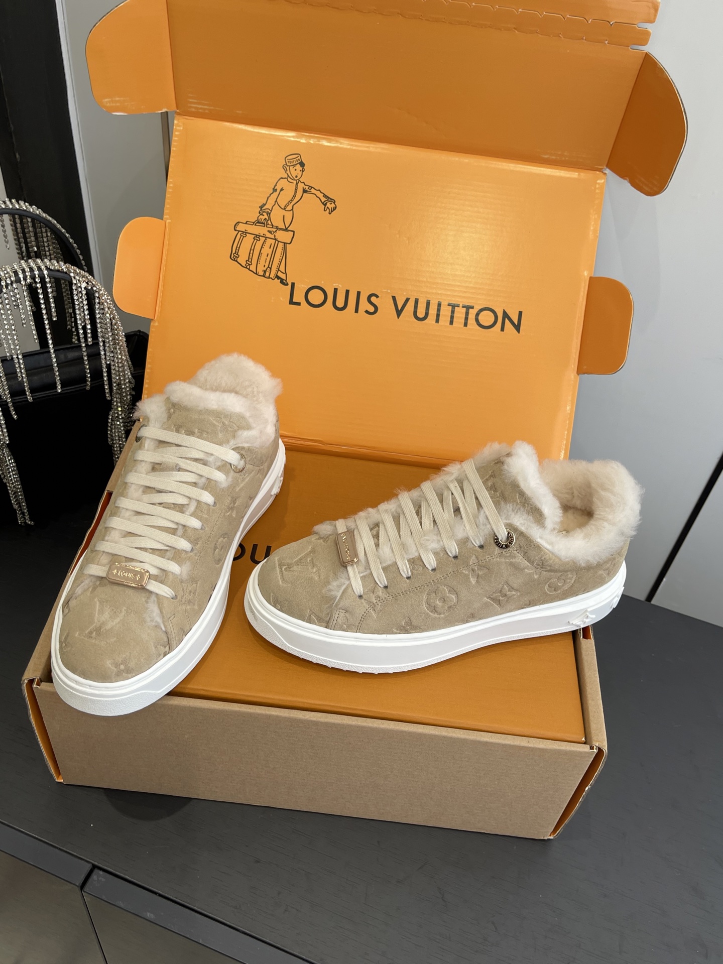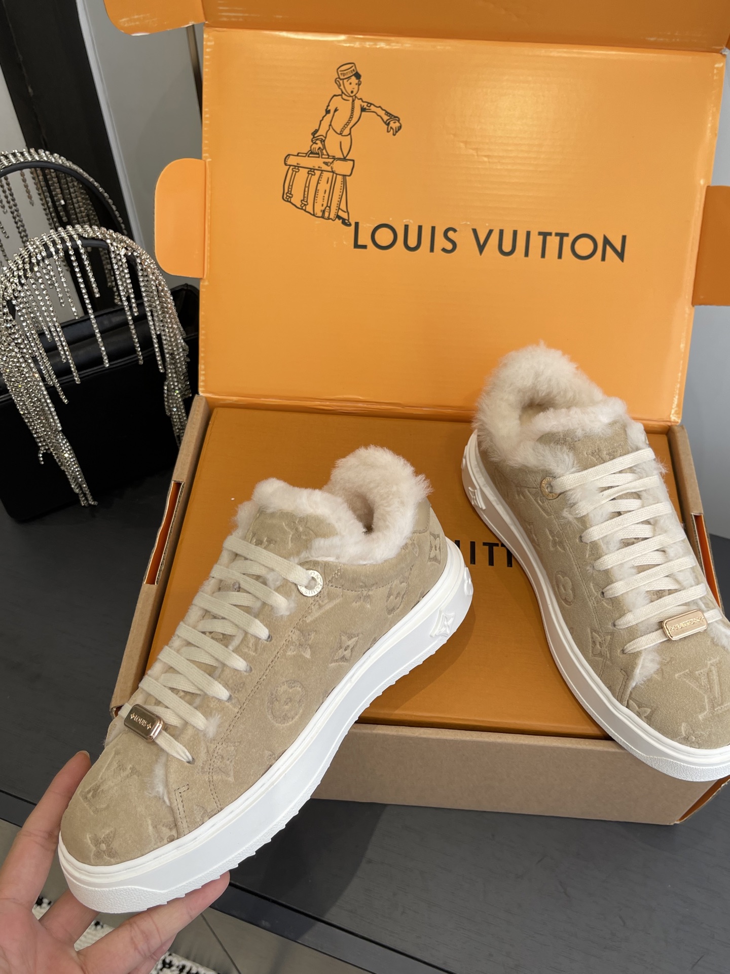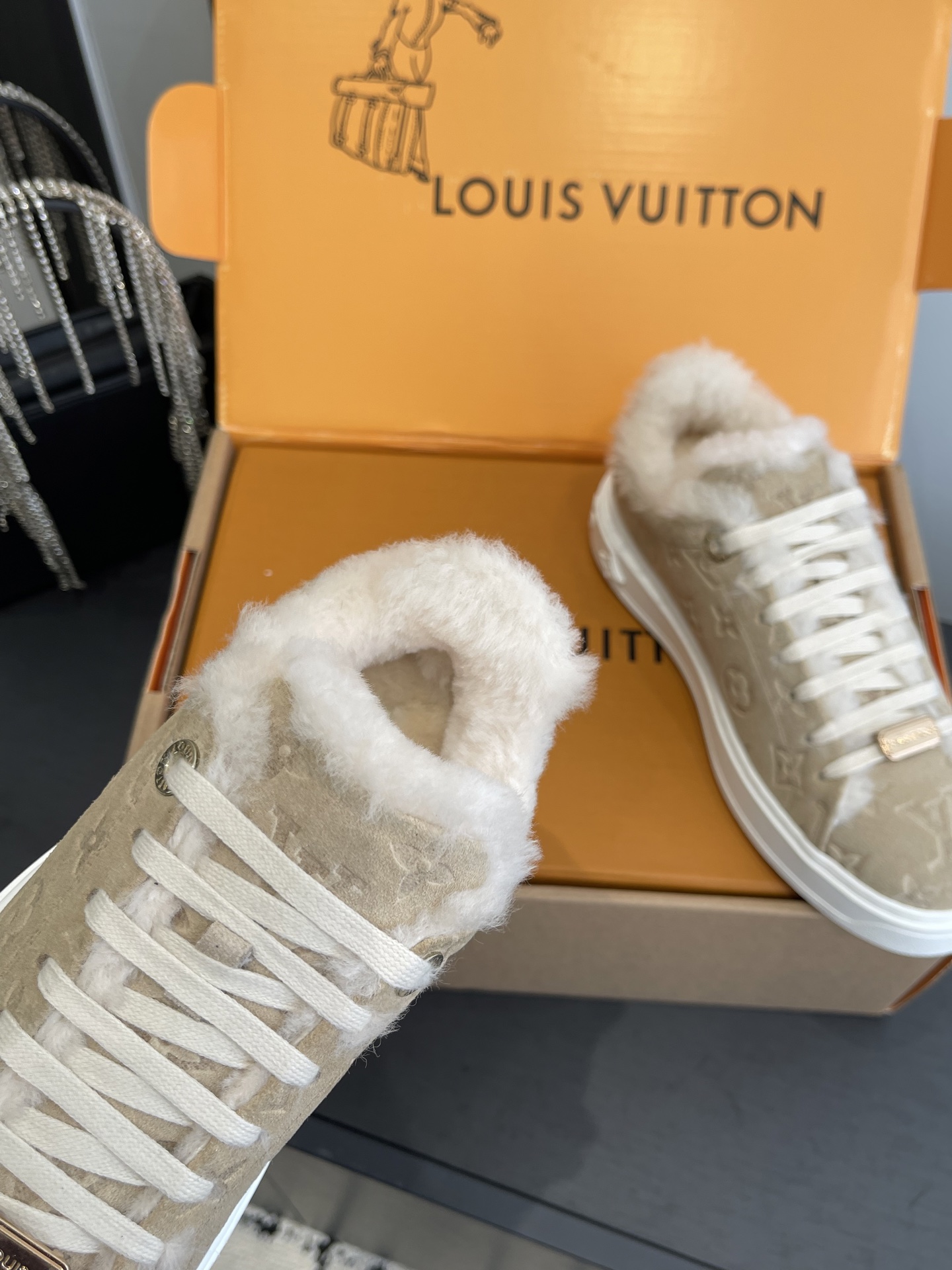 這款鞋子是AAAAA 1:1 質量(非常棒). 使用了和原版一模一樣的材料. 商標部分也保持了和路易威登/Louis Vuitton一樣. 圖片拍攝是實物鞋子拍攝, 您所收到的實物保證和我們圖片一模一樣.
