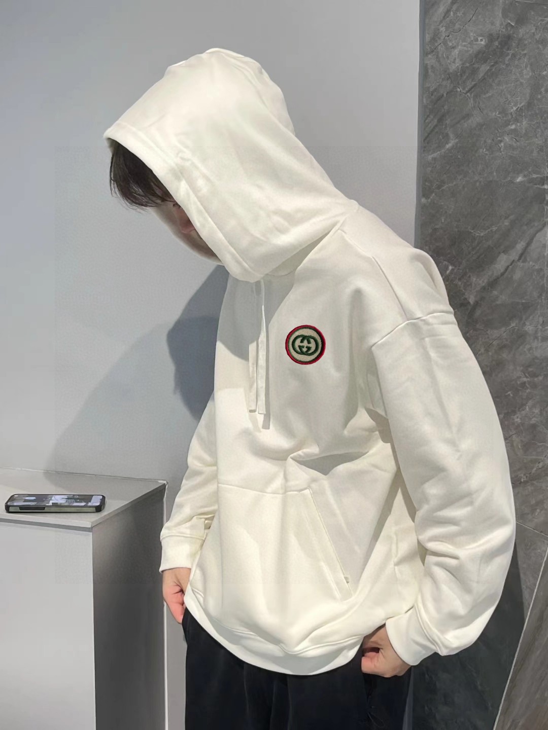 這款衣服是AAAAA 1:1 質量(非常棒). 使用了和原版一模一樣的材料. 商標部分也保持了和古奇/Gucci一樣. 圖片拍攝是實物衣服拍攝, 您所收到的實物保證和我們圖片一模一樣.